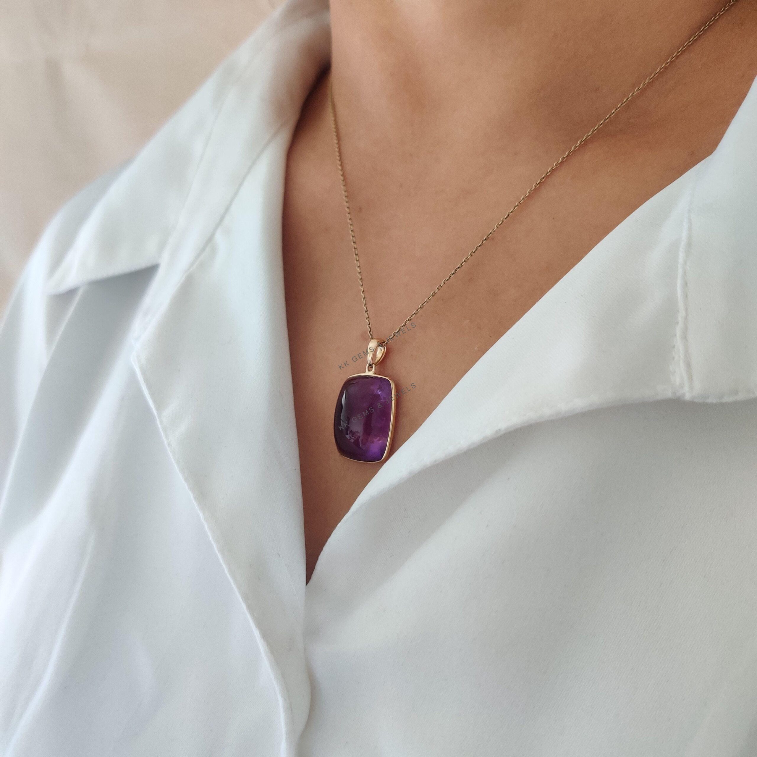 This stunning pendant is set in 14k Solid Yellow Gold with Natural Purple Amethyst with utmost precision. It is an unique gemstone pendant for nearly every occasion and is completely hassle-free jewelry.