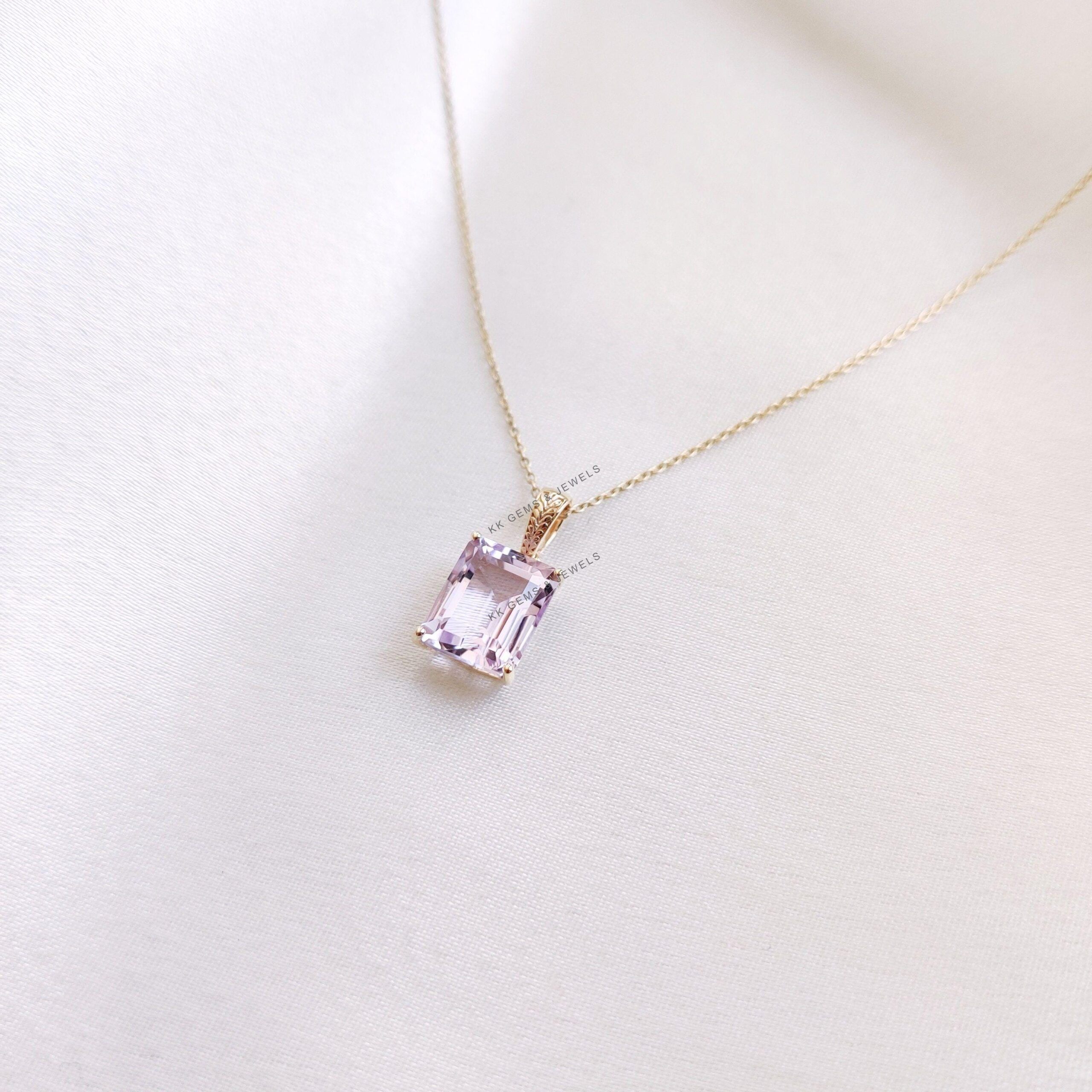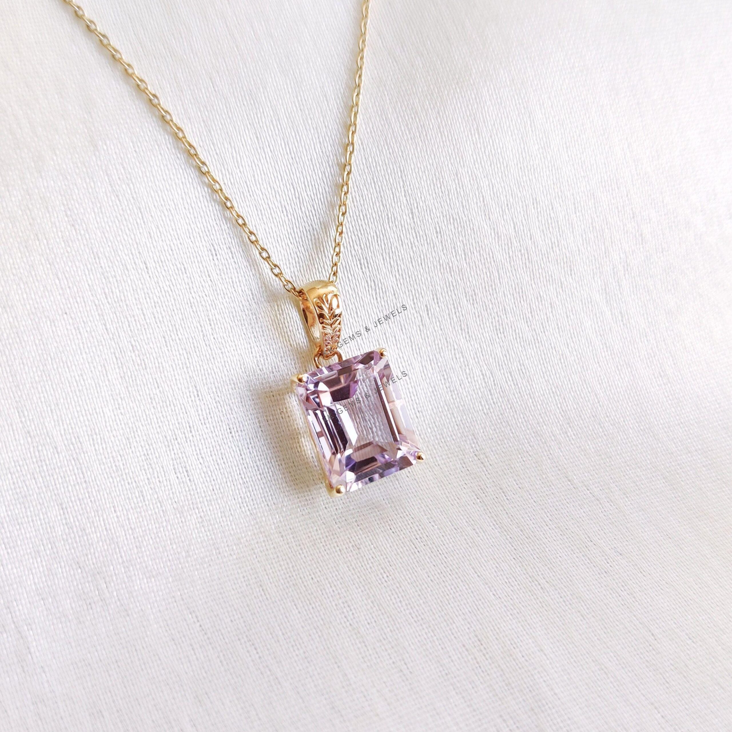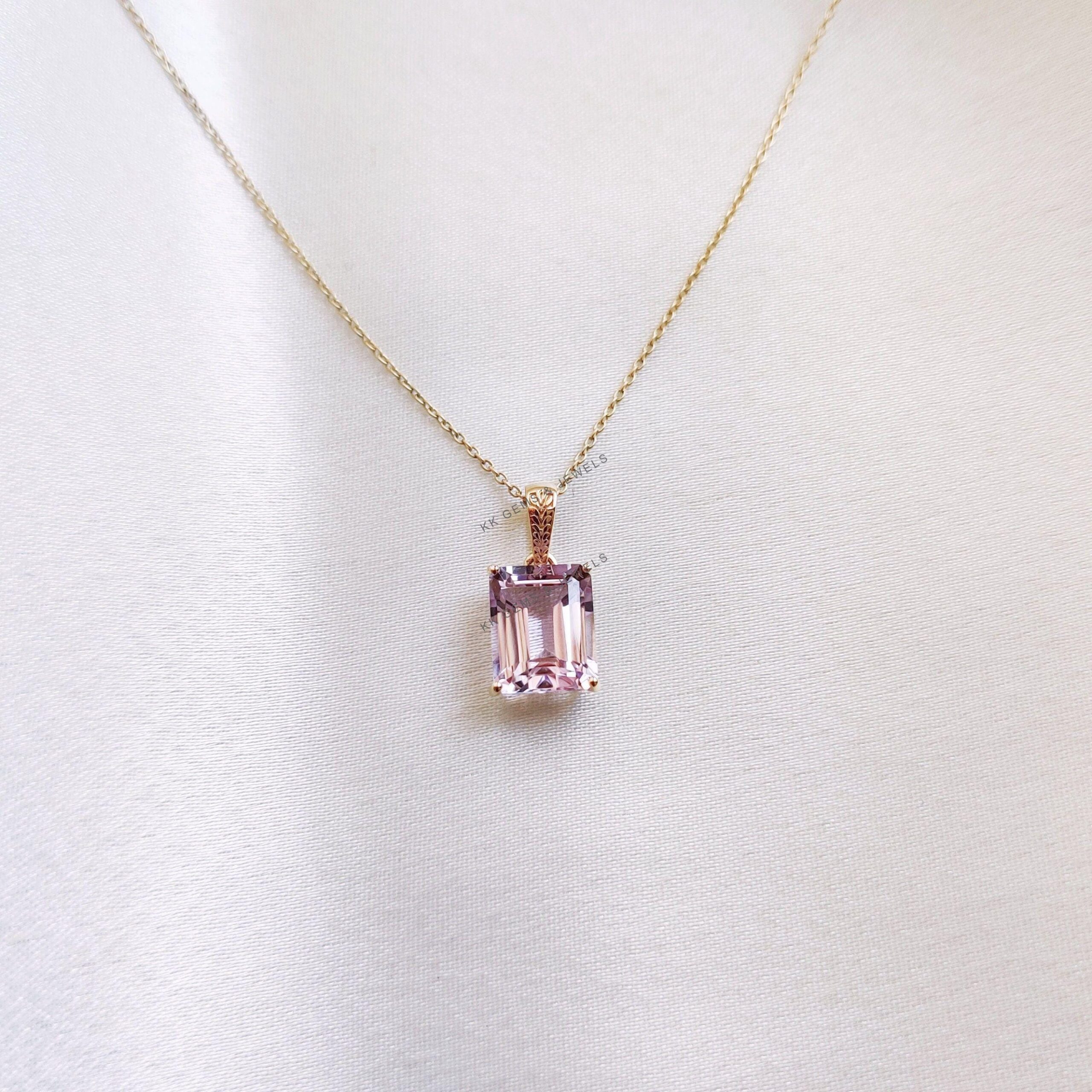 1 review for Emerald Cut Natural Pink Amethyst Birthstone Pendant Set in 14K Solid Gold