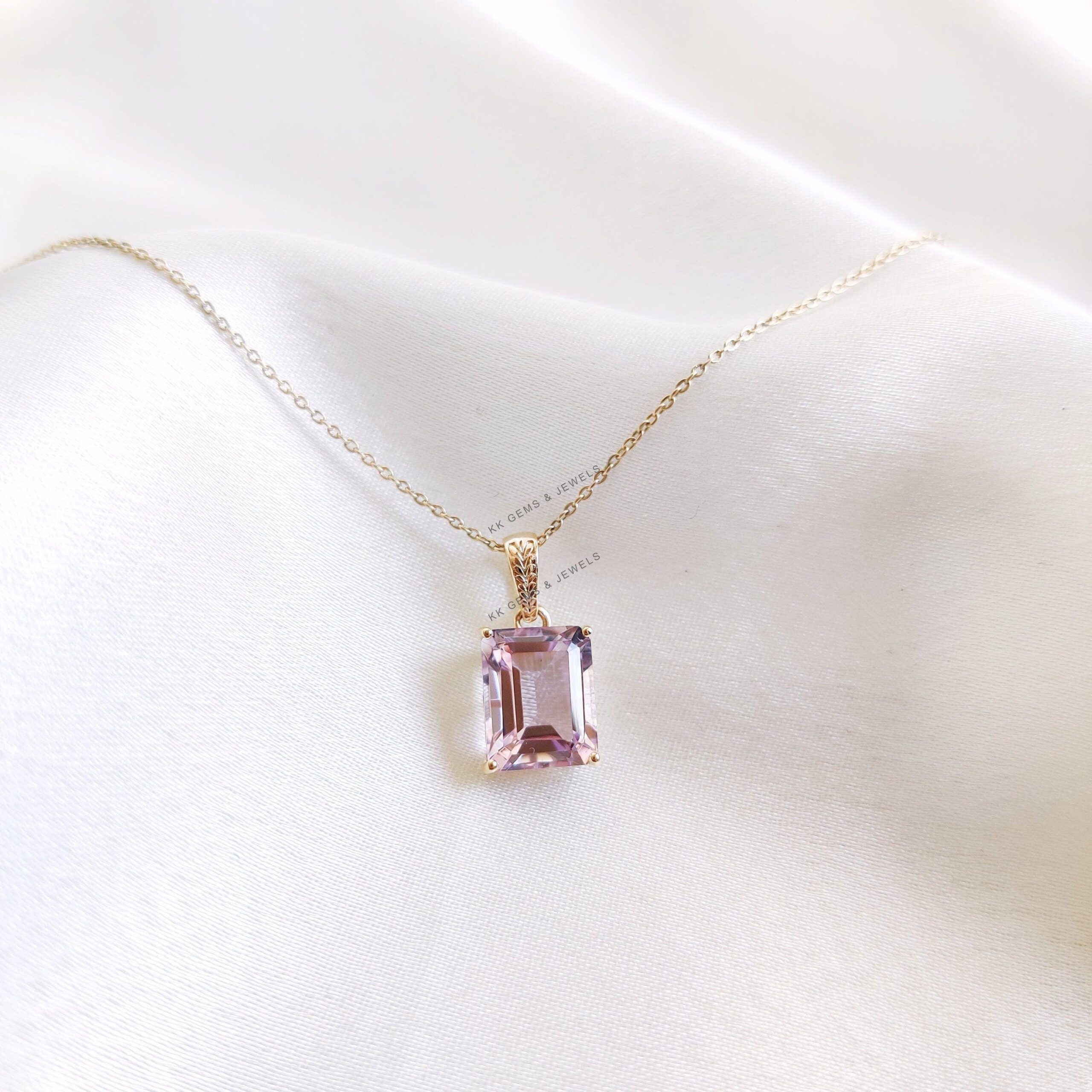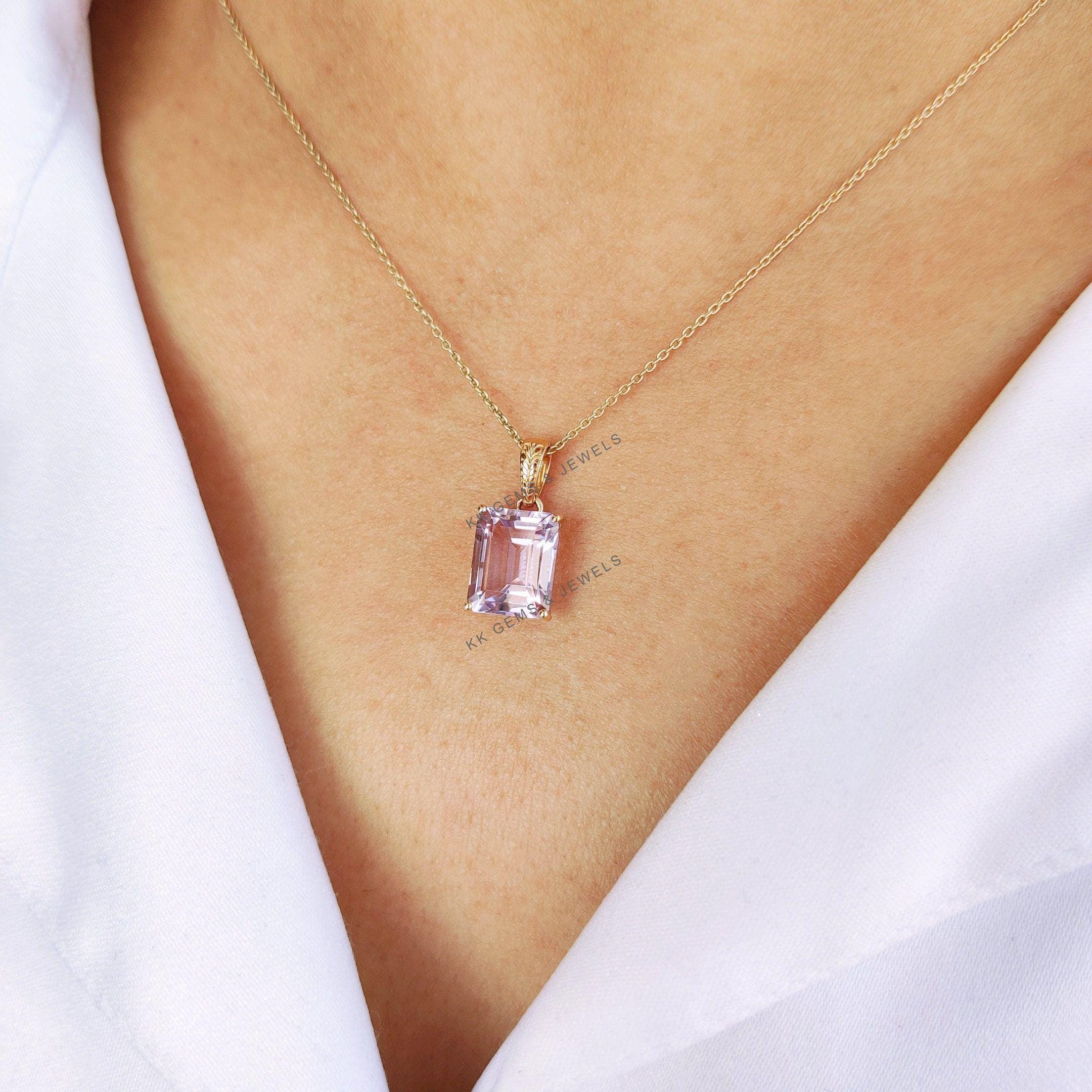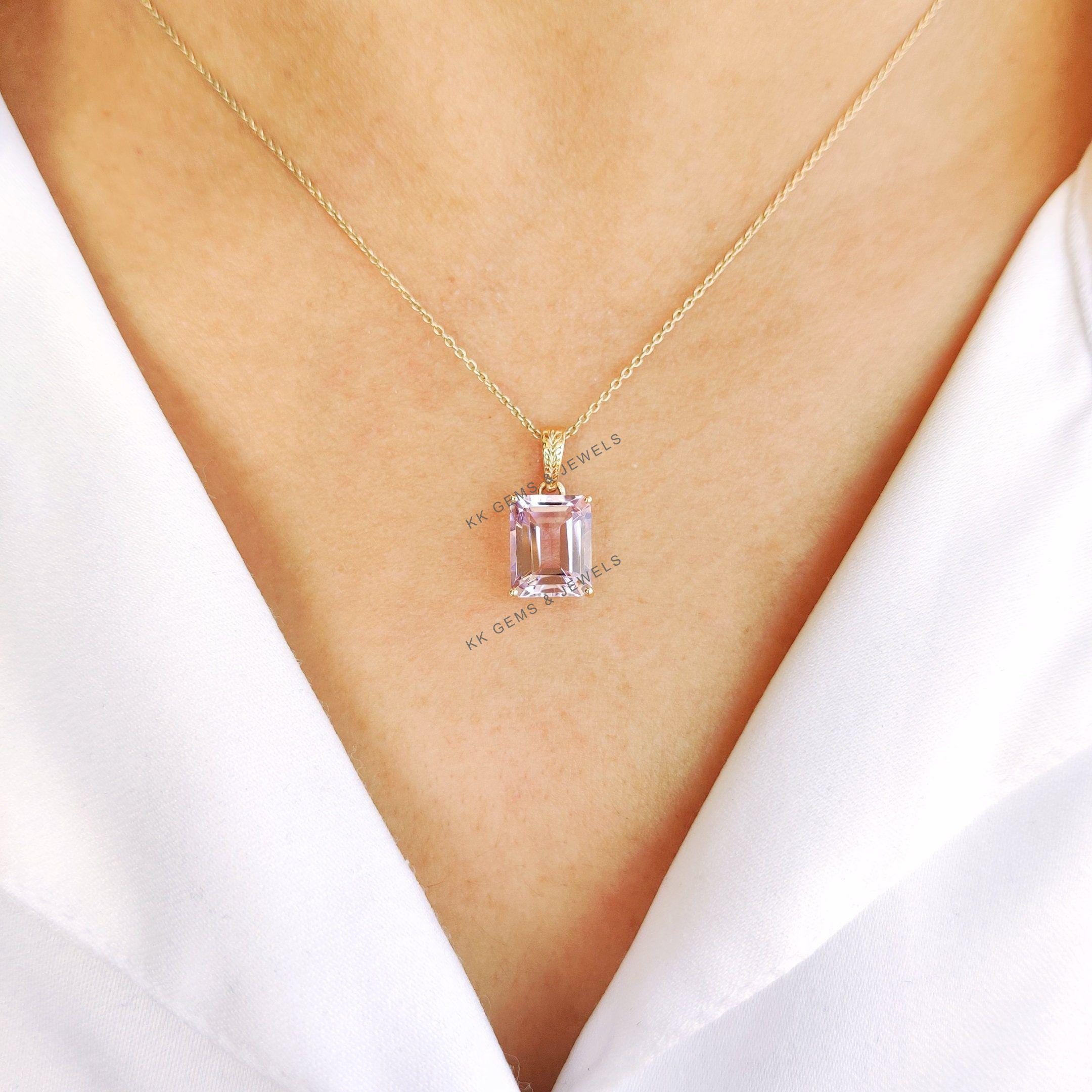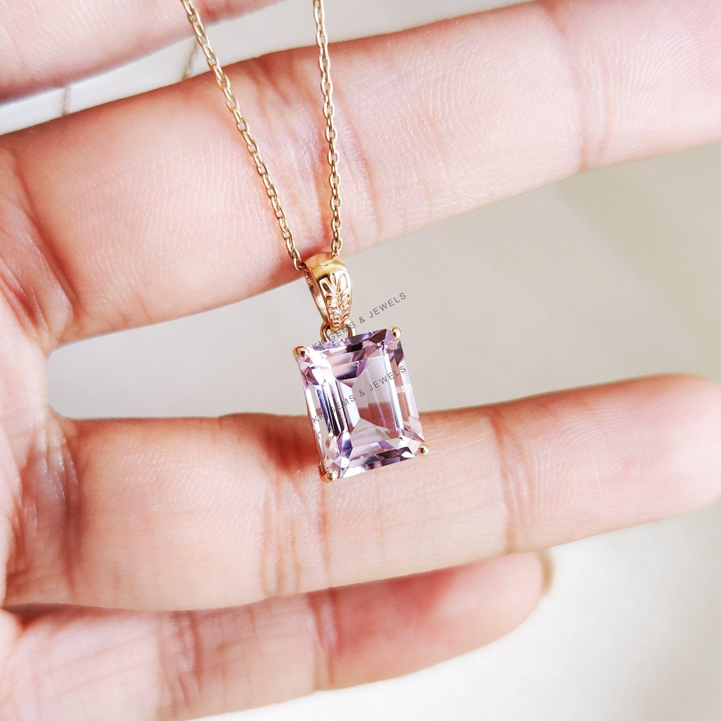 1 review for Emerald Cut Natural Pink Amethyst Birthstone Pendant Set in 14K Solid Gold