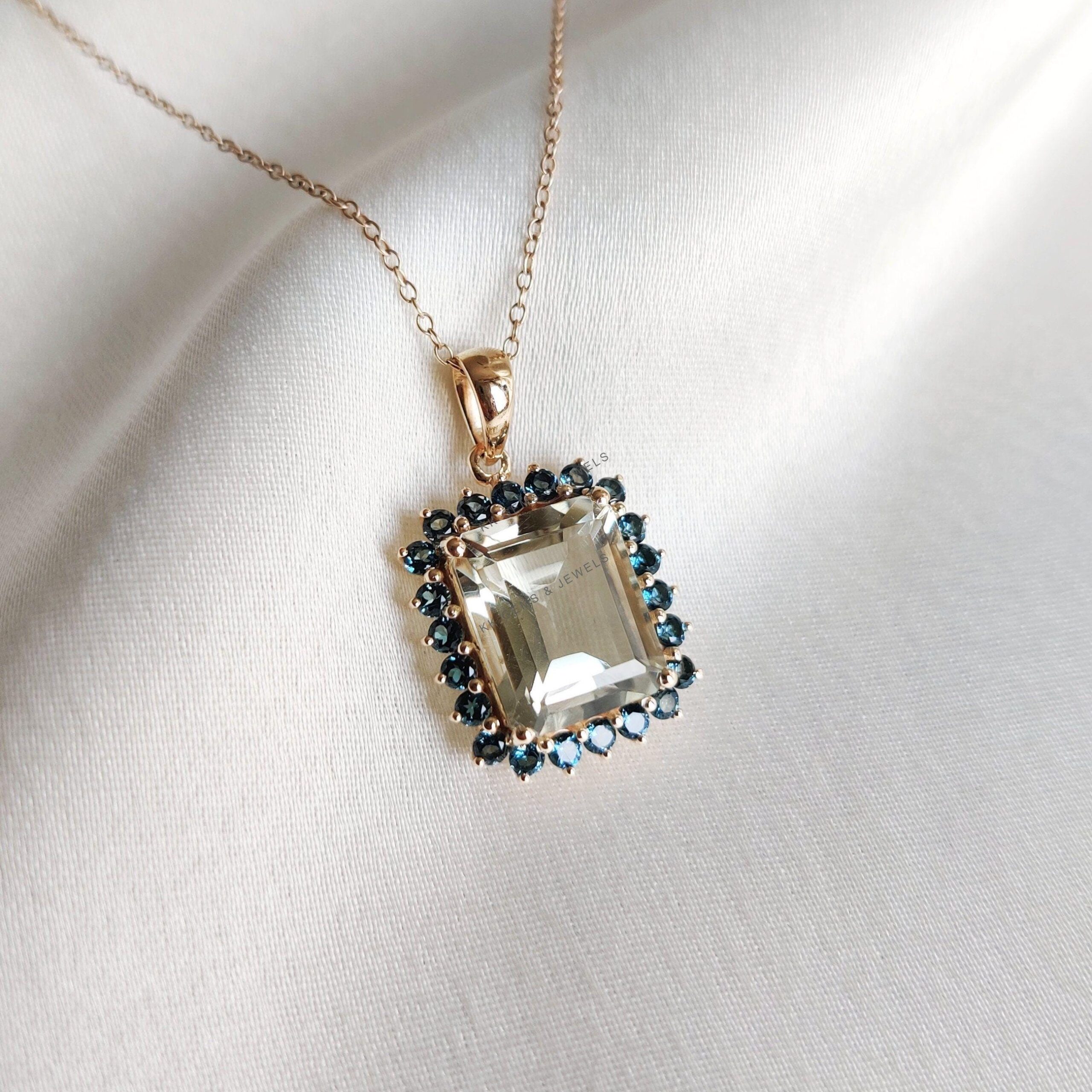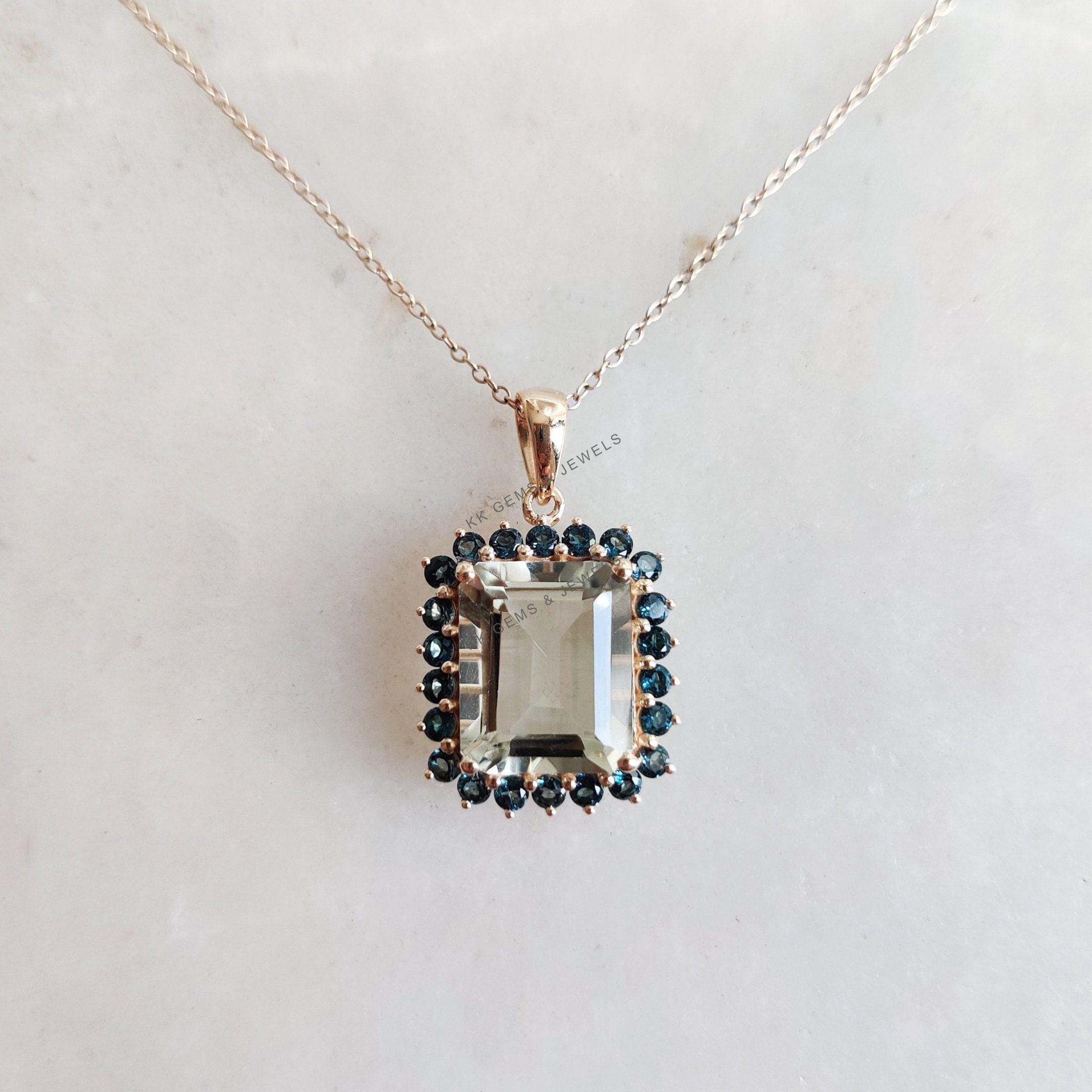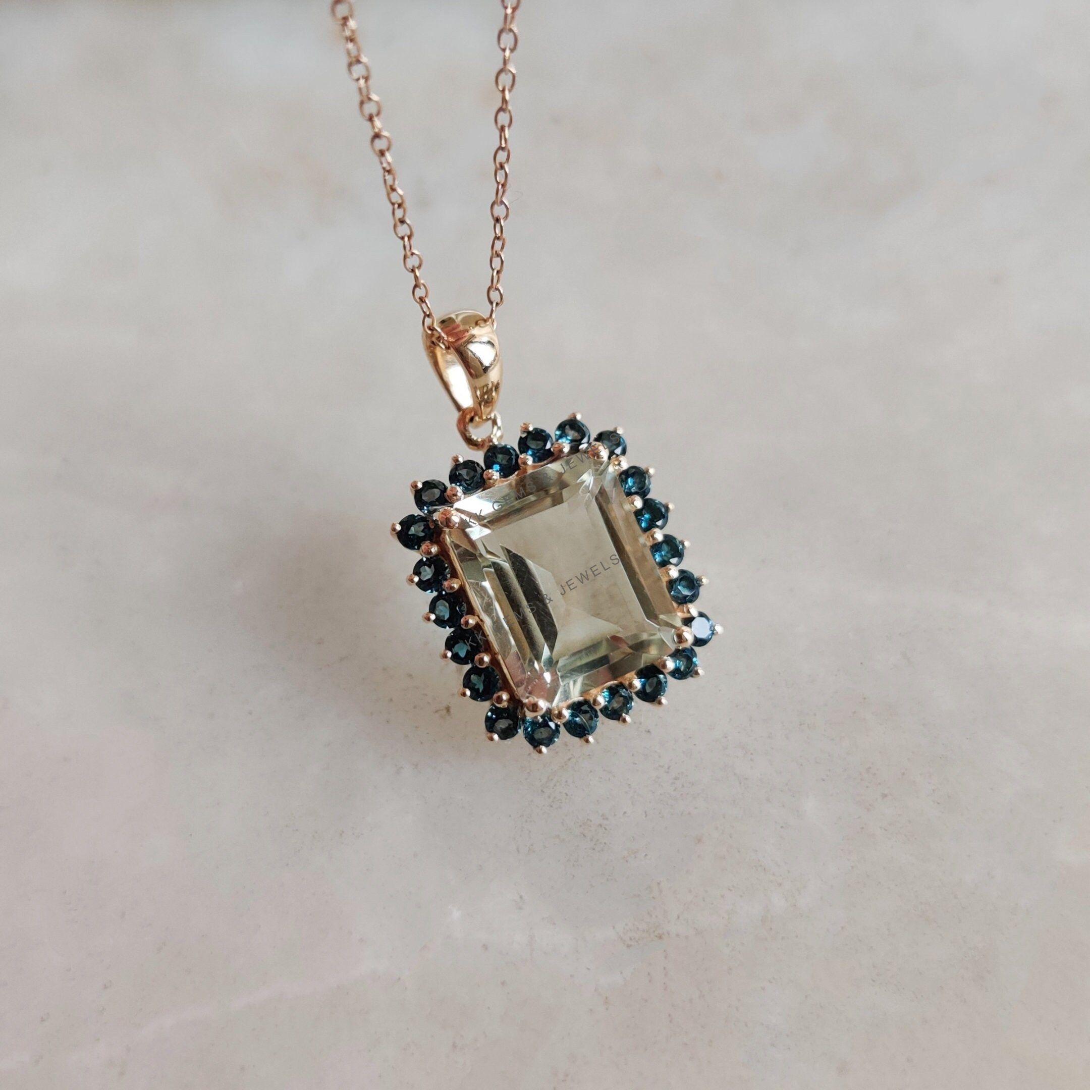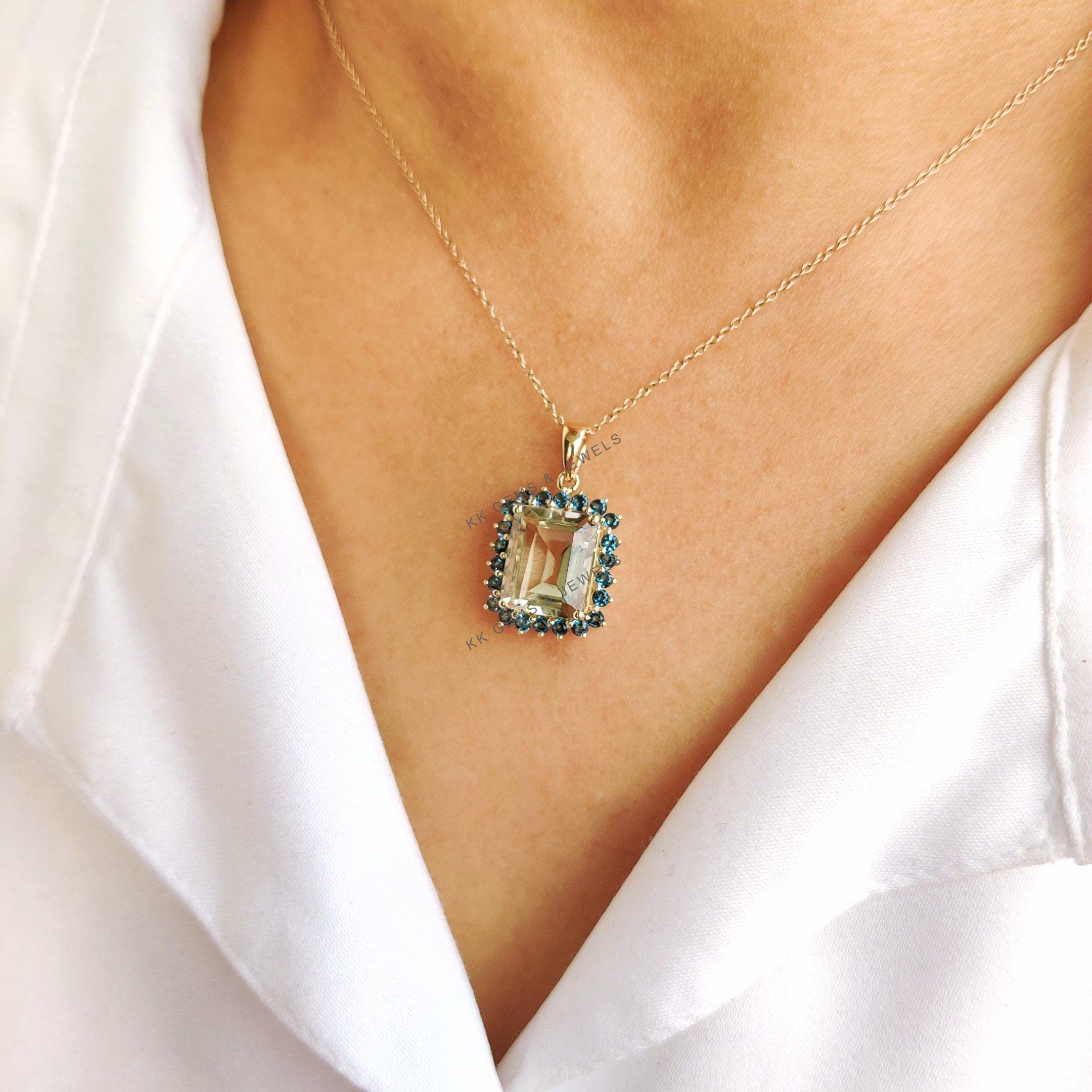 This stunning pendant is set in 14K Solid Yellow Gold with Natural Green Amethyst & London Blue Topaz with utmost precision. It is an unique gemstone pendant for nearly every occasion and is completely hassle-free jewelry. ✓ ABOUT GEMSTONE: Green…