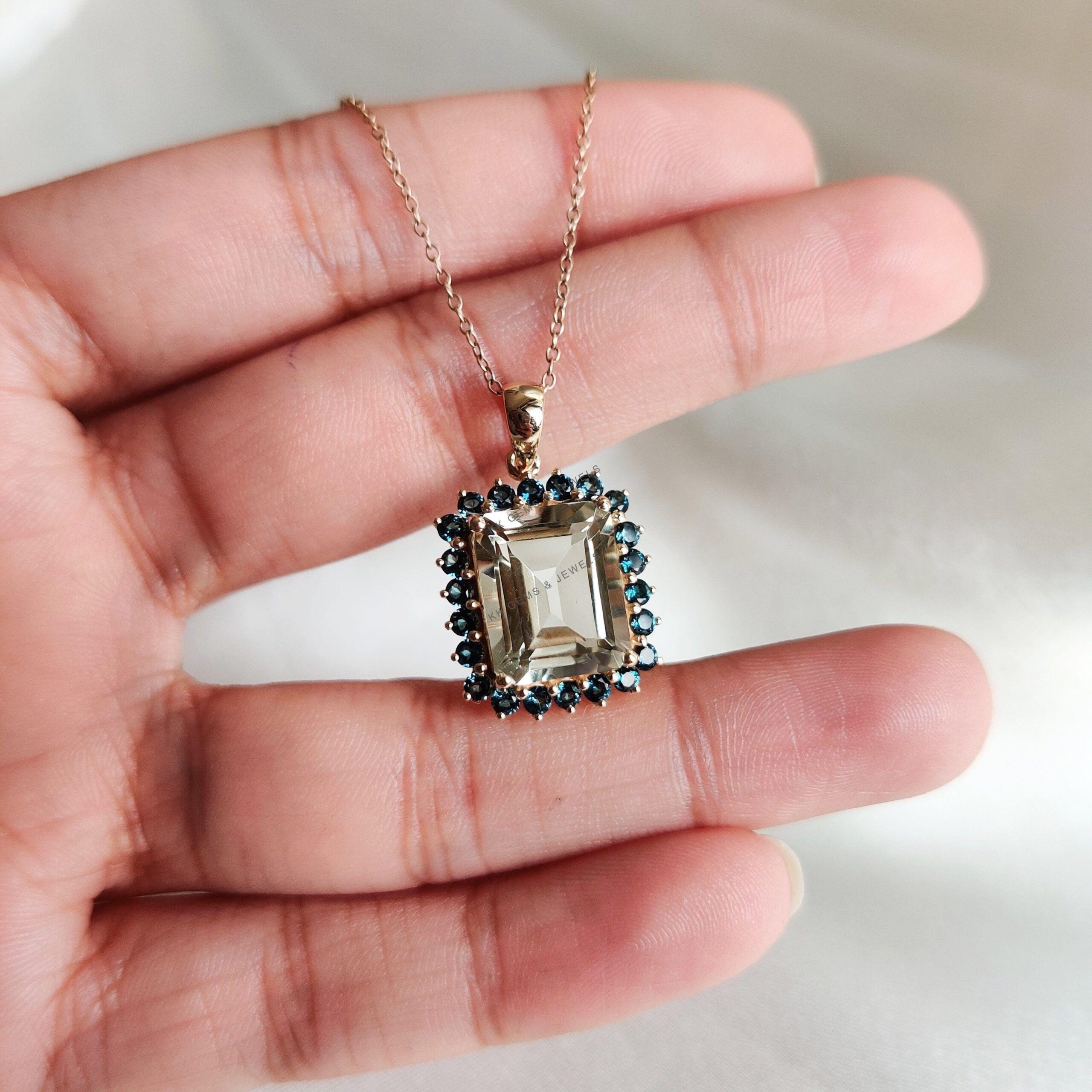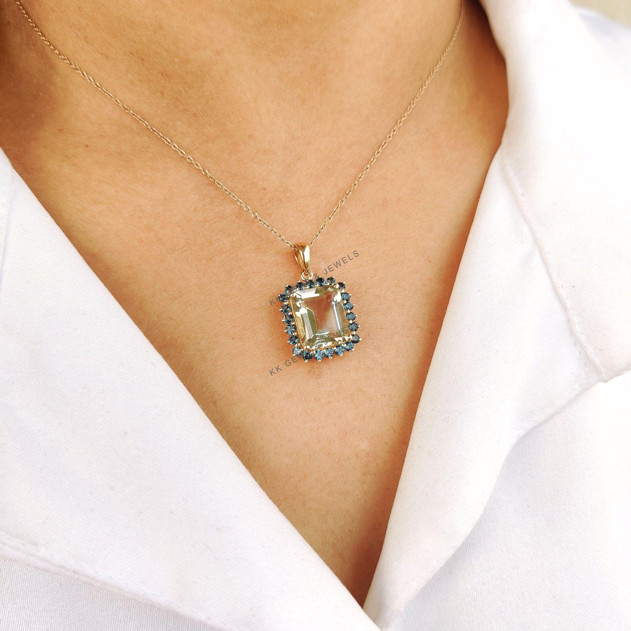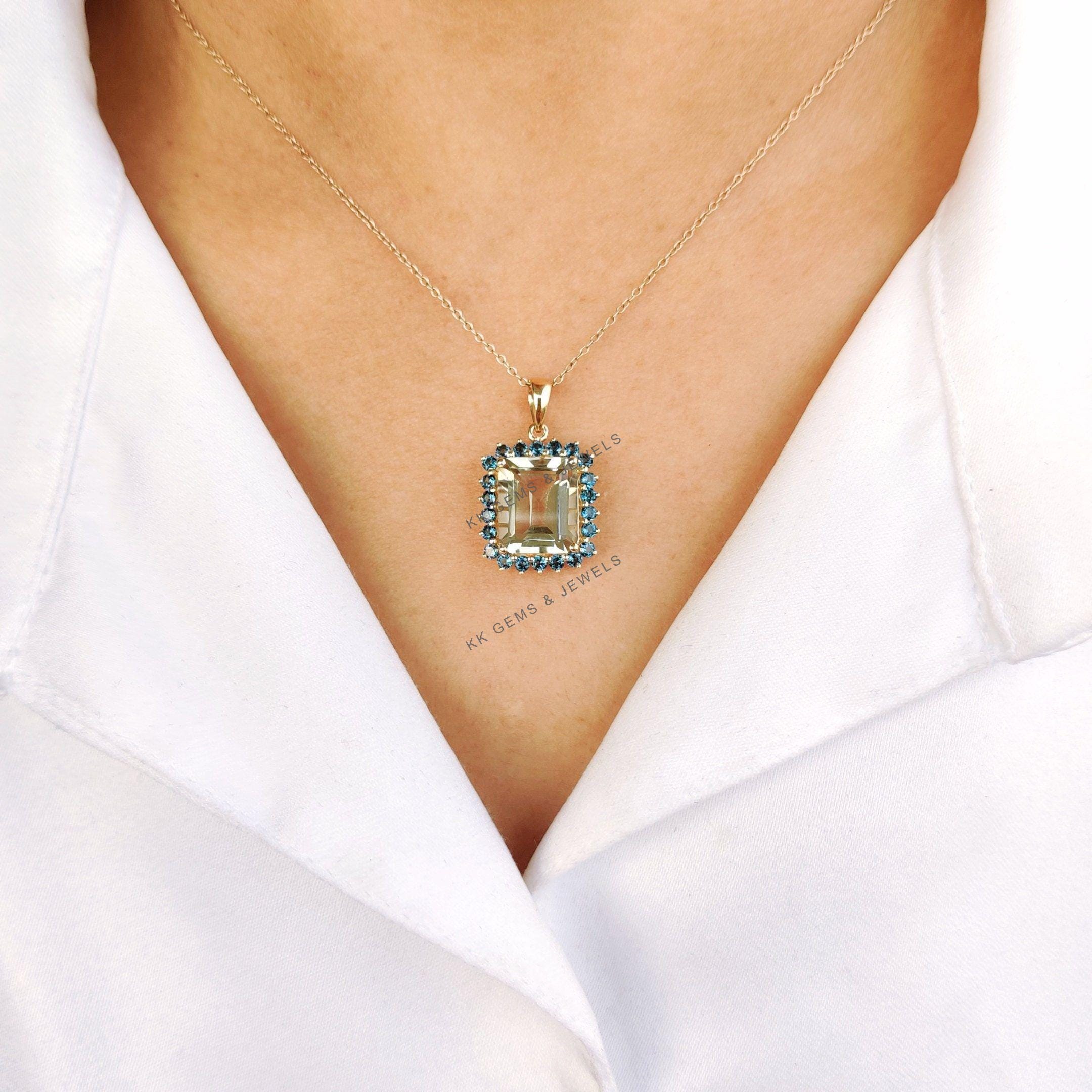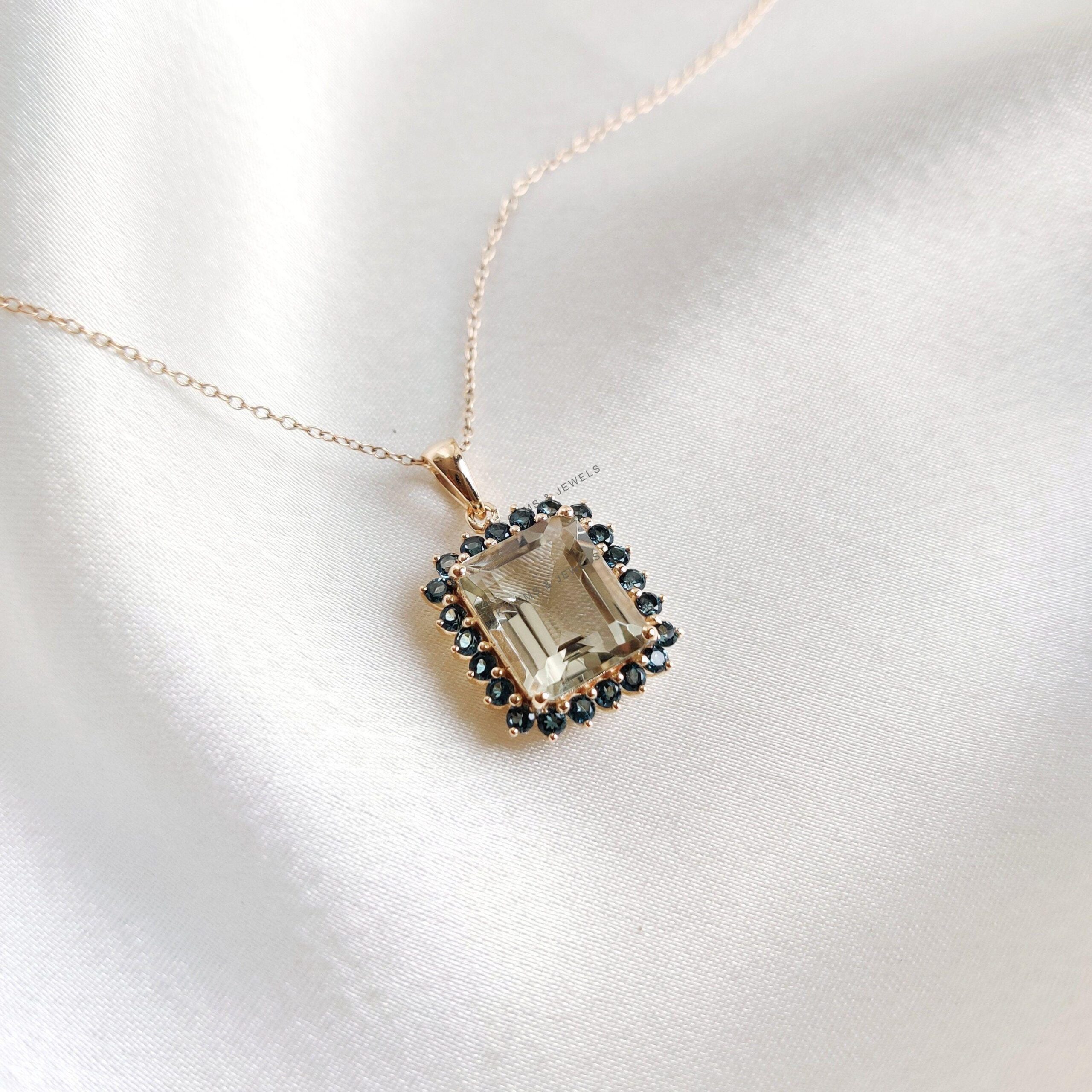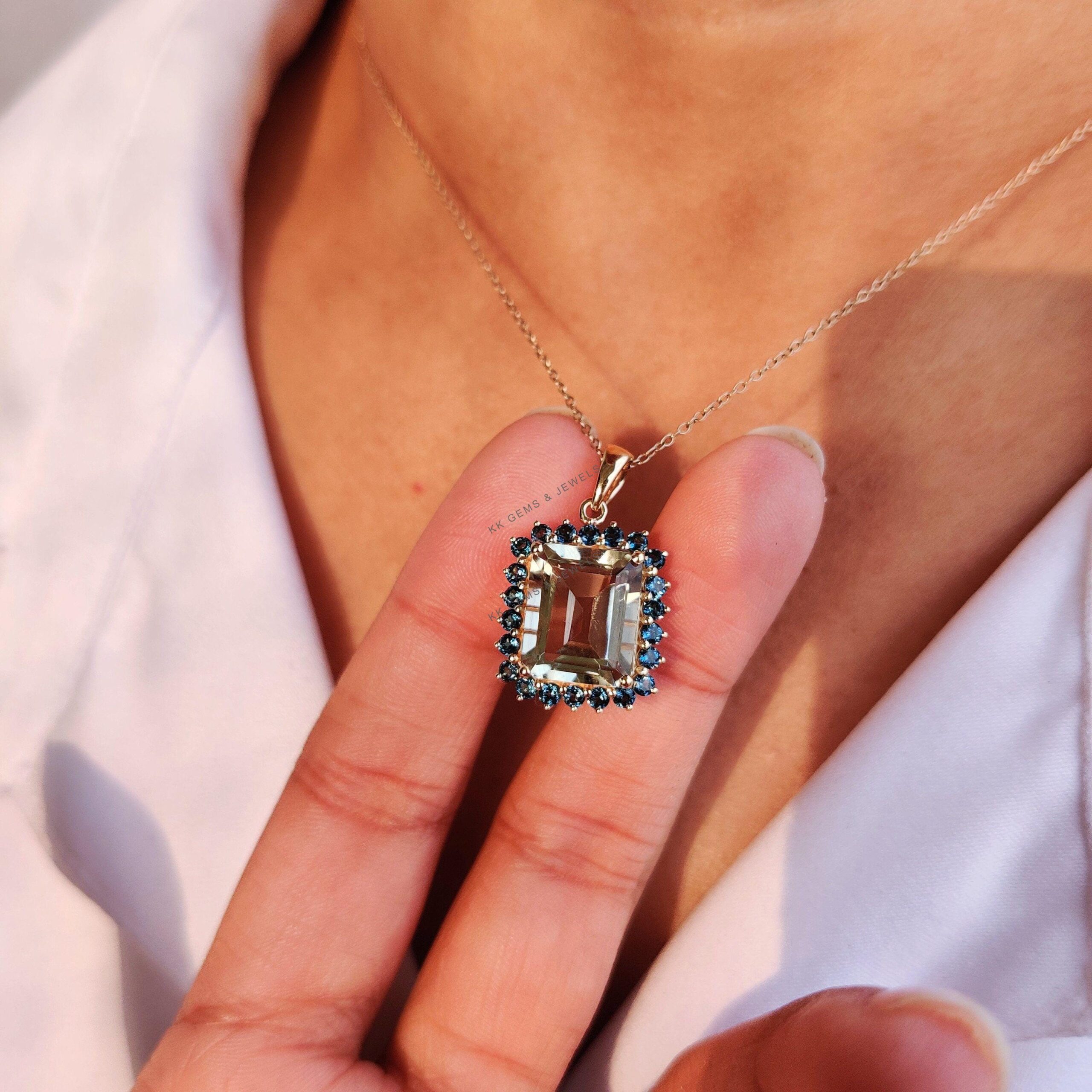 This stunning pendant is set in 14K Solid Yellow Gold with Natural Green Amethyst & London Blue Topaz with utmost precision. It is an unique gemstone pendant for nearly every occasion and is completely hassle-free jewelry. ✓ ABOUT GEMSTONE: Green…