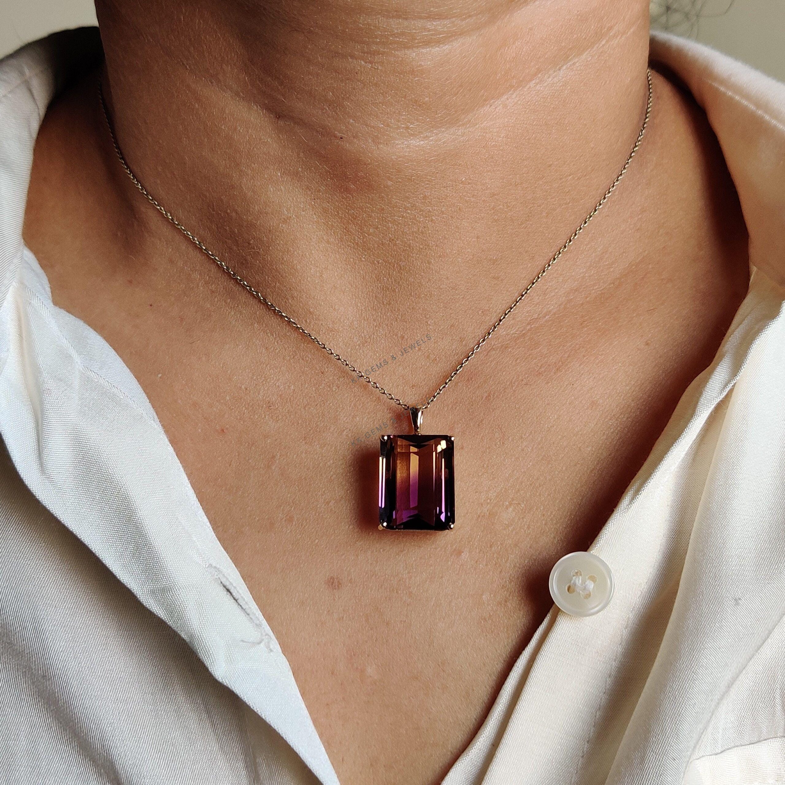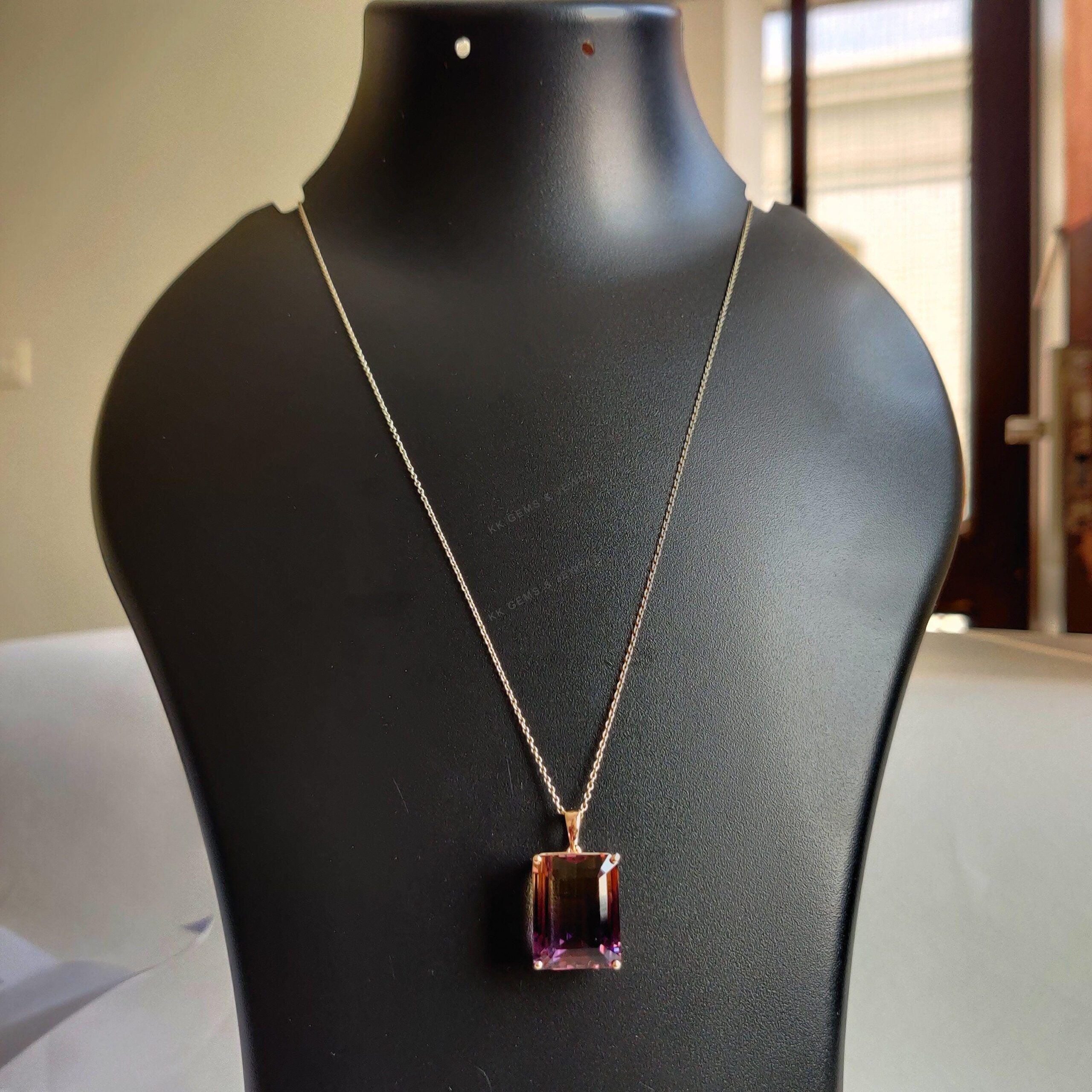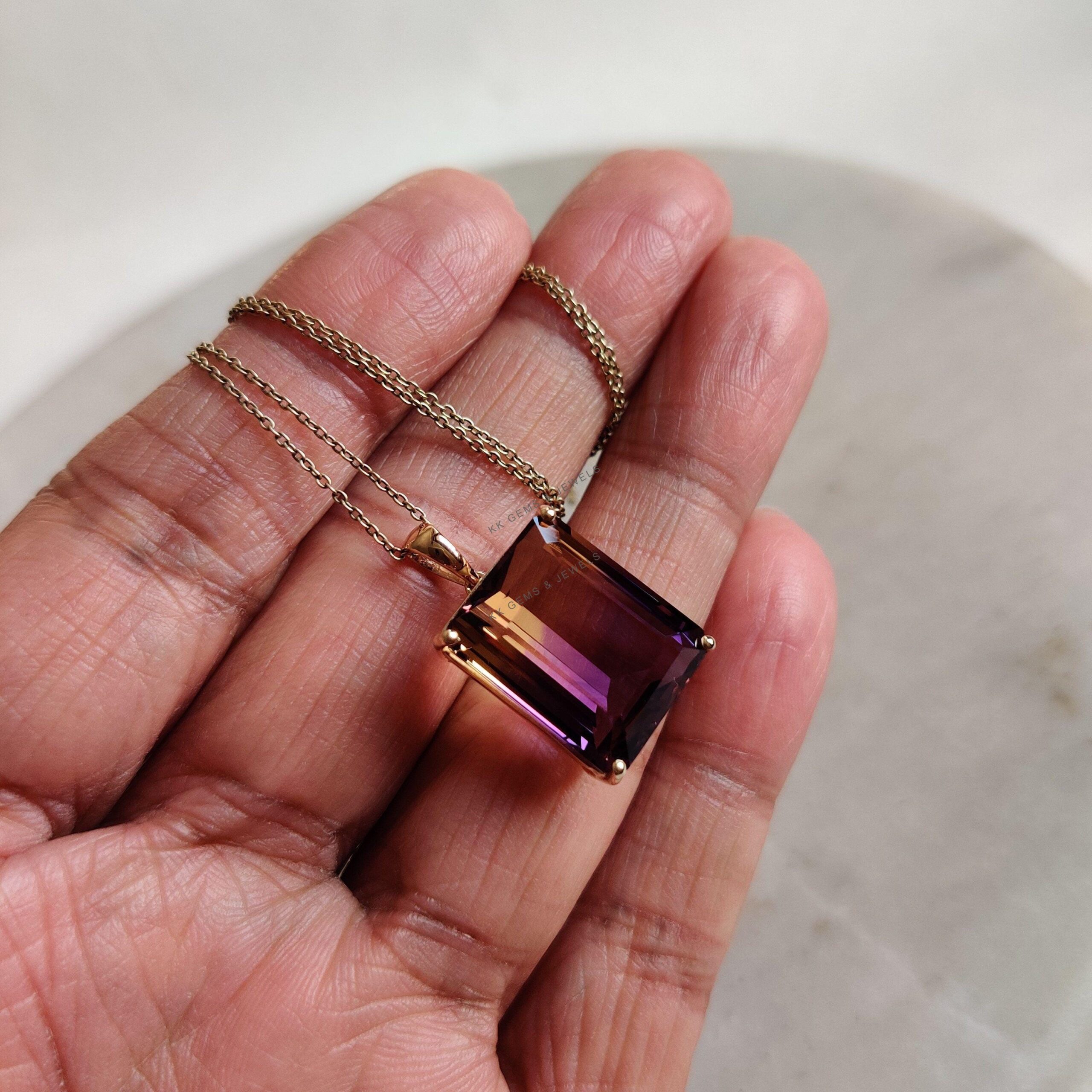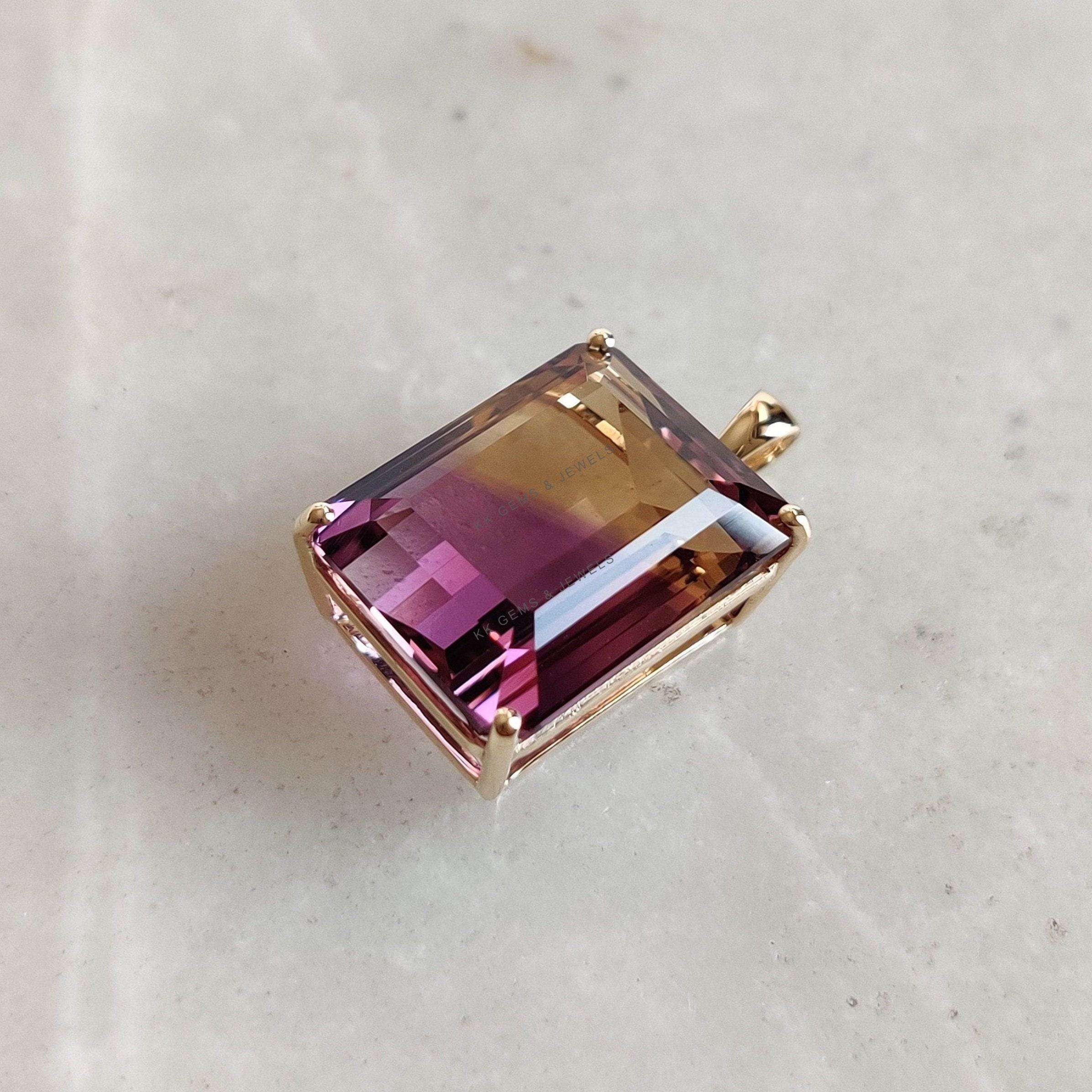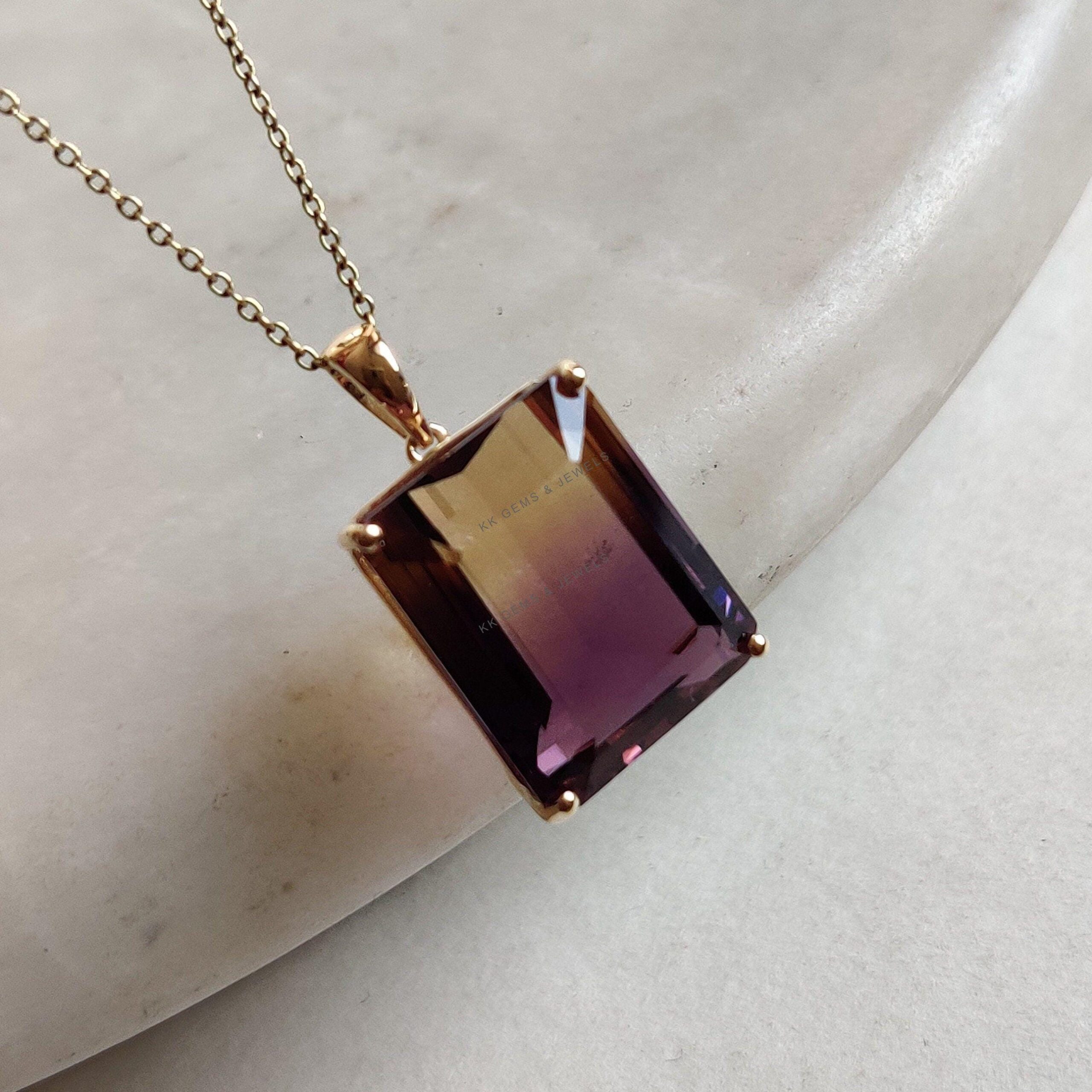 Be the first to review “Emerald Cut Natural Ametrine Birthstone Pendant Set in 14K Solid Gold”