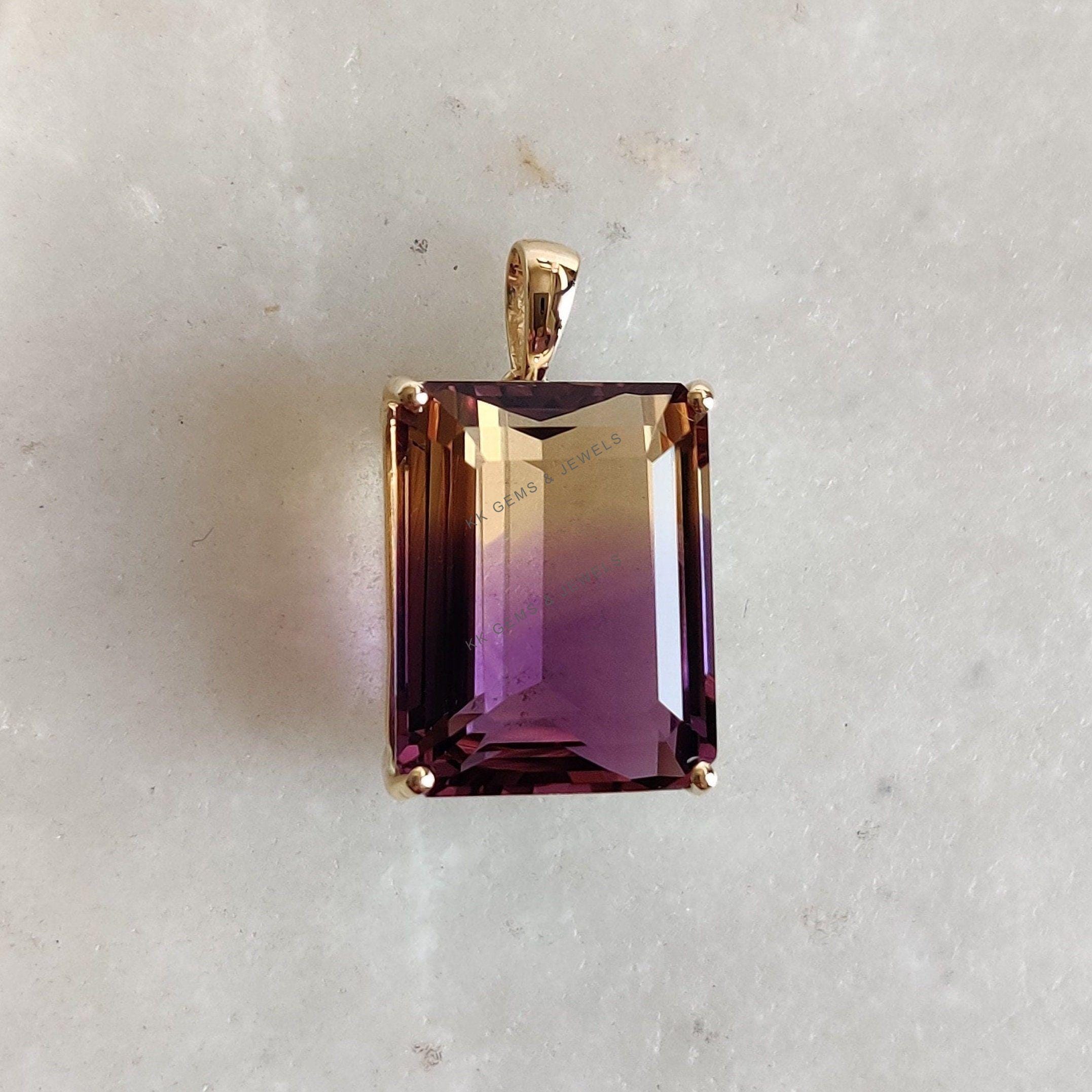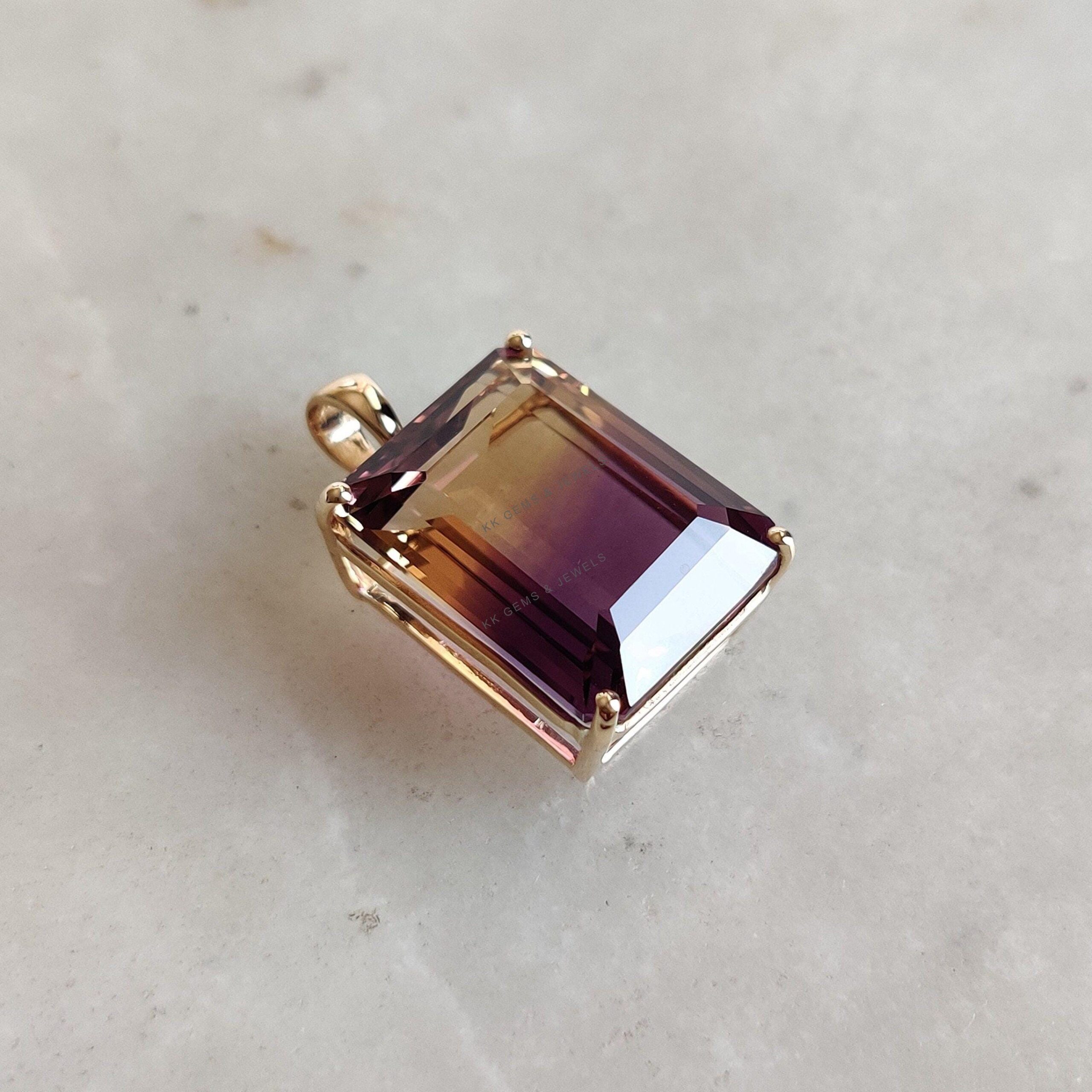 Emerald Cut Natural Ametrine Birthstone Pendant Set in 14K Solid Gold