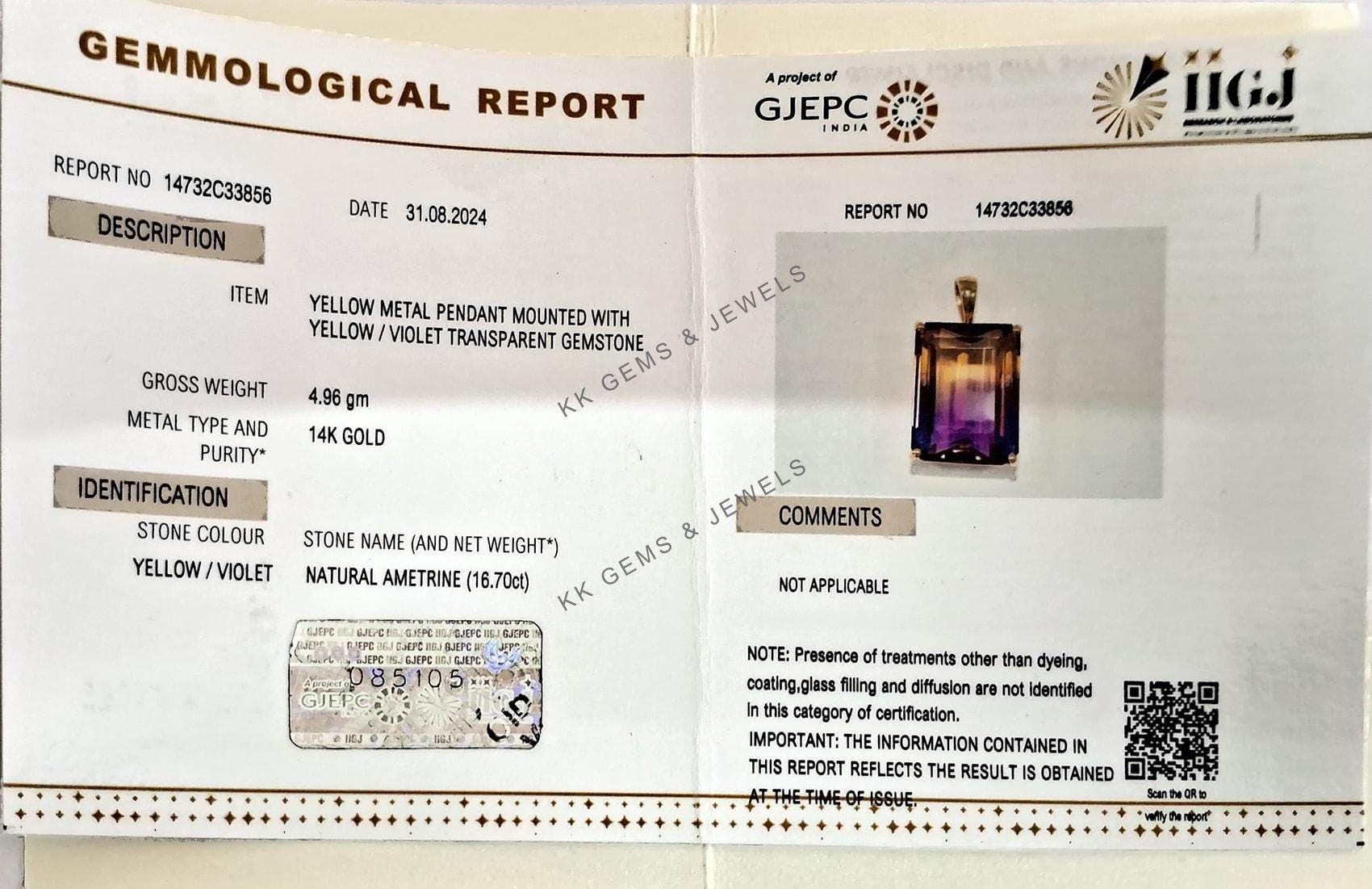 This stunning pendant is set in 14K Solid Yellow Gold with Natural Ametrine with utmost precision. It is an unique gemstone pendant for nearly every occasion and is completely hassle-free jewelry. ✓ ABOUT GEMSTONE: Ametrine is thought to balance and…