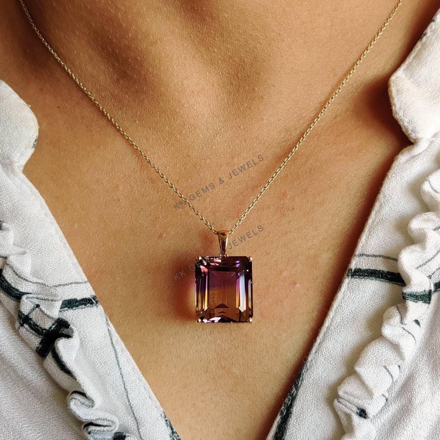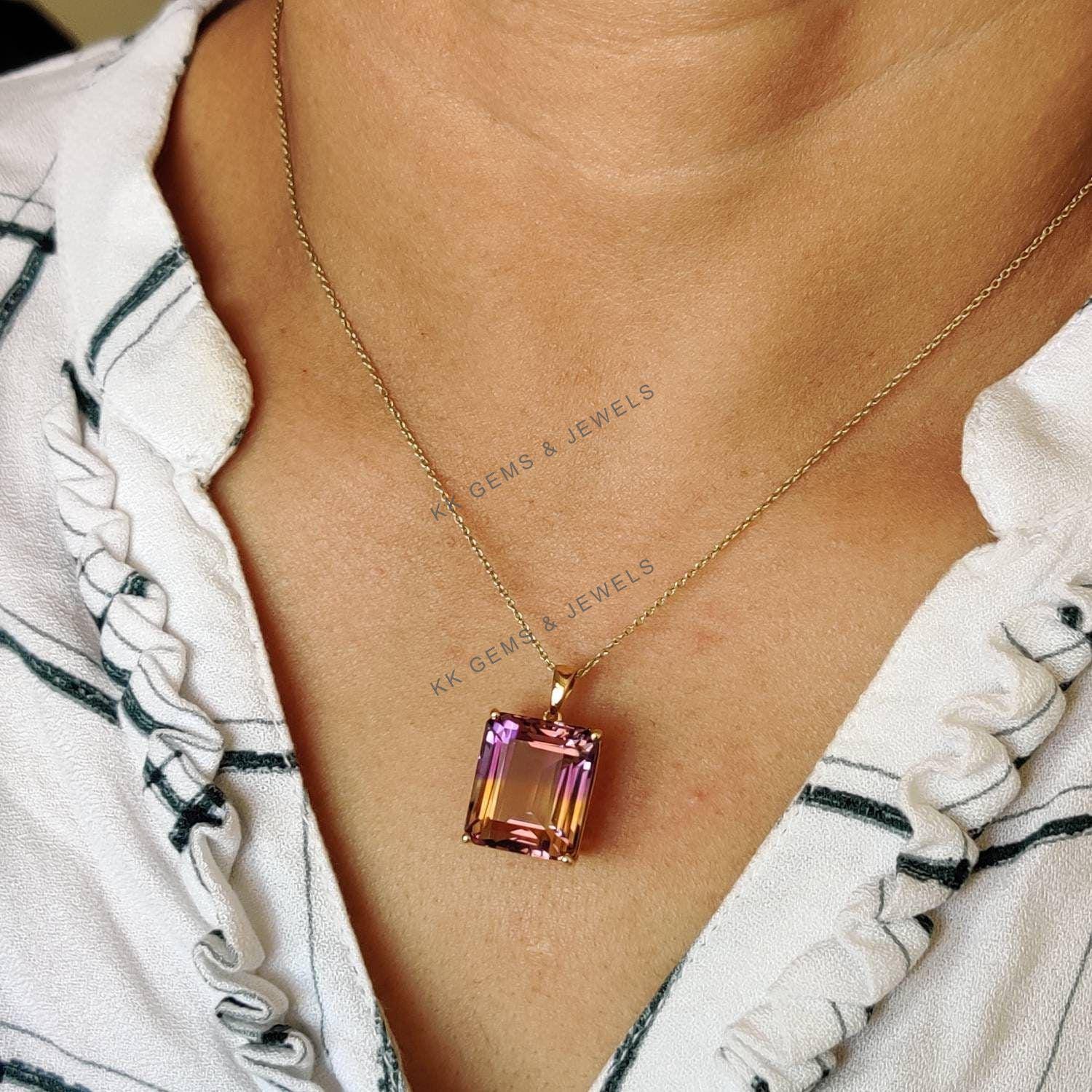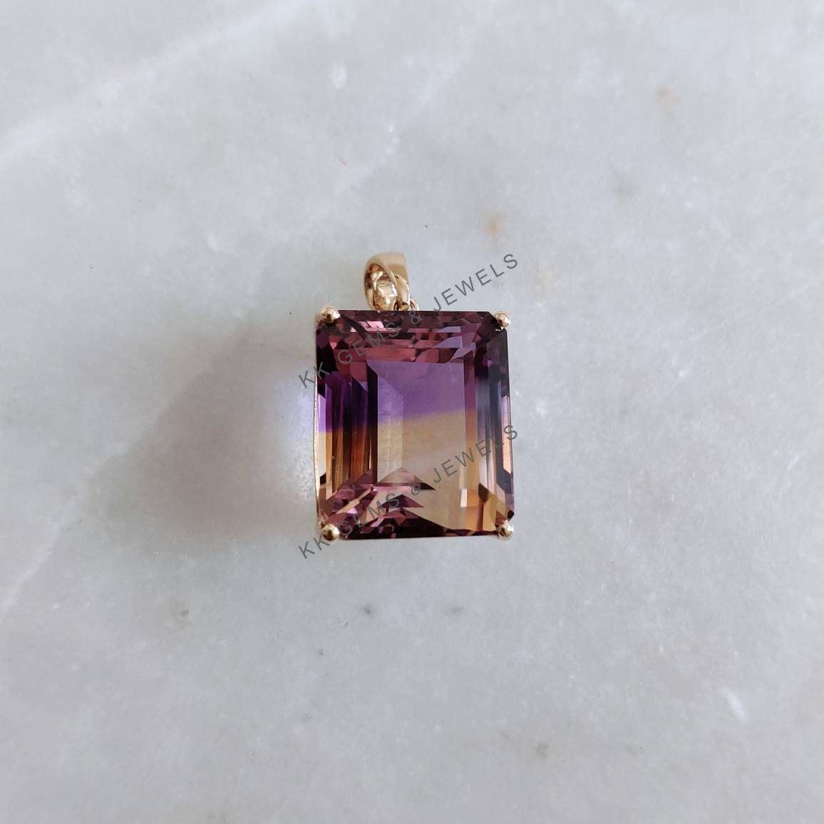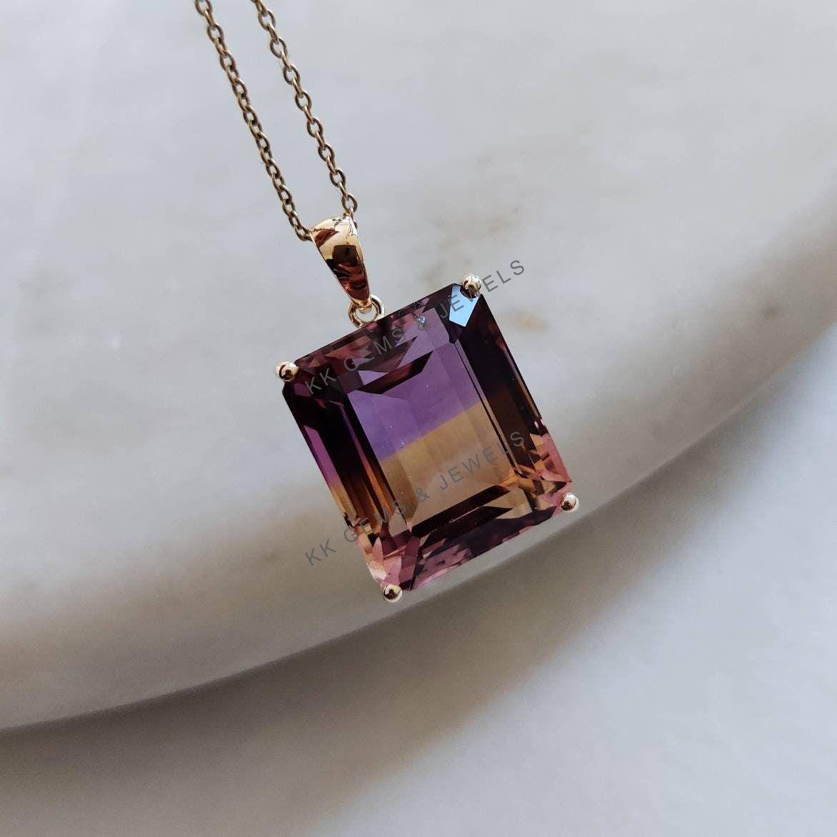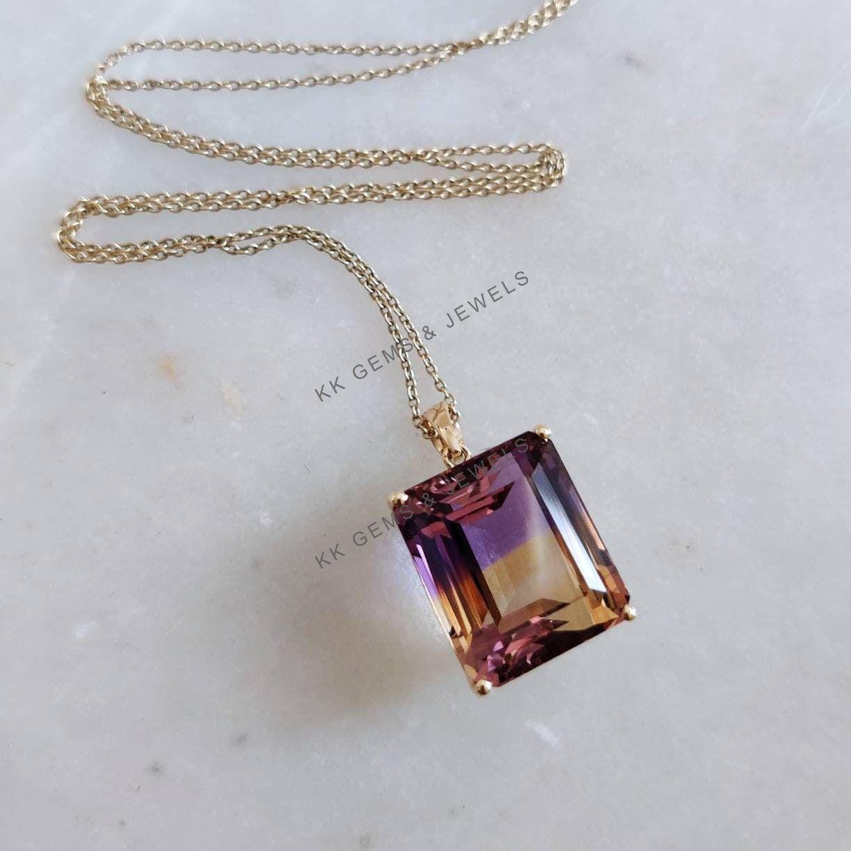 This stunning pendant is set in 14K Solid Yellow Gold with Natural Ametrine with utmost precision. It is an unique gemstone pendant for nearly every occasion and is completely hassle-free jewelry. ✓ ABOUT GEMSTONE: Ametrine is thought to balance and…