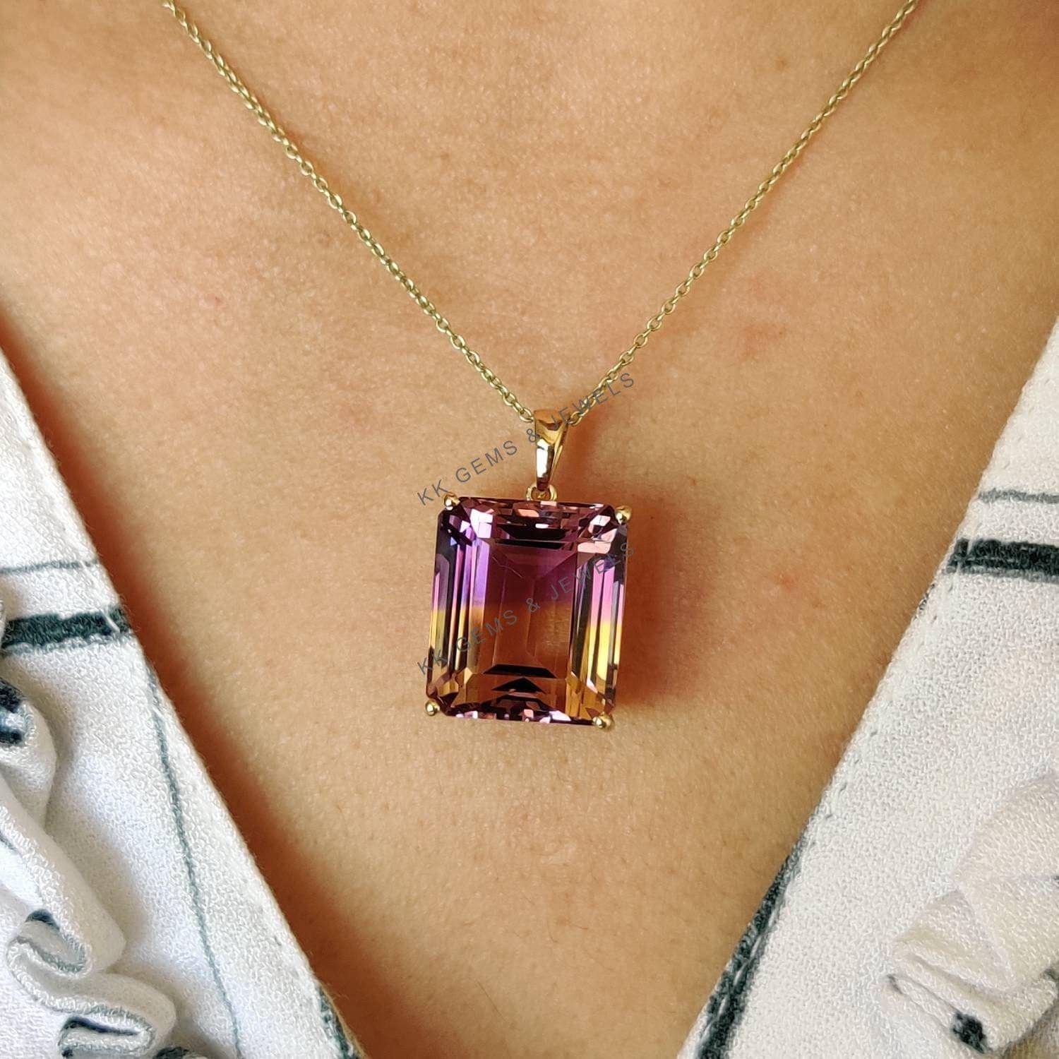 This stunning pendant is set in 14K Solid Yellow Gold with Natural Ametrine with utmost precision. It is an unique gemstone pendant for nearly every occasion and is completely hassle-free jewelry.