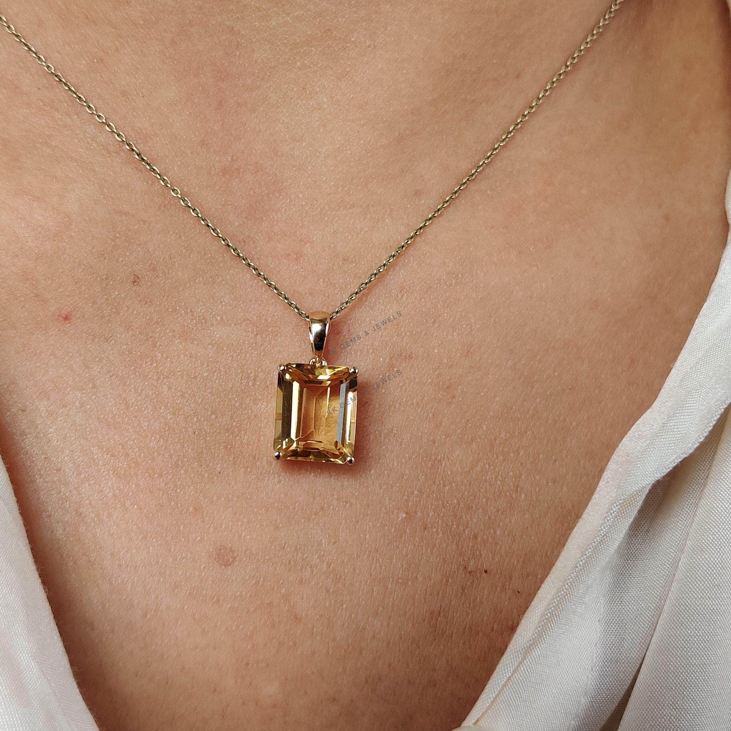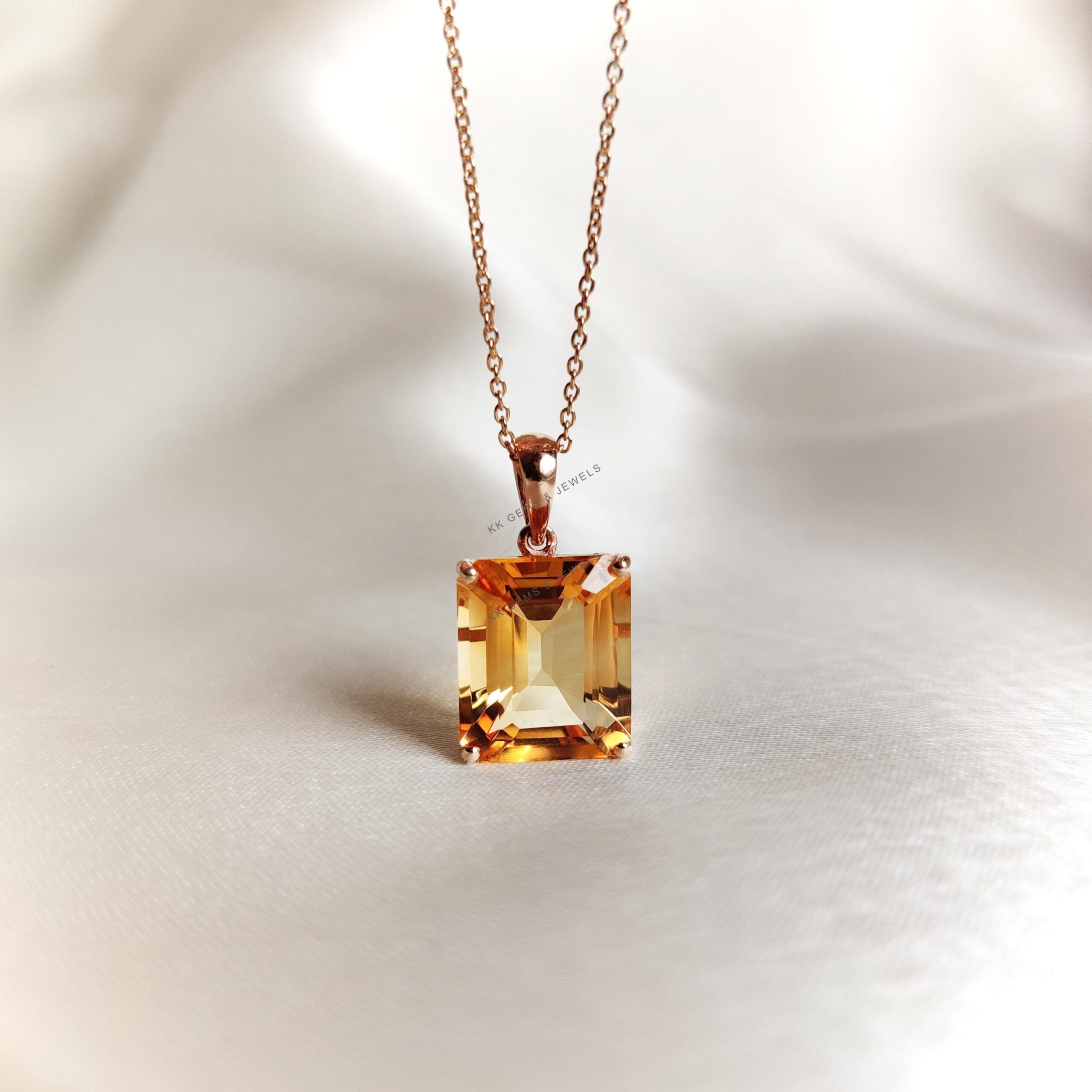 6 reviews for Octagon Cut Natural Citrine Birthstone Pendant Set in 14K Solid Gold