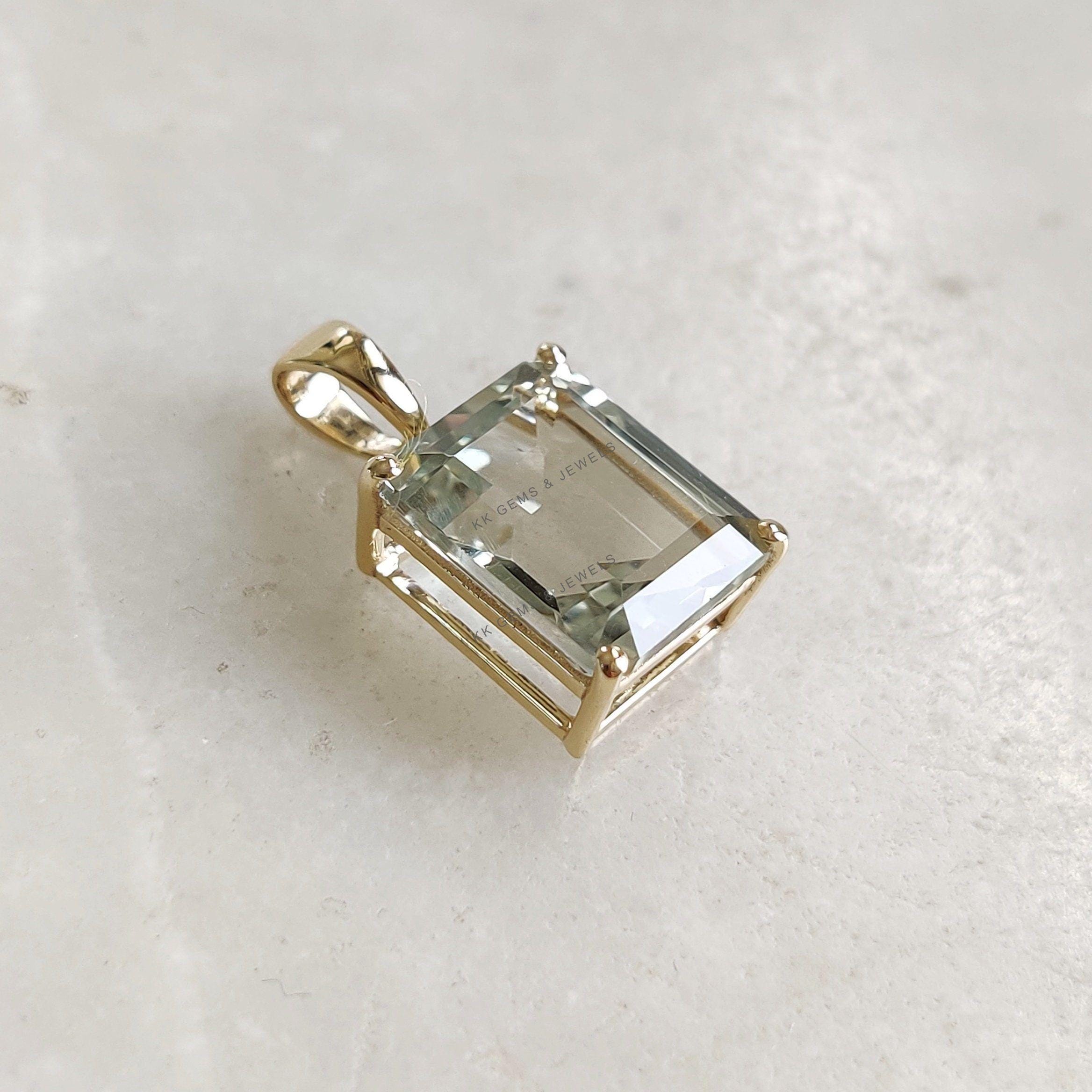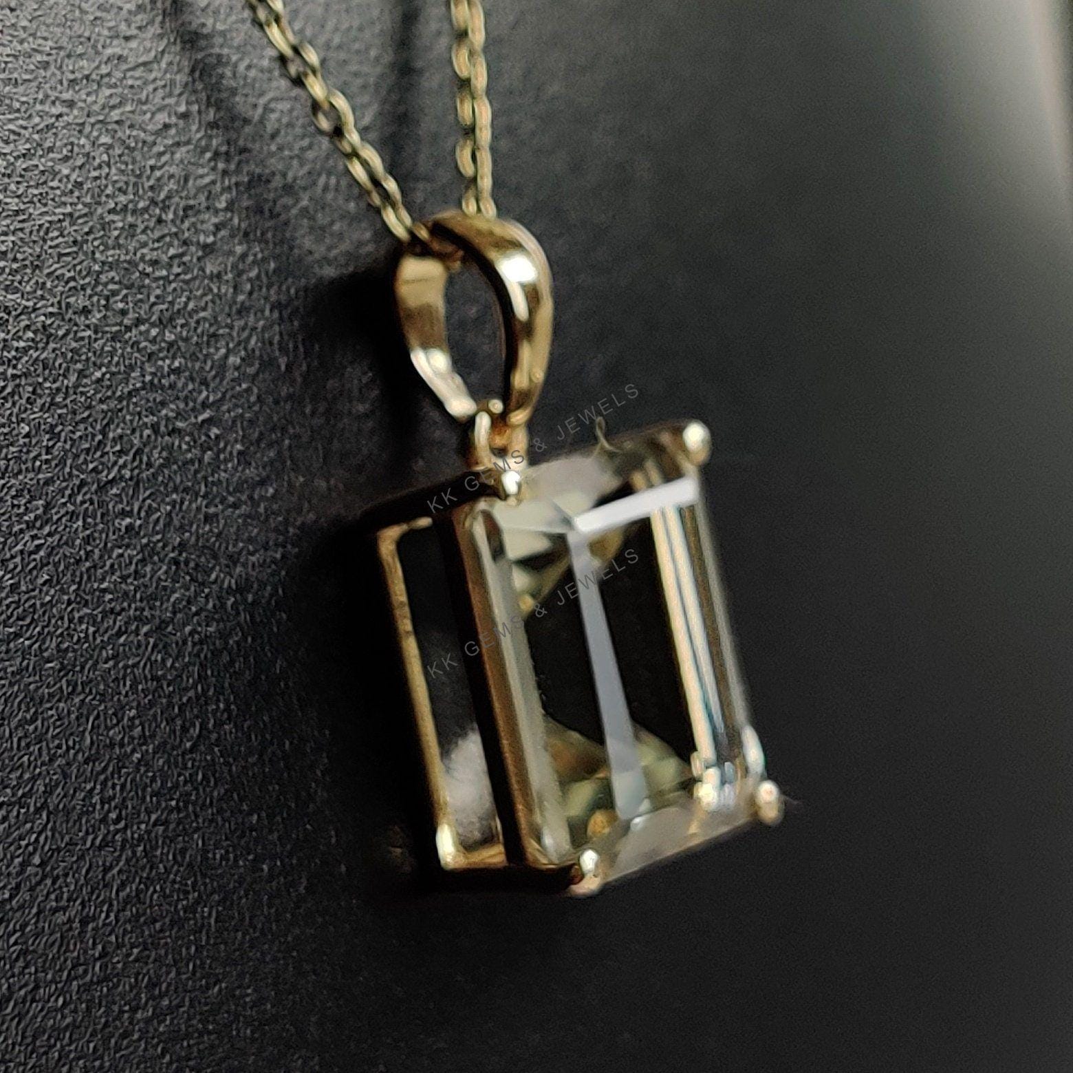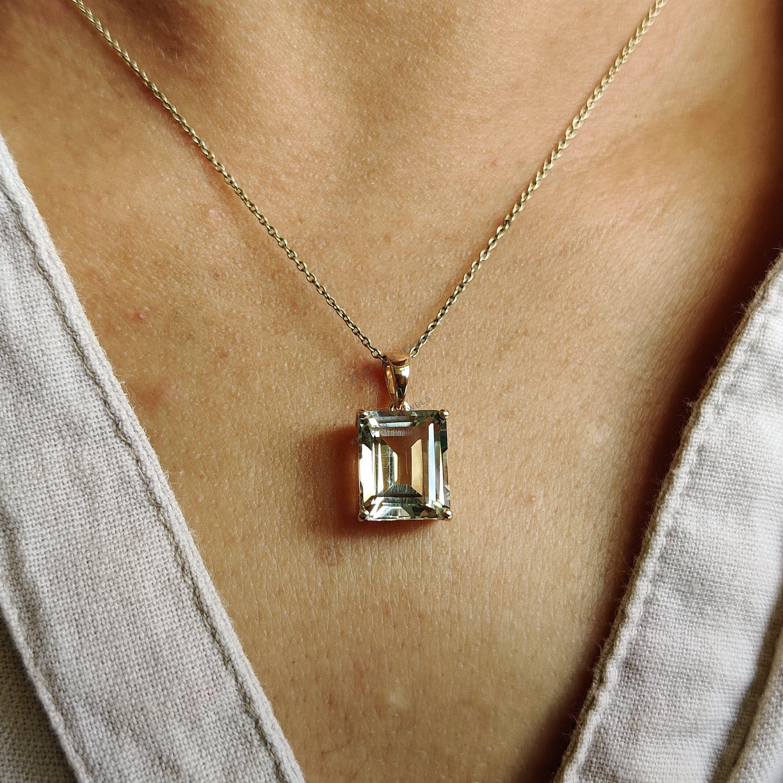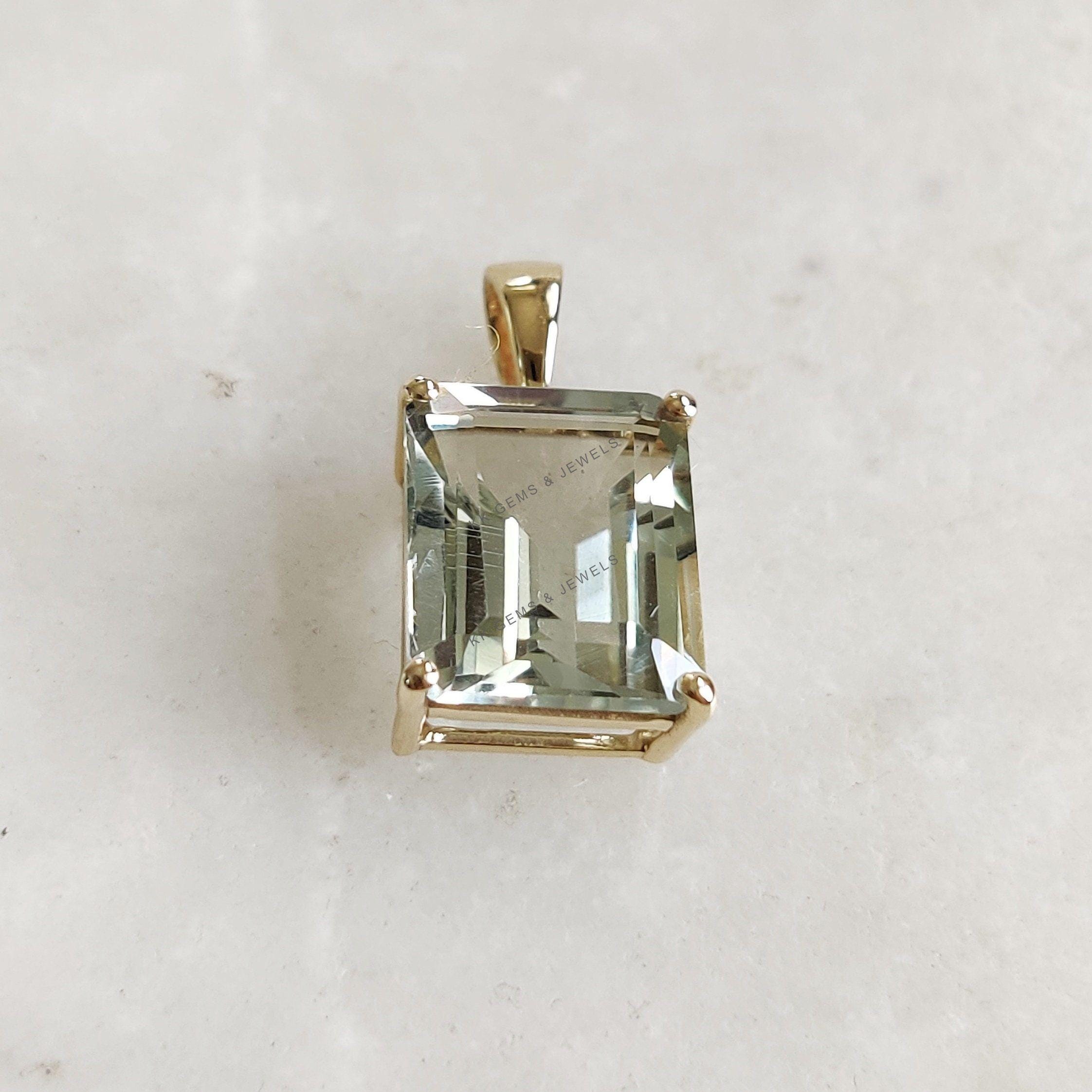 1 review for Emerald Cut Natural Green Amethyst Birthstone Pendant in 14K Solid Gold