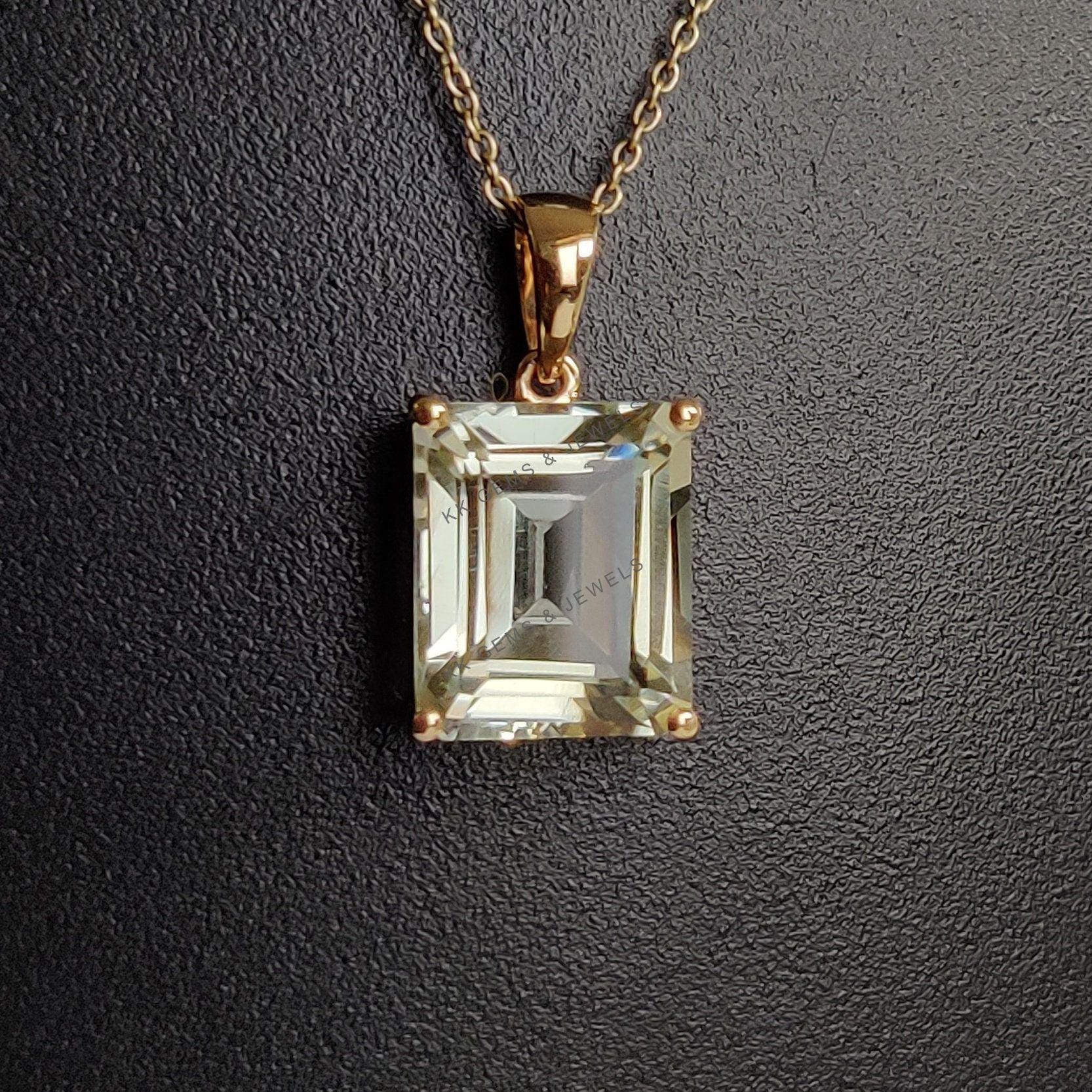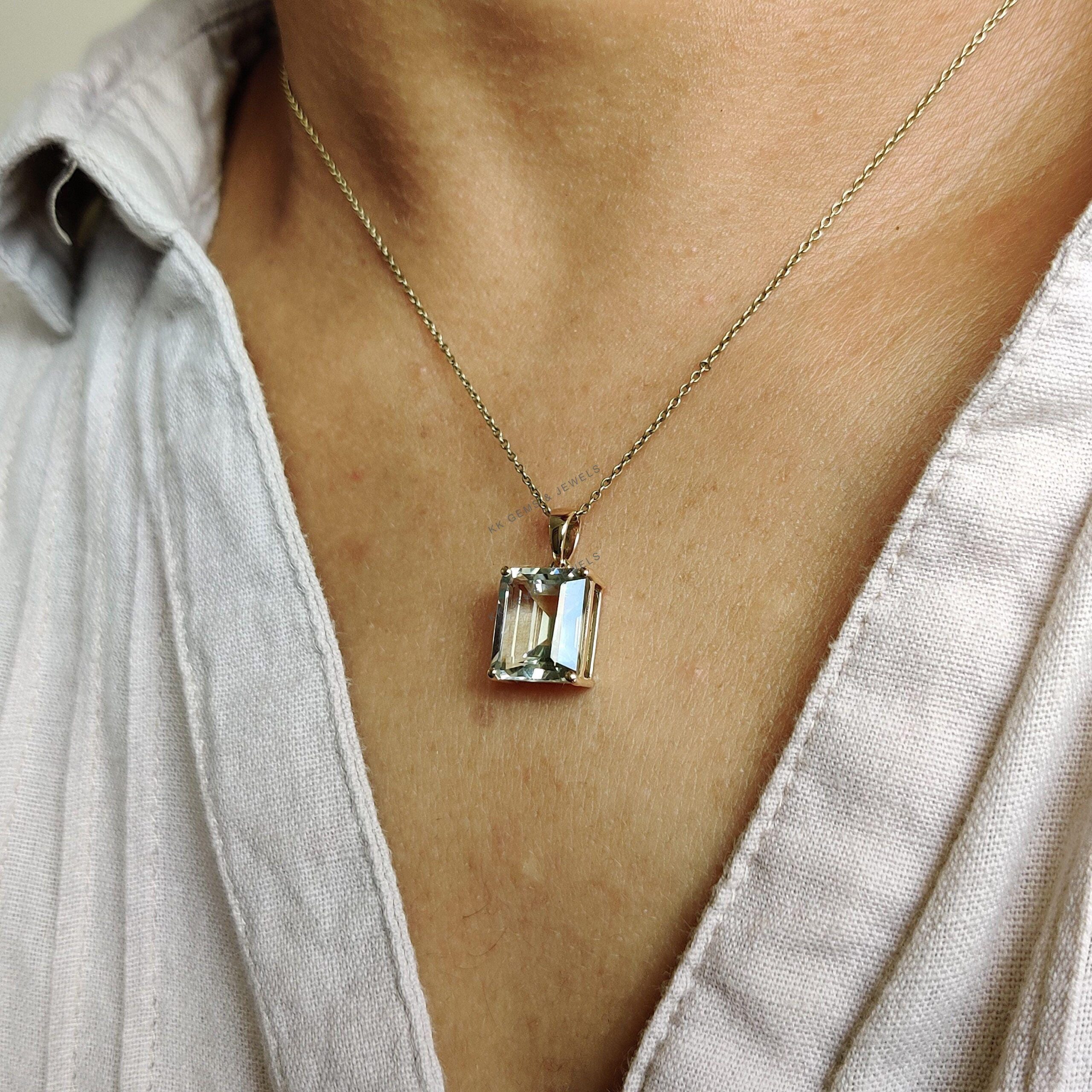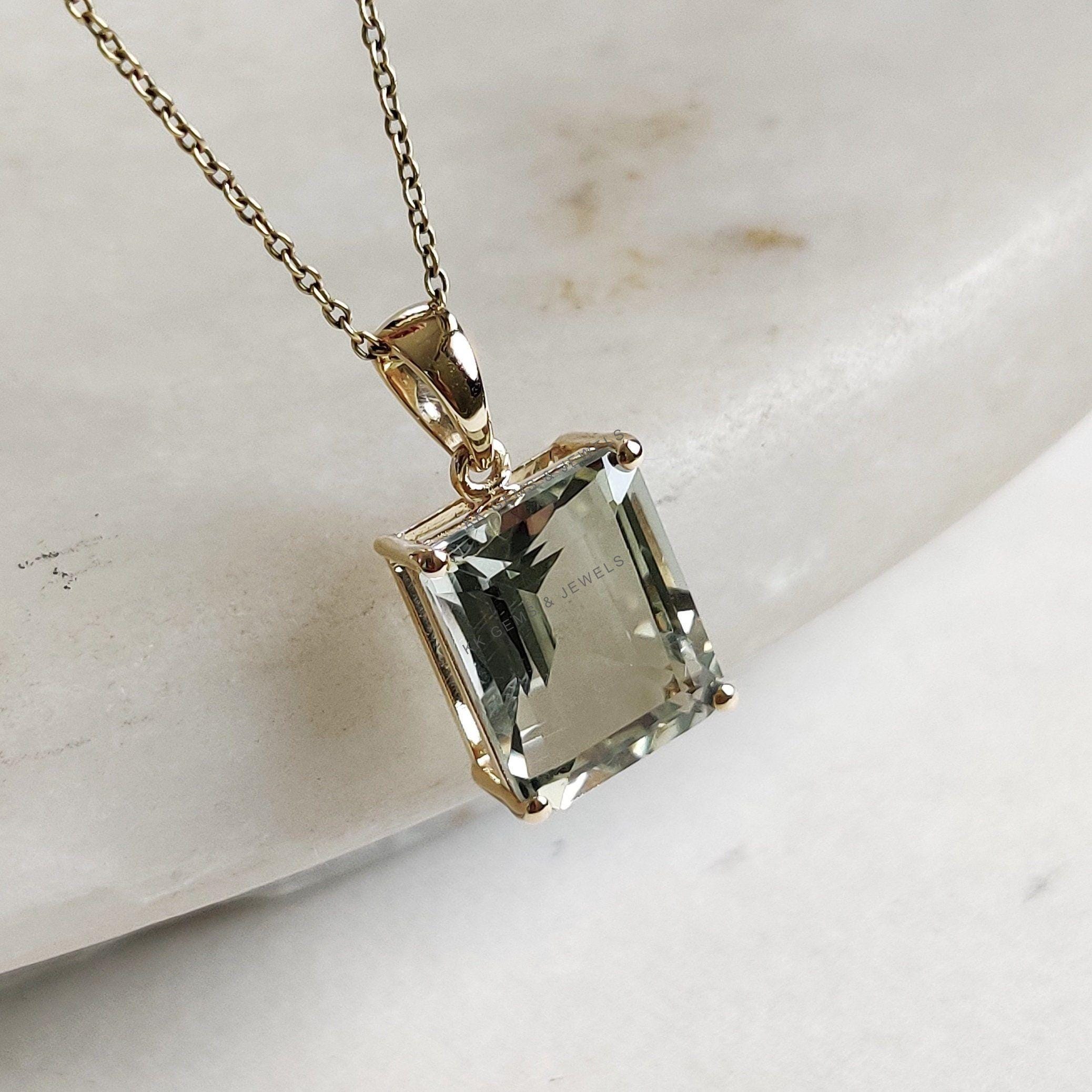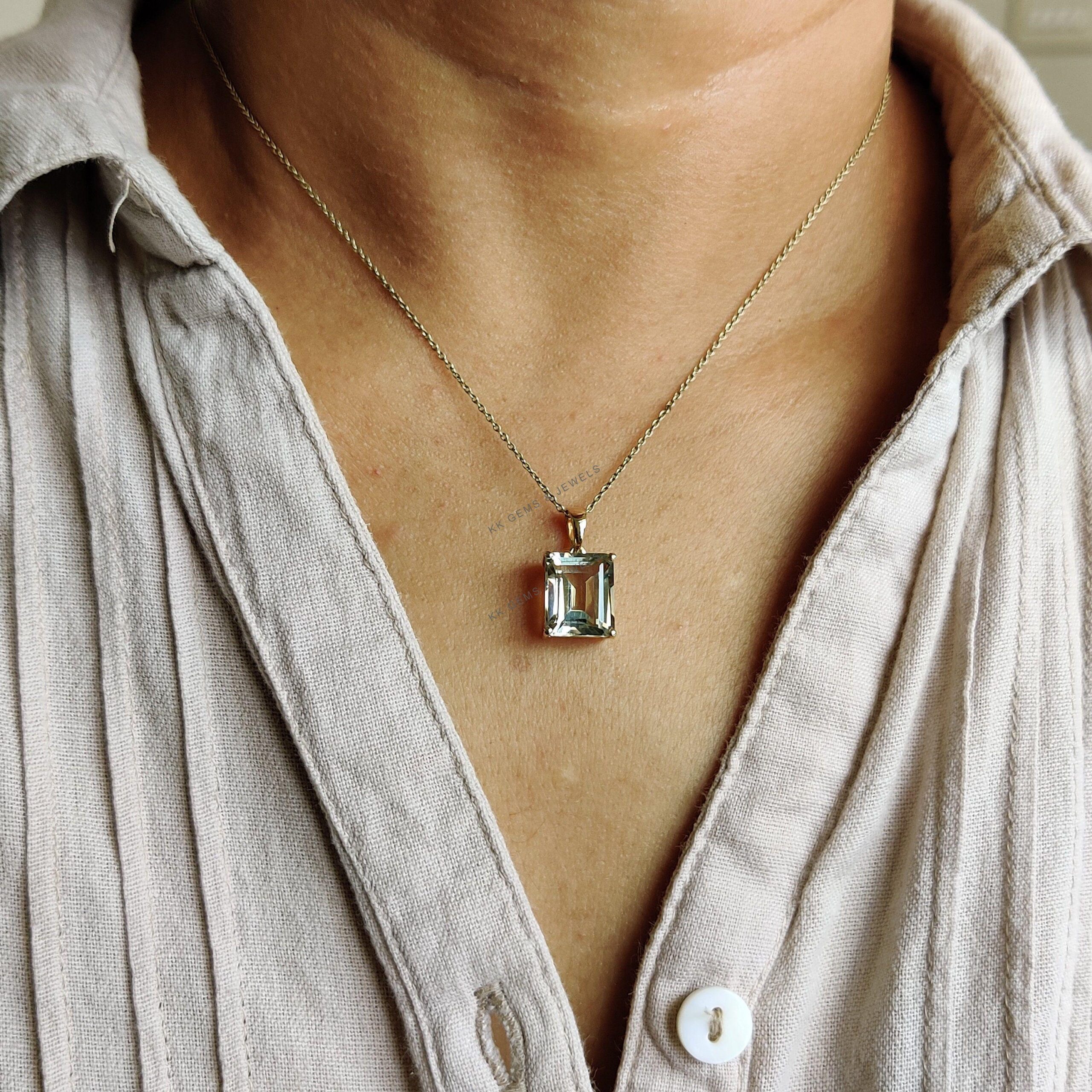 1 review for Emerald Cut Natural Green Amethyst Birthstone Pendant in 14K Solid Gold