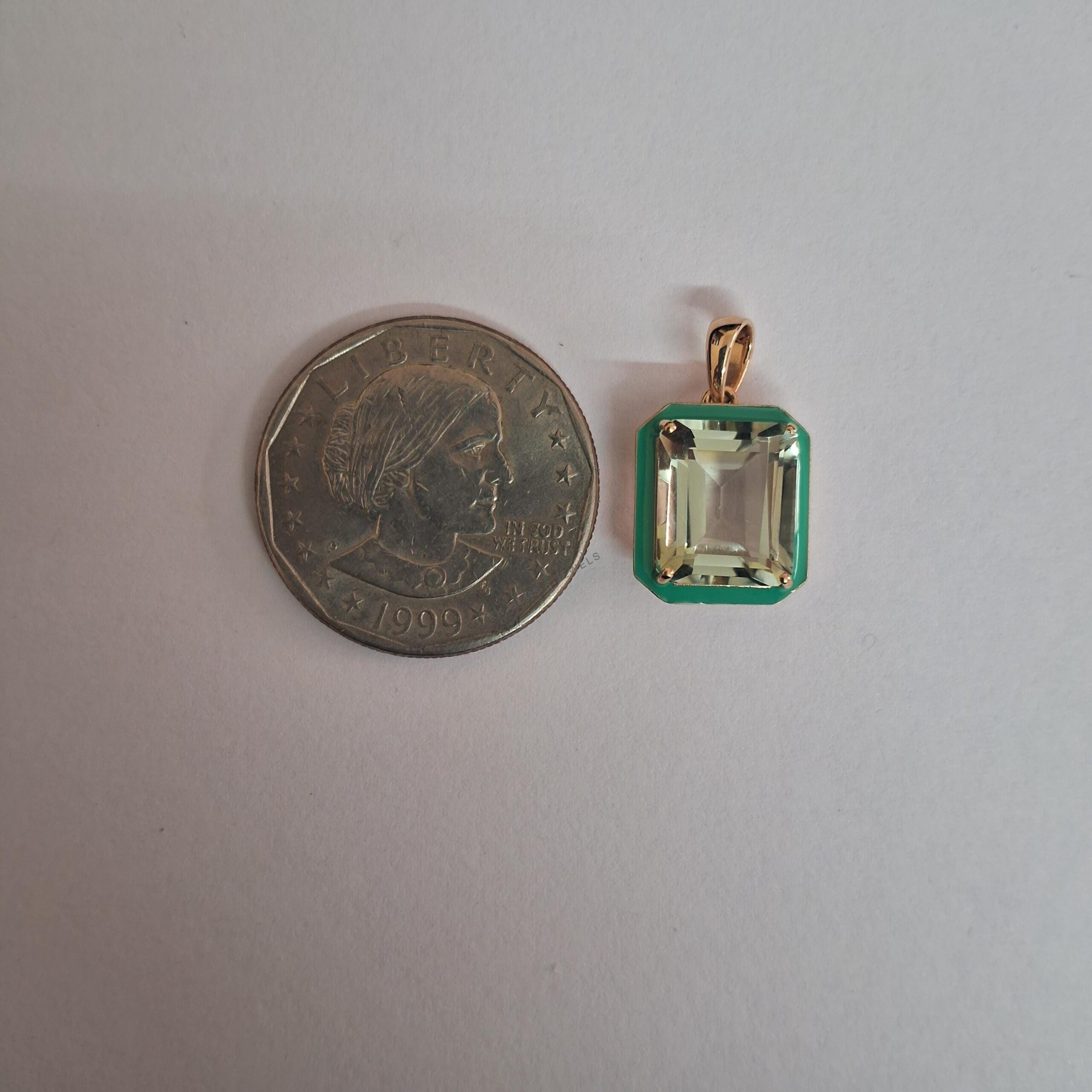 This stunning pendant is set in 14K Solid Yellow Gold with Natural Green Amethyst along with beautiful Green Enamel. It is an unique gemstone pendant for nearly every occasion and is completely hassle-free jewelry.