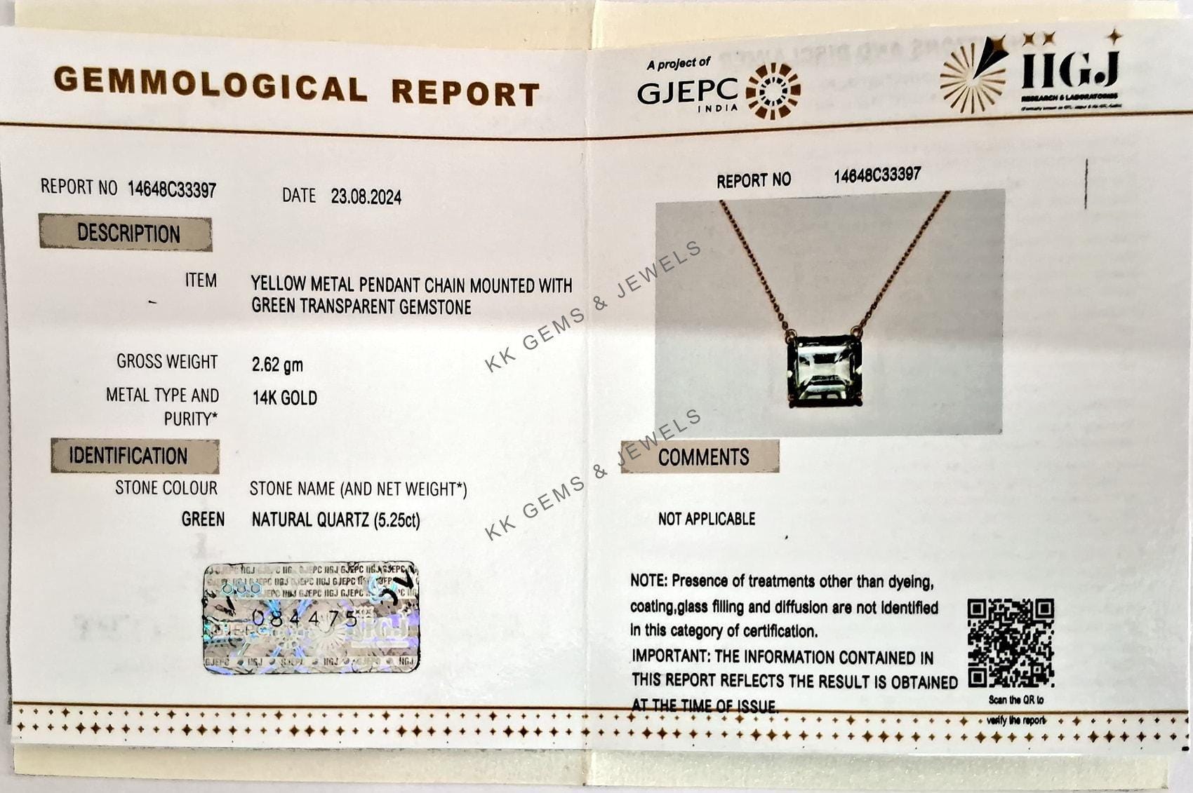 This stunning pendant is set in 14K Solid Yellow Gold with Natural Green Amethyst with utmost precision. It is an unique gemstone pendant for nearly every occasion and is completely hassle-free jewelry.