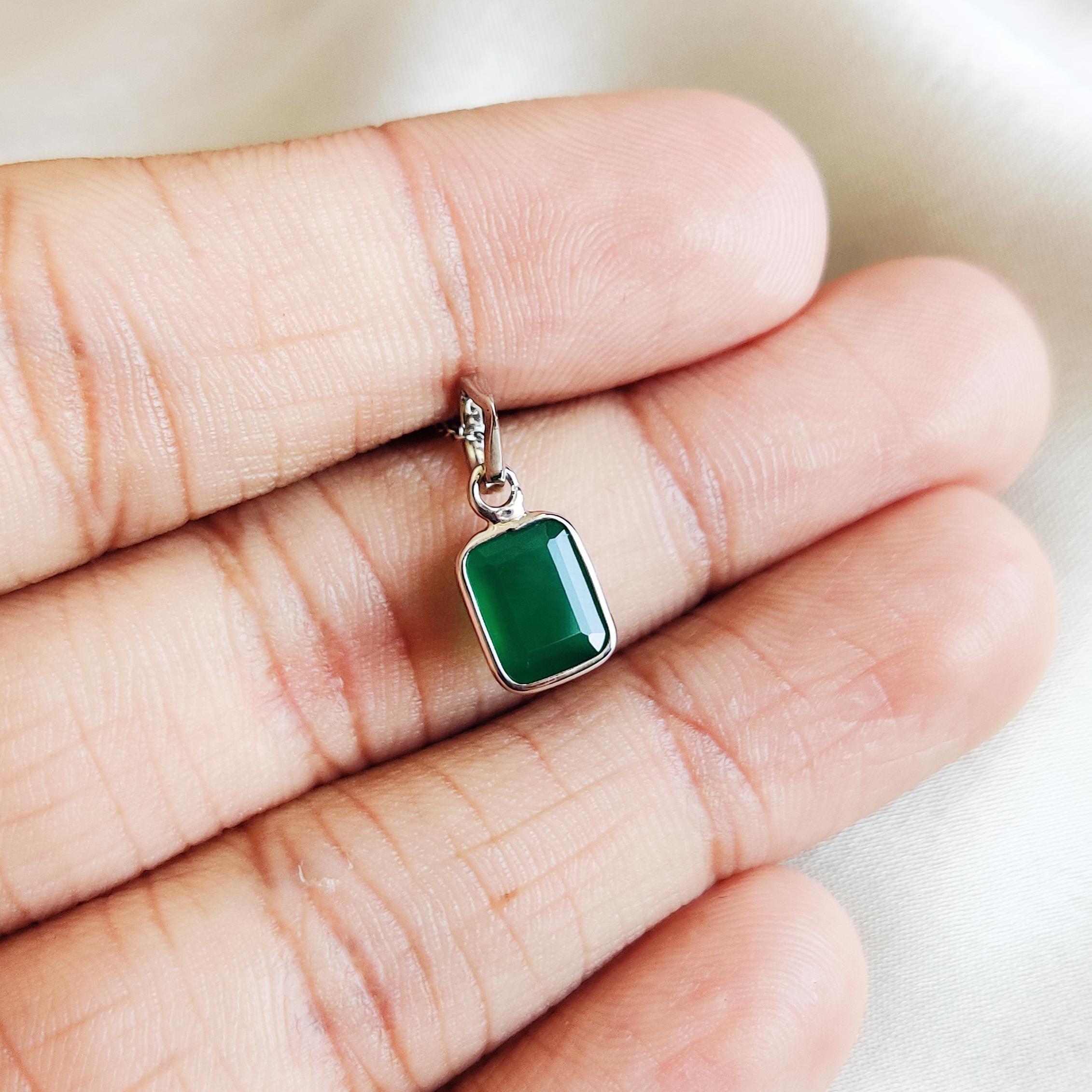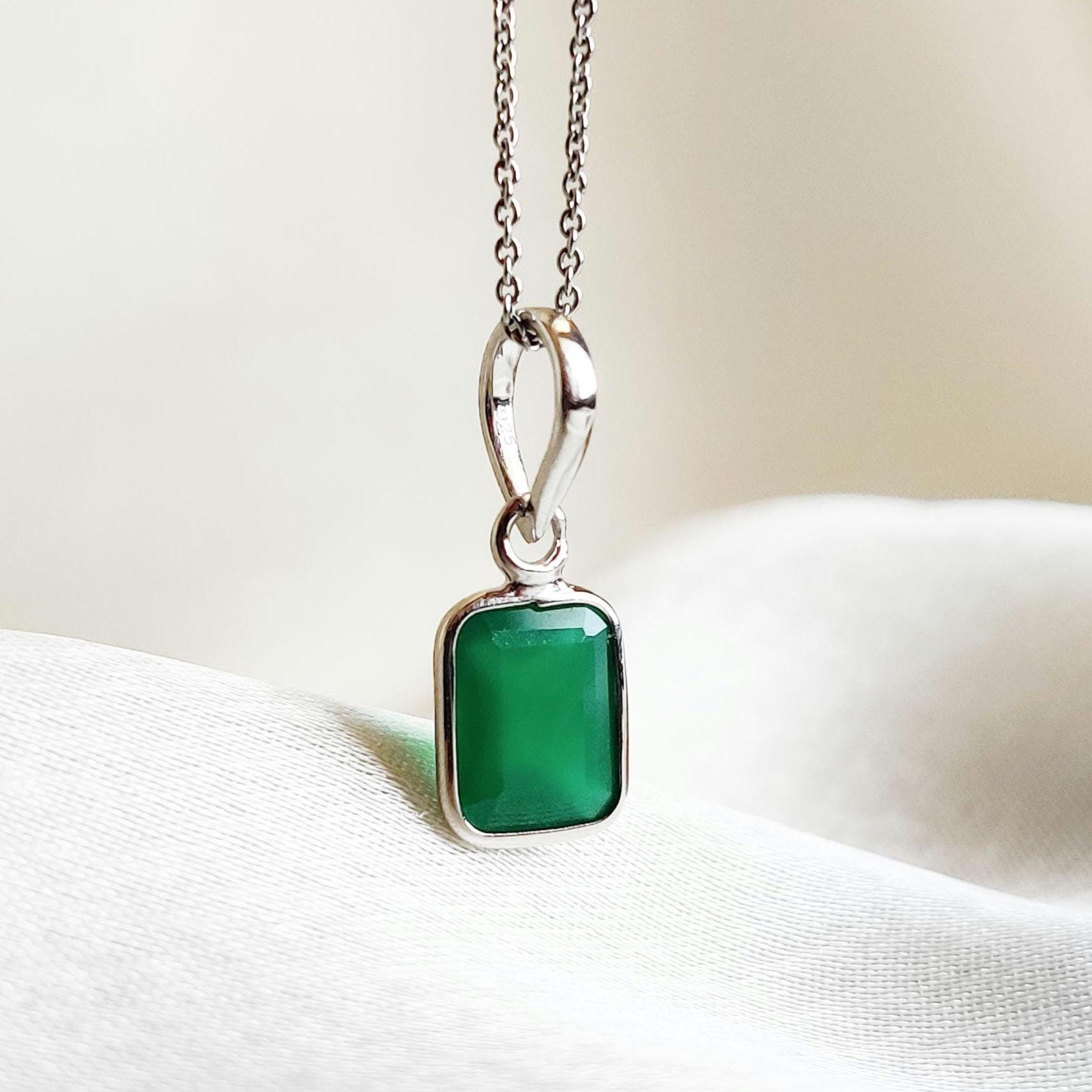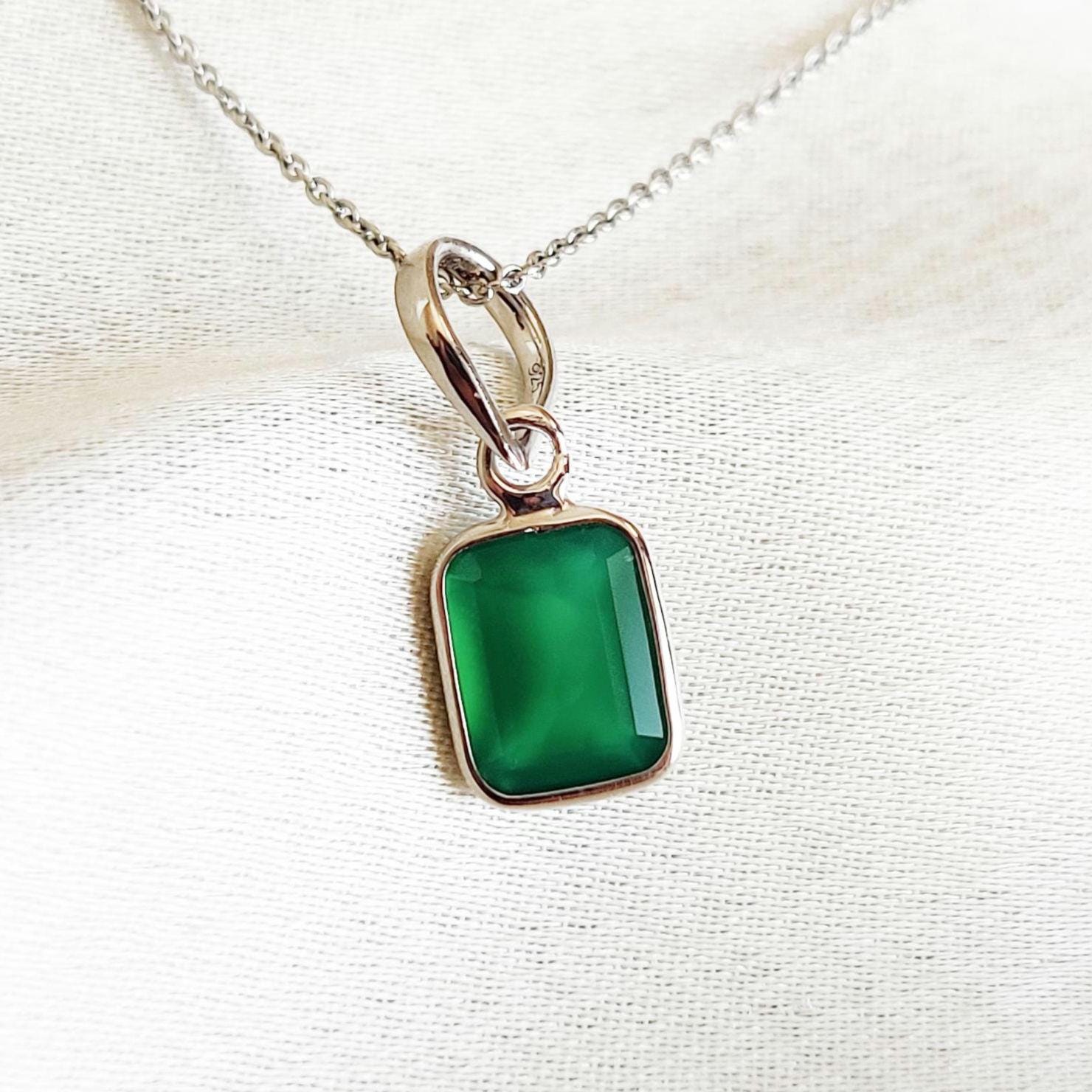Be the first to review “Emerald Cut Natural Green Onyx Pendant, May Birthstone Pendant Set in 14K White Gold”