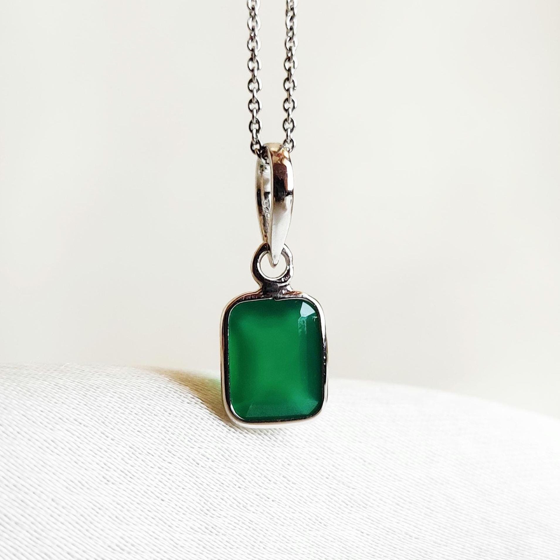 Emerald Cut Natural Green Onyx Pendant, May Birthstone Pendant Set in 14K White Gold
