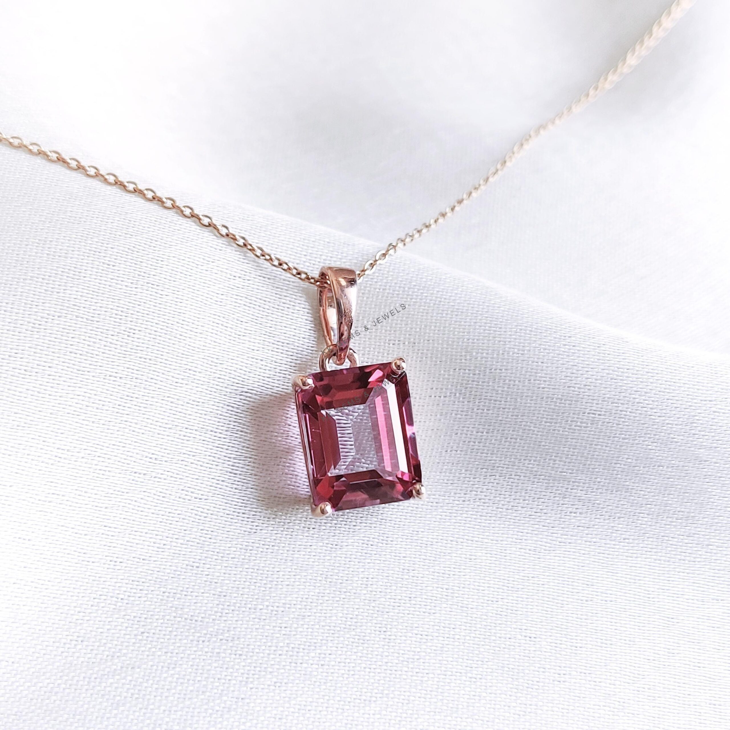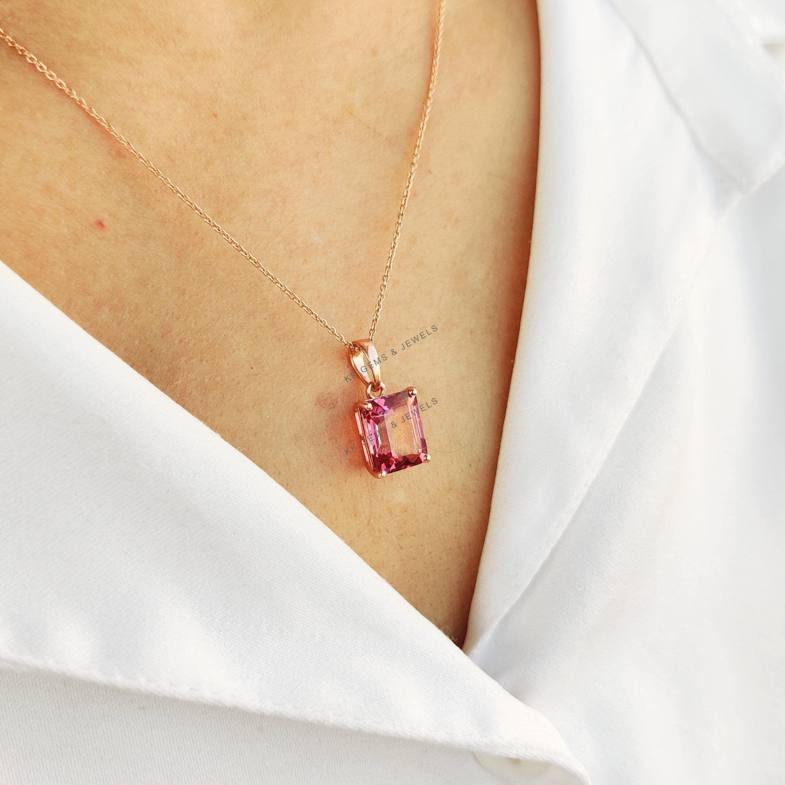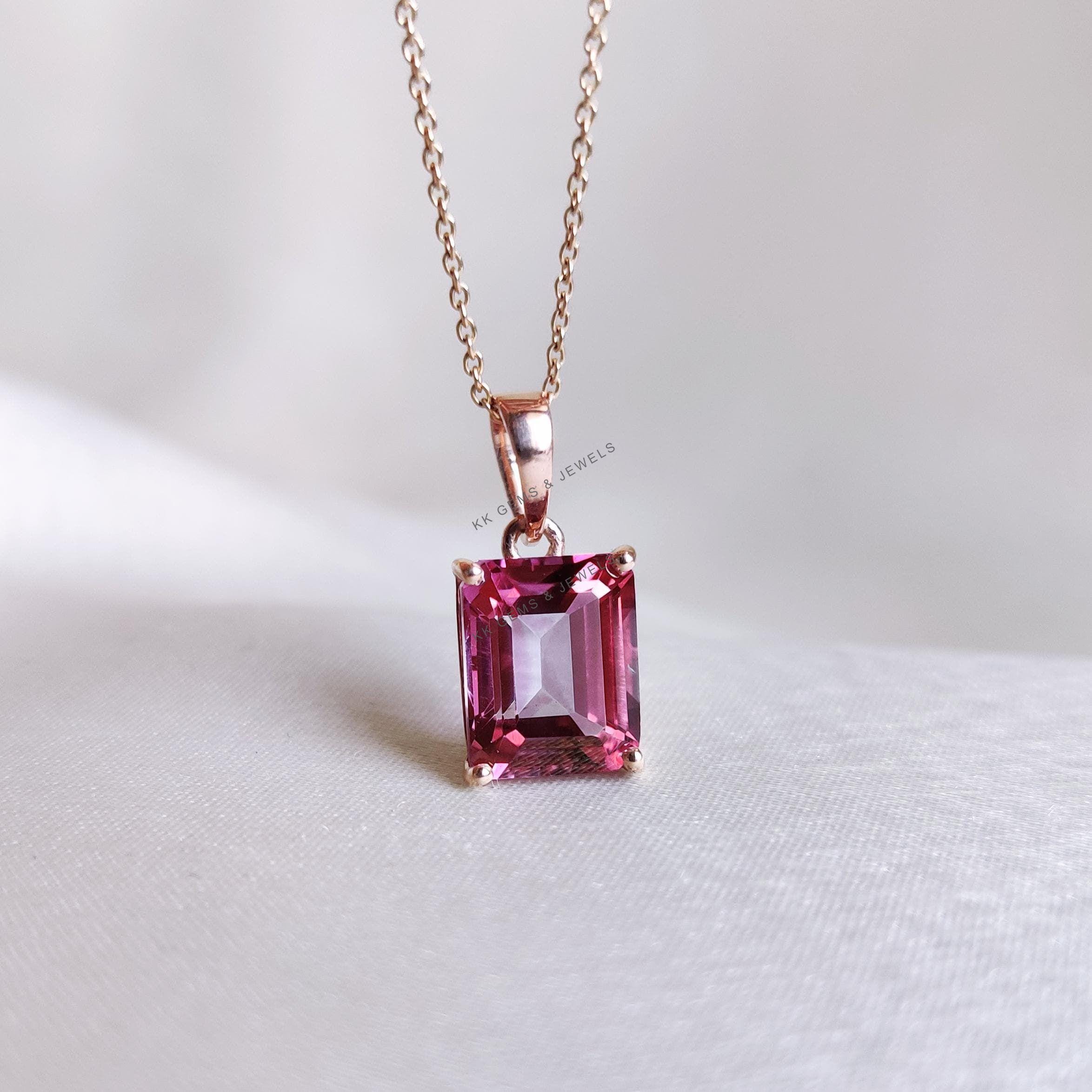 Be the first to review “Emerald Cut, Natural Pink Topaz Birthstone Pendant, Set in 14K Solid Gold”