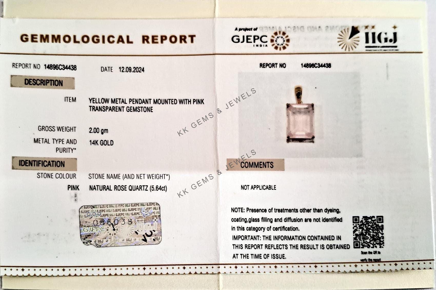 This stunning pendant is set in 14K Solid Yellow Gold with Natural Rose Quartz with utmost precision. It is an unique gemstone pendant for nearly every occasion and is completely hassle-free jewelry.
