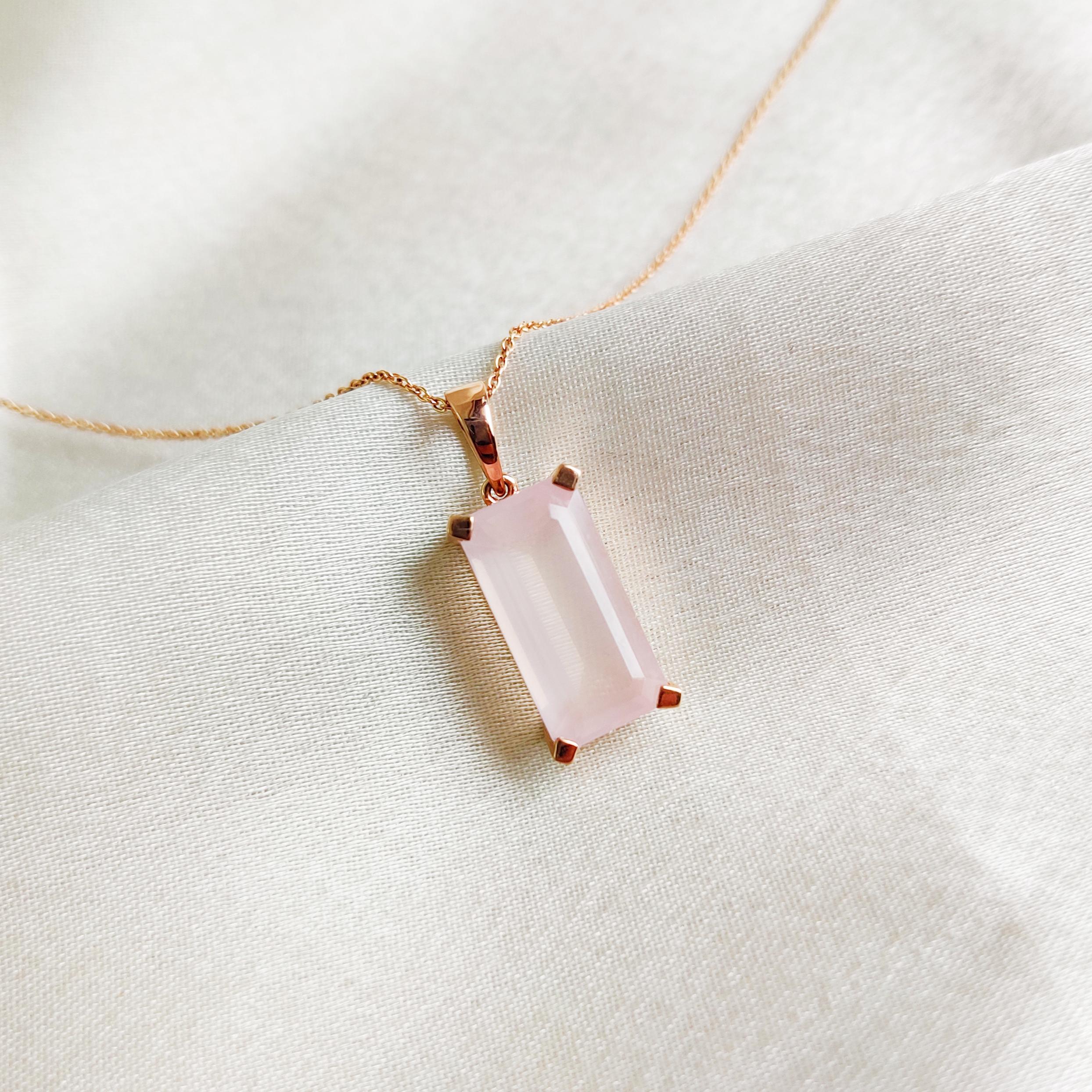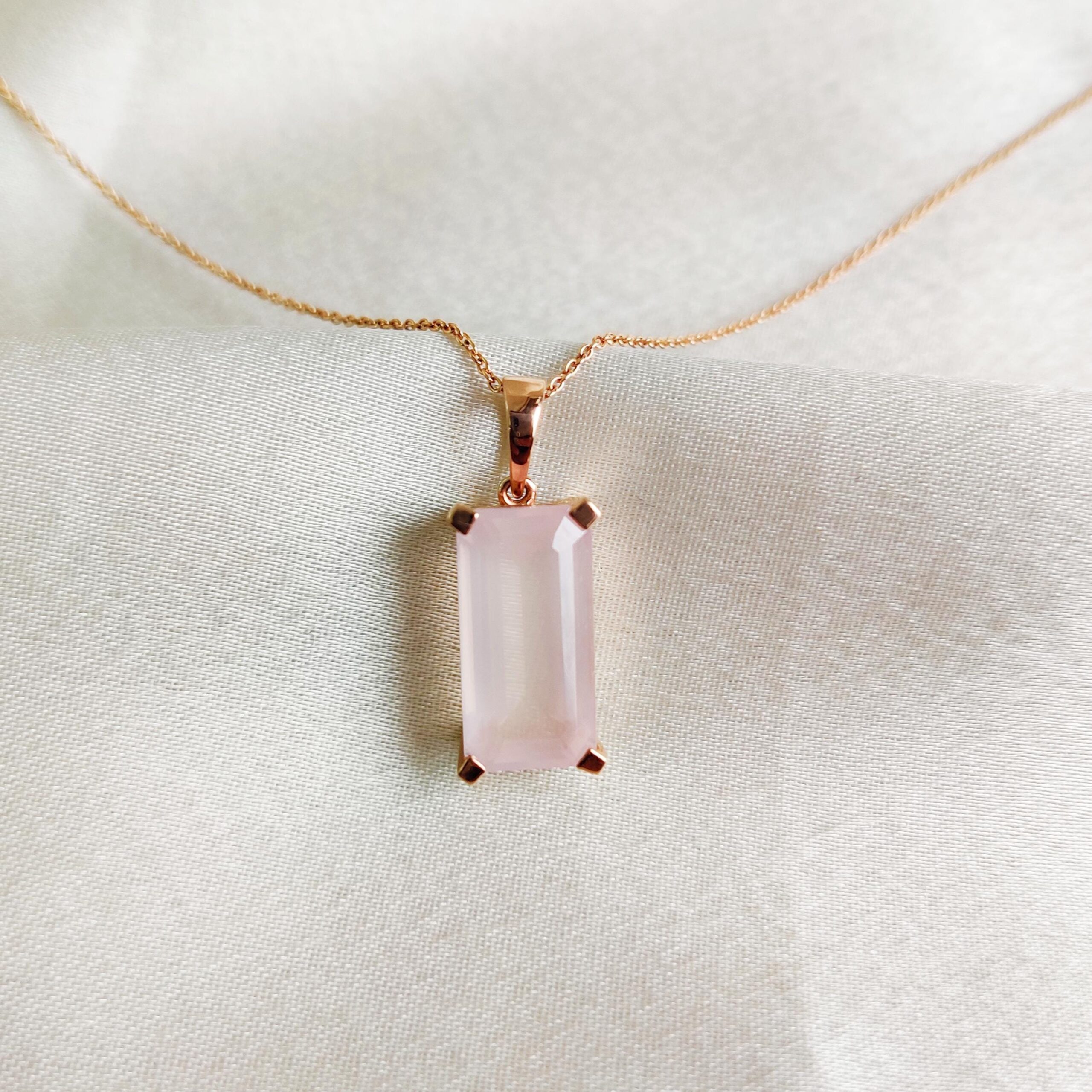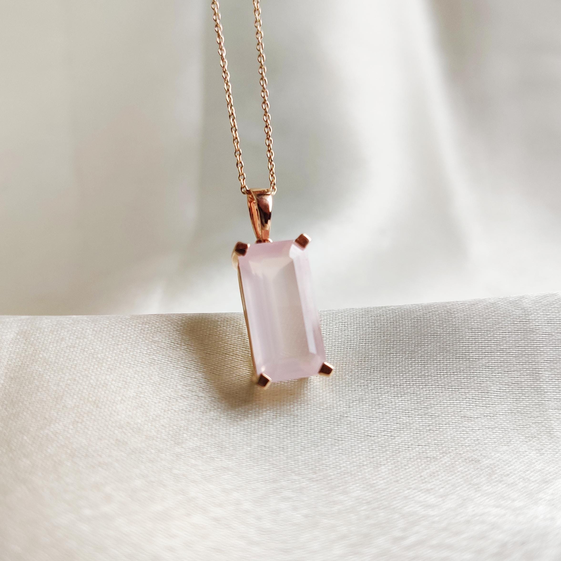 Be the first to review “Emerald Cut Natural Rose Quartz Birthstone Pendant Set in 14K Solid Gold”