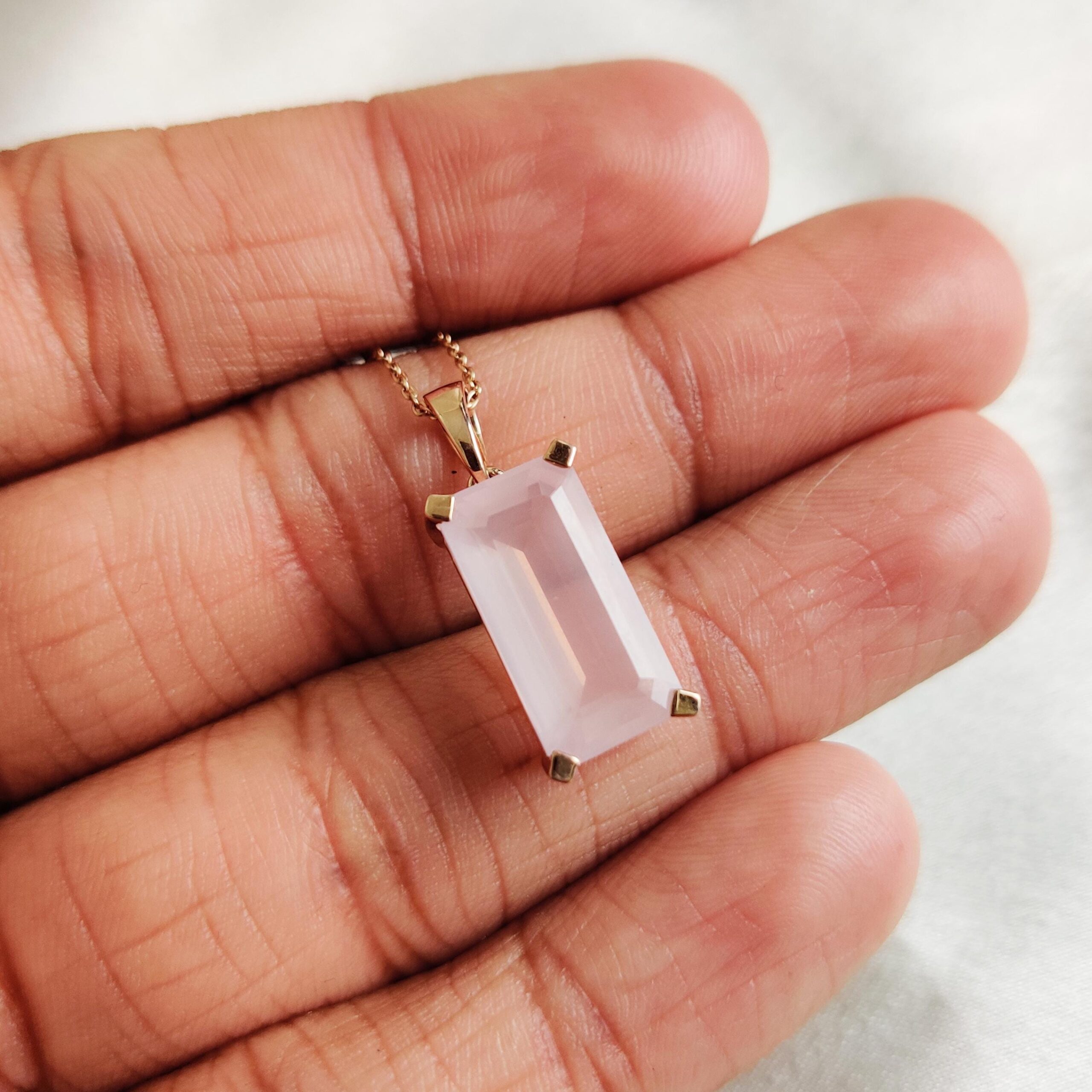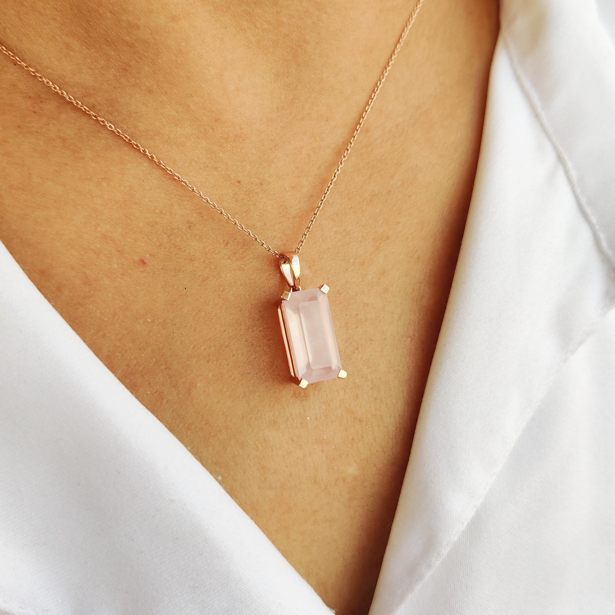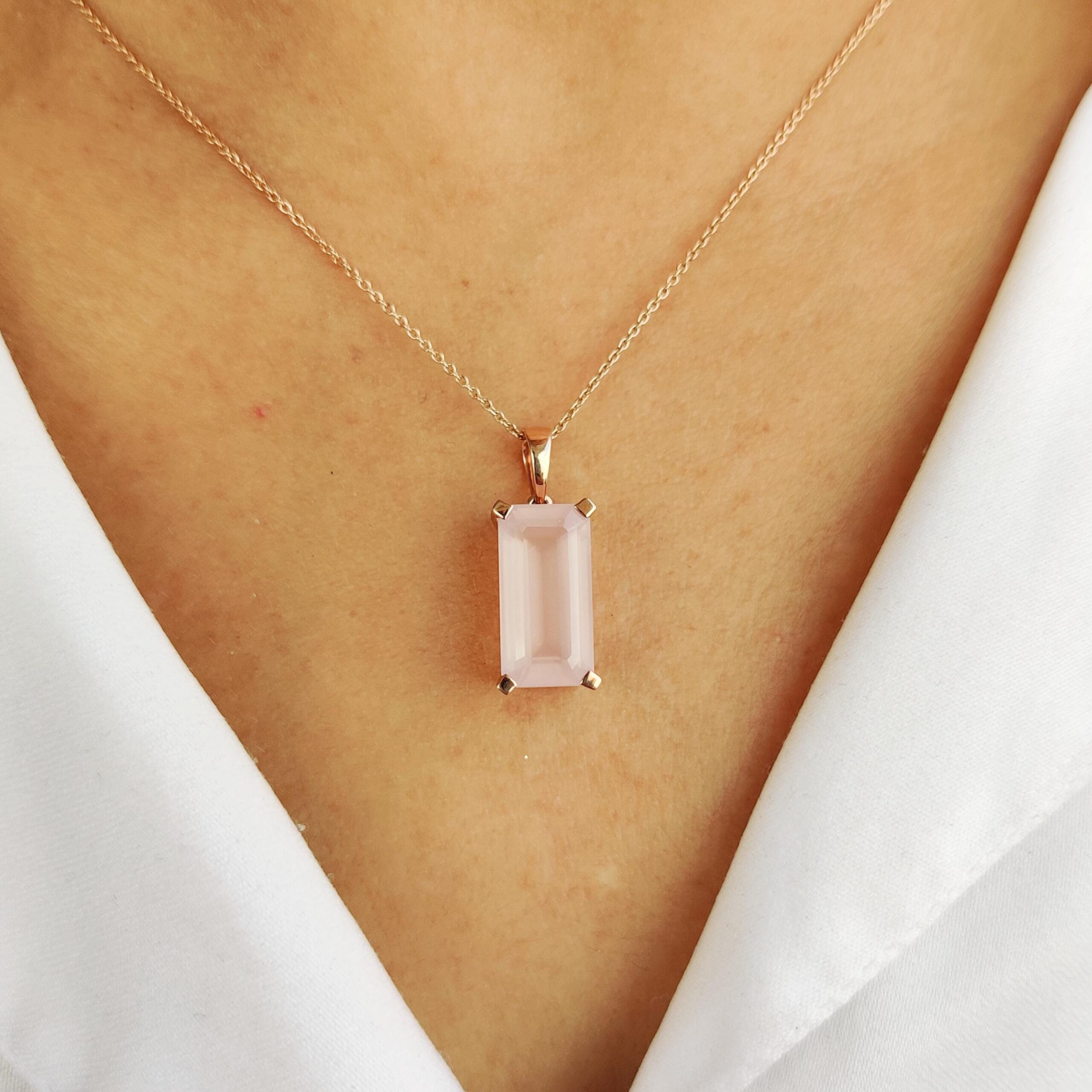 Be the first to review “Emerald Cut Natural Rose Quartz Birthstone Pendant Set in 14K Solid Gold”