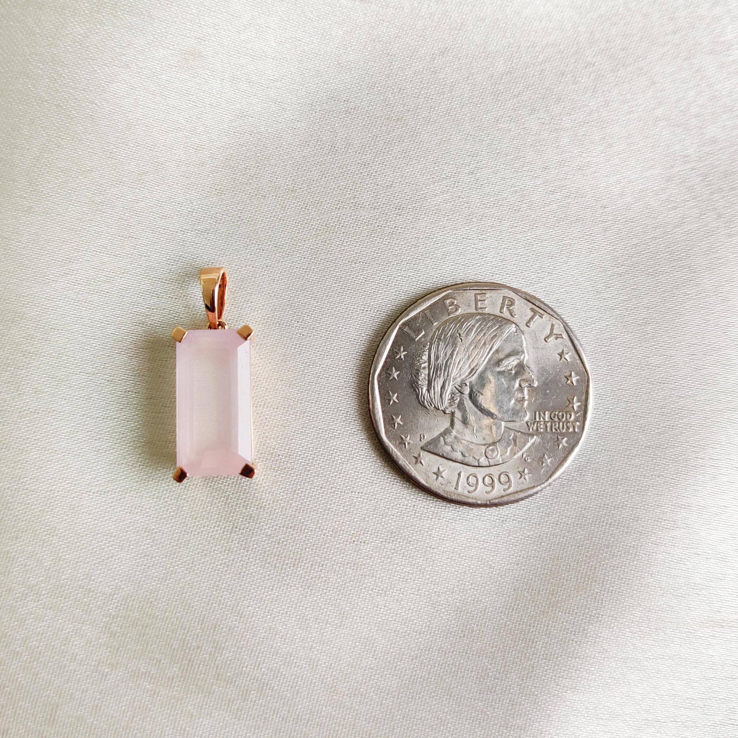 Emerald Cut Natural Rose Quartz Birthstone Pendant Set in 14K Solid Gold