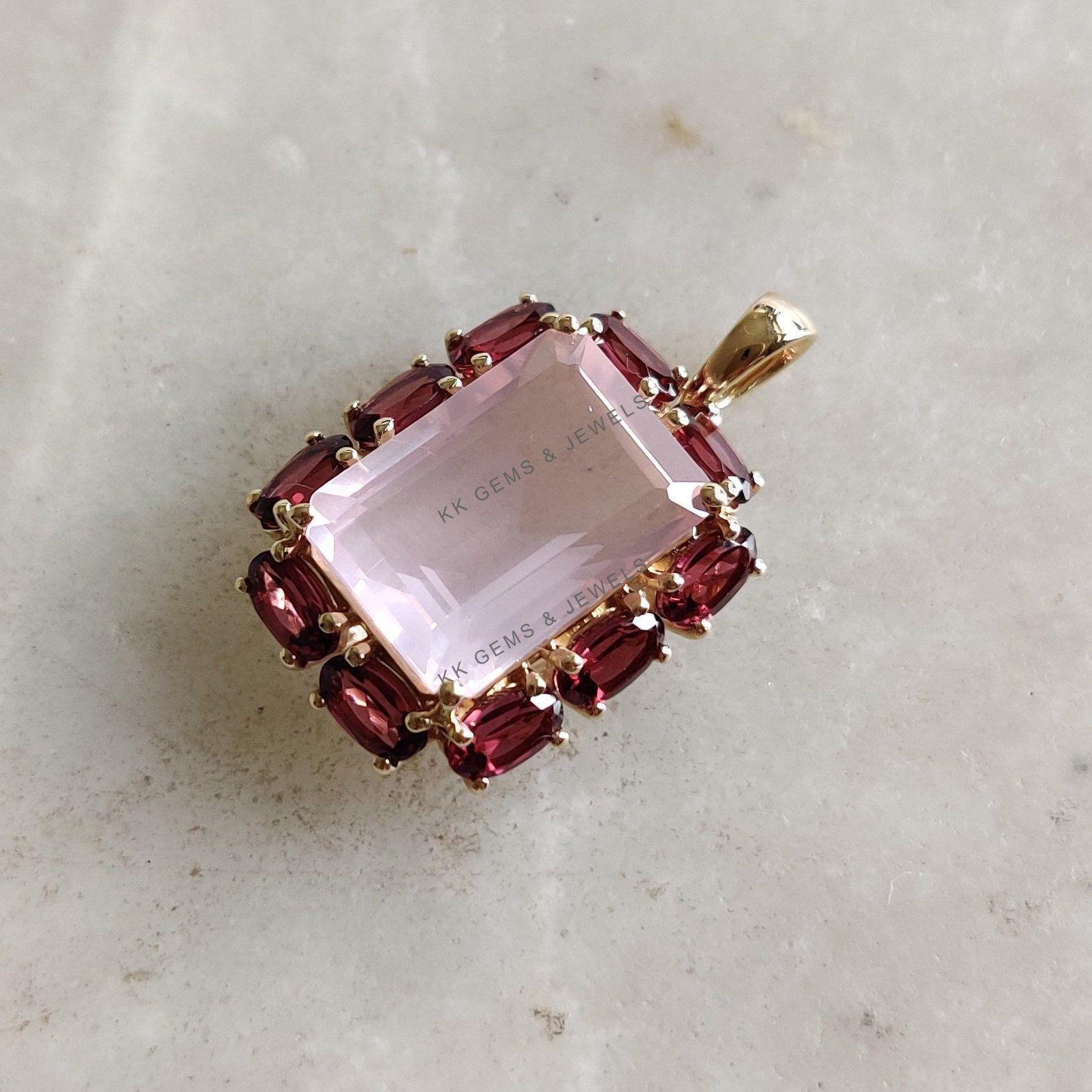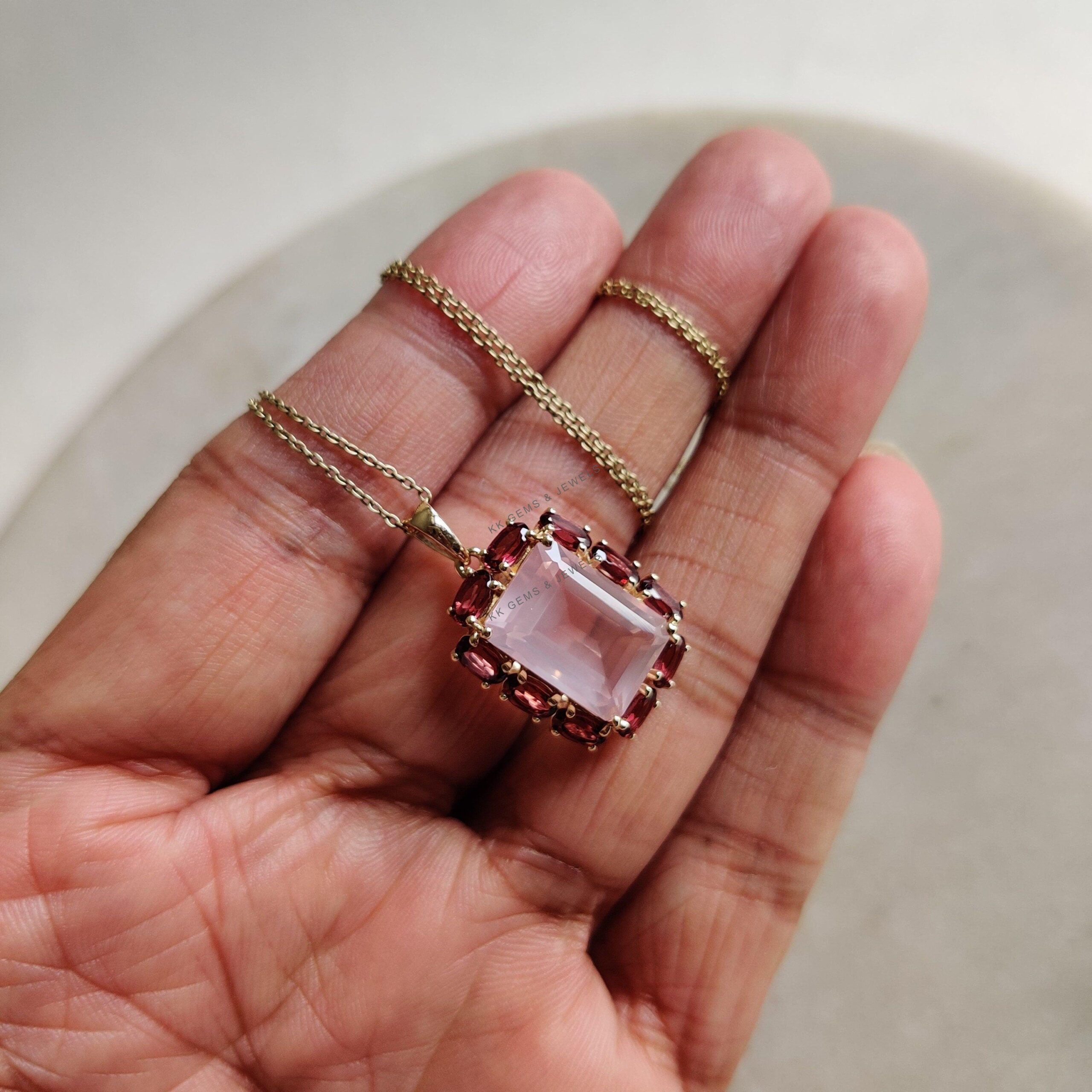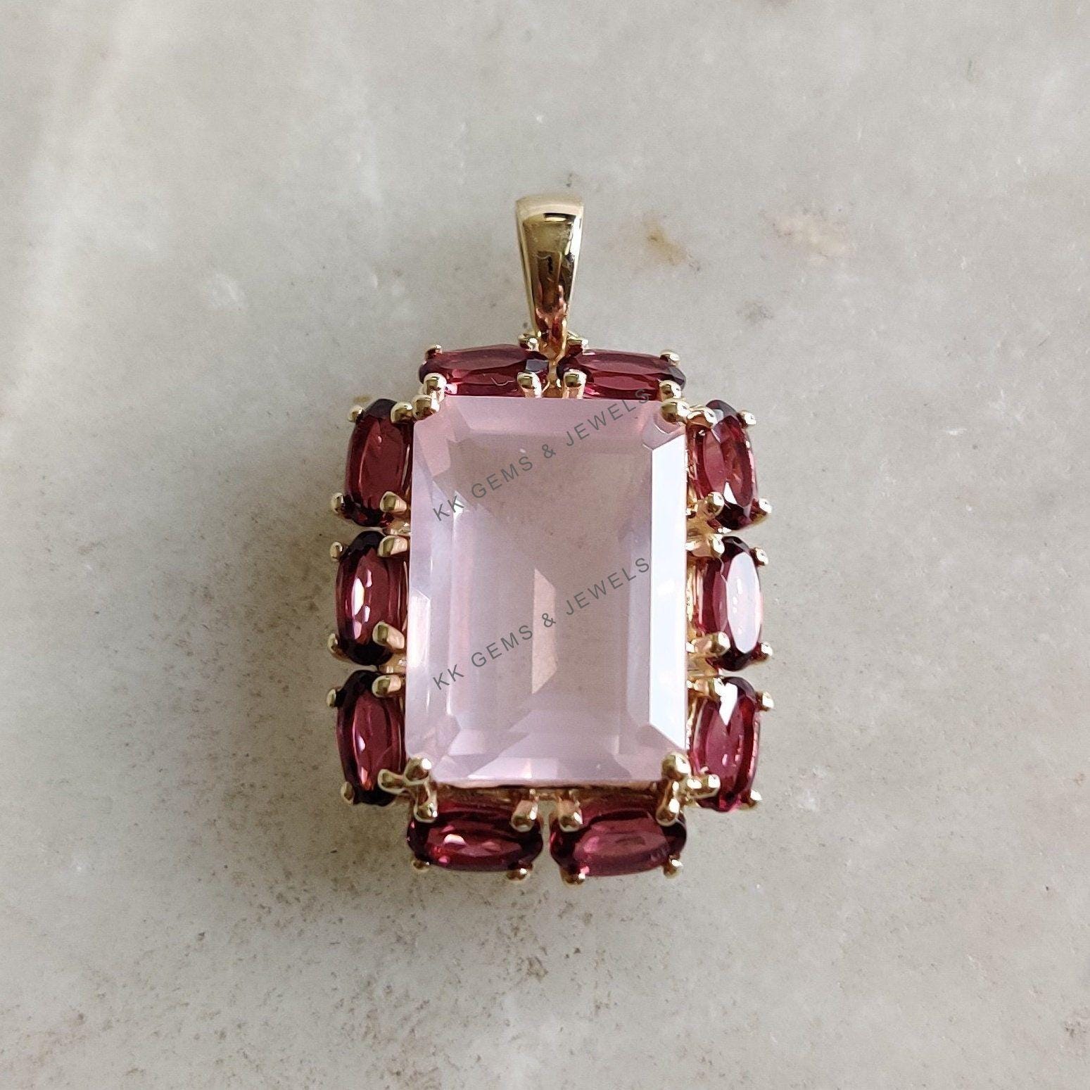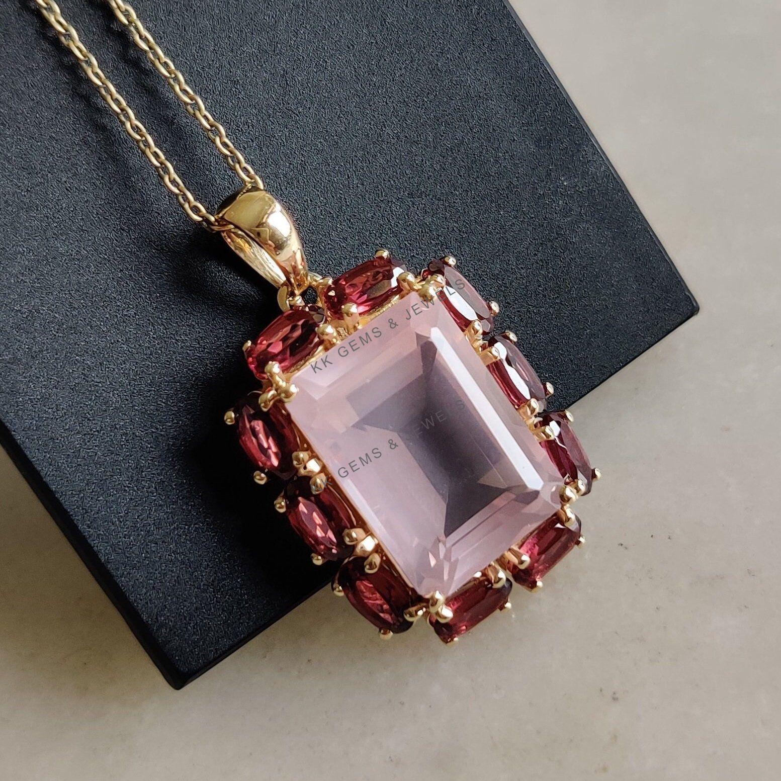 This stunning pendant is set in 14K Solid Yellow Gold with Natural Rose Quartz and Rhodolite Garnet with utmost precision. It is an unique gemstone pendant for nearly every occasion and is completely hassle-free jewelry. ✓ ABOUT GEMSTONE: Rose quartz…