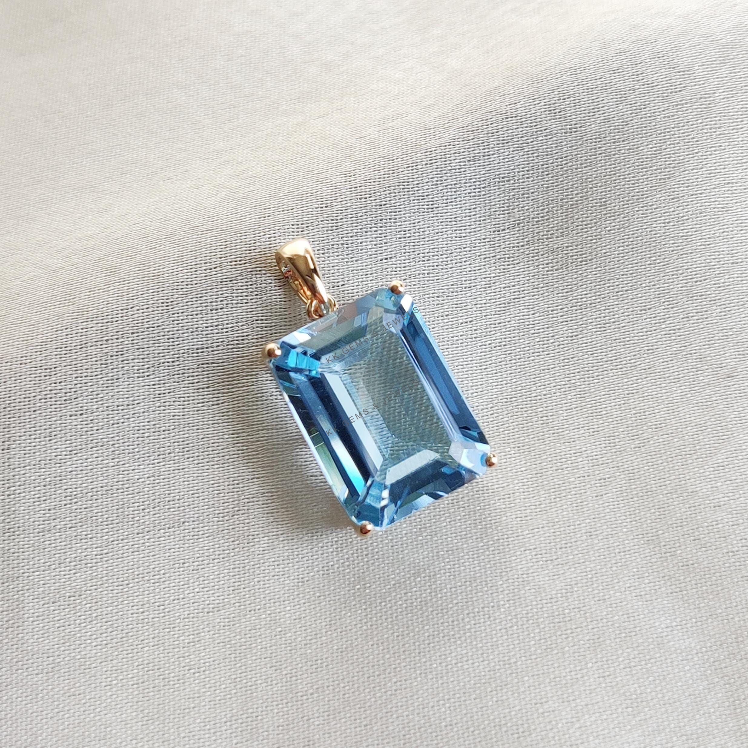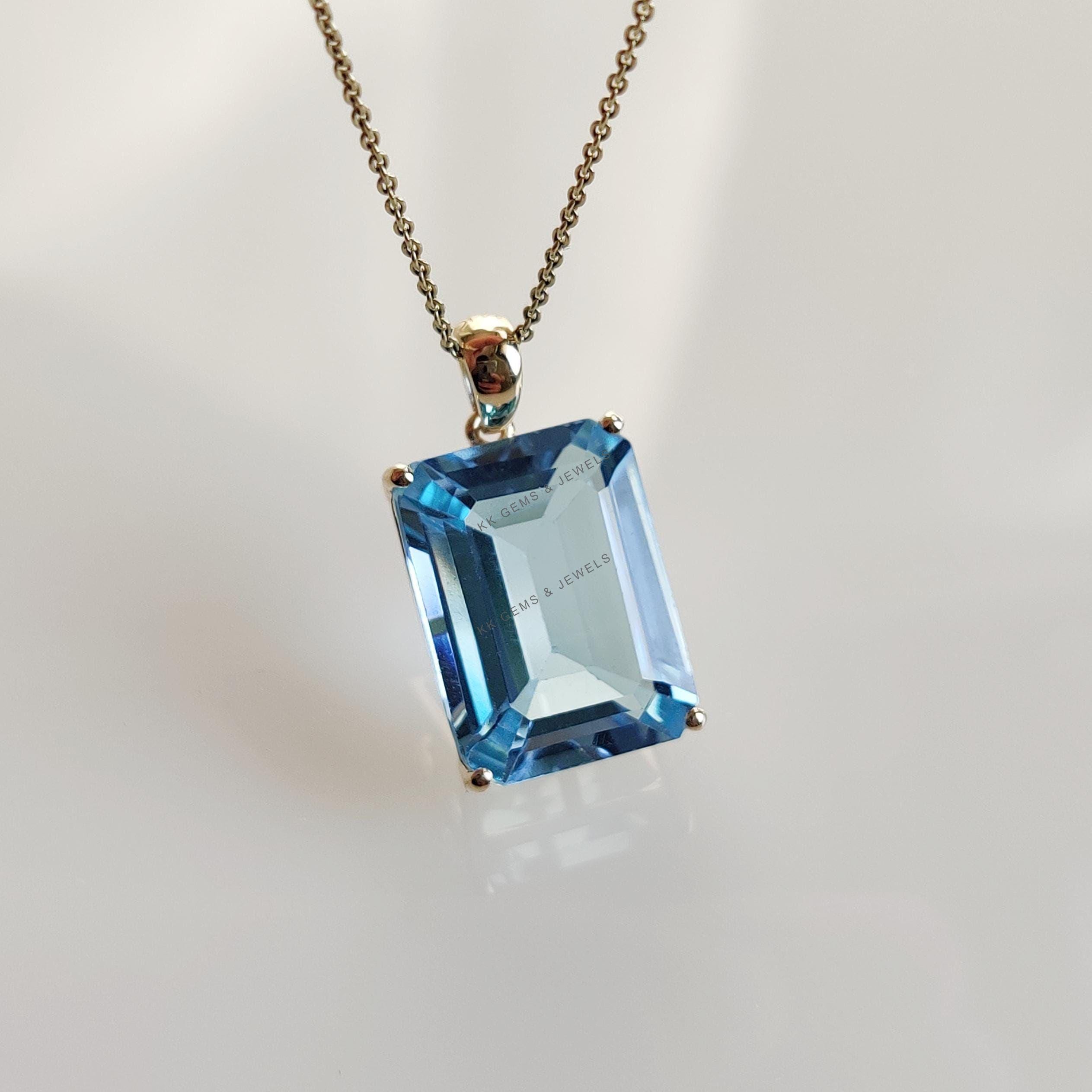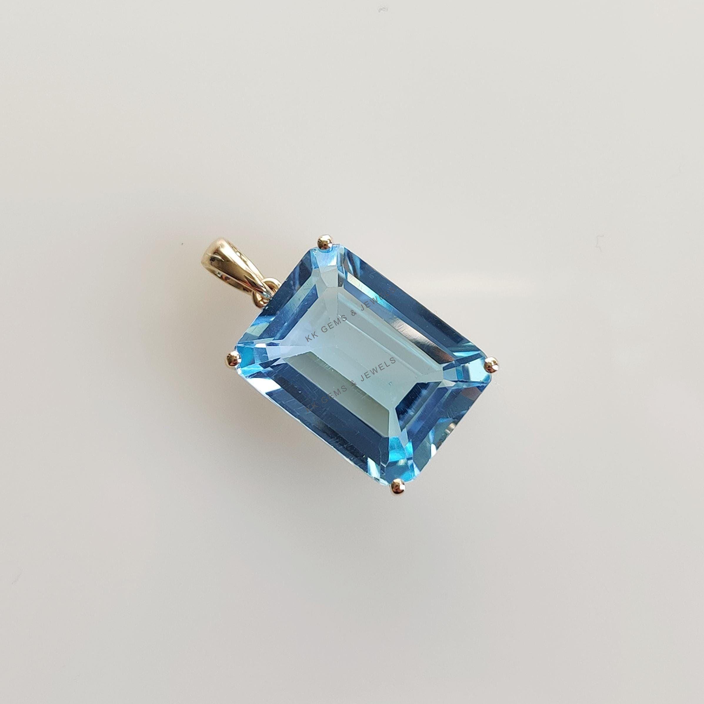 Be the first to review “Emerald Cut Natural Sky Blue Topaz Birthstone Pendant, Set in 14K Solid Gold”