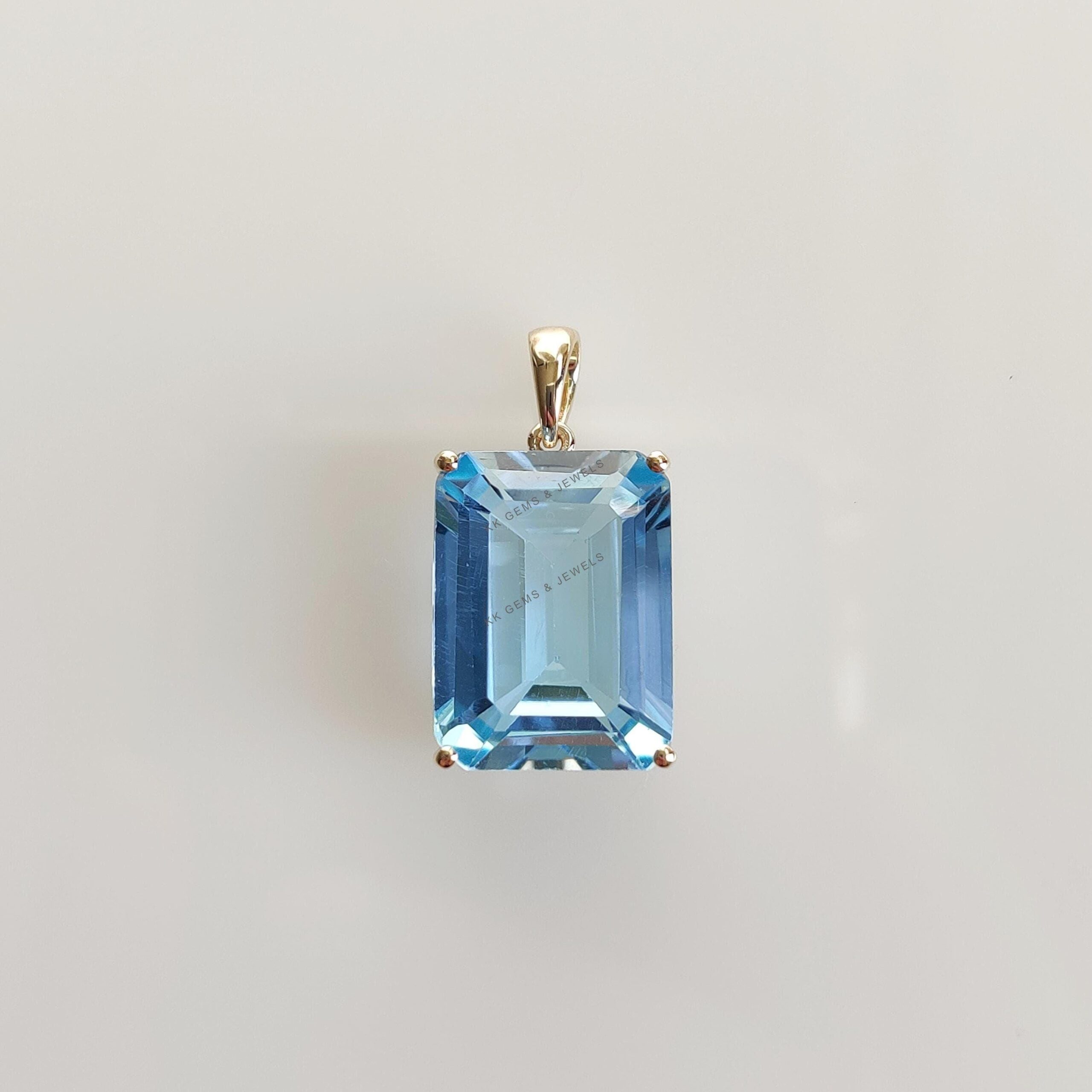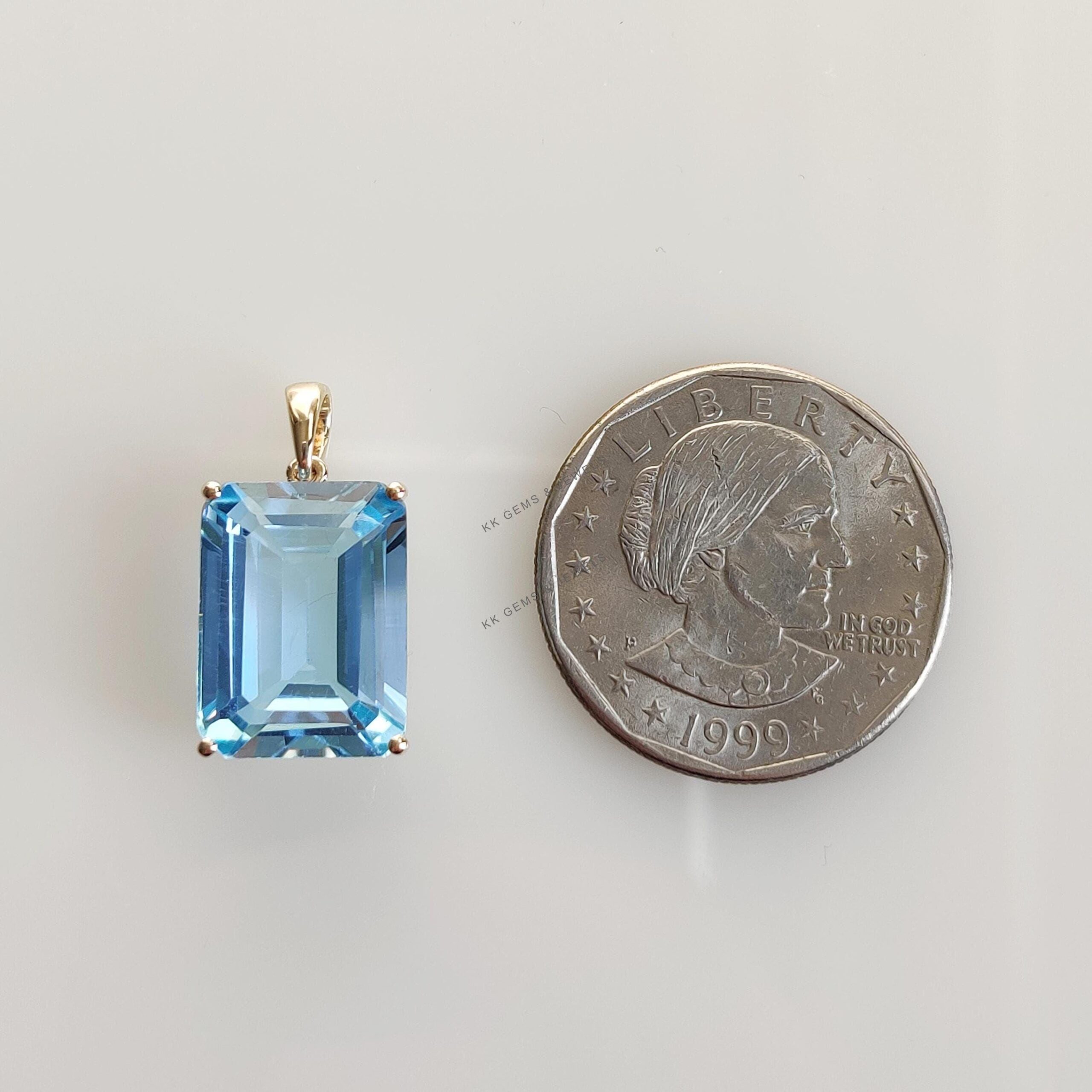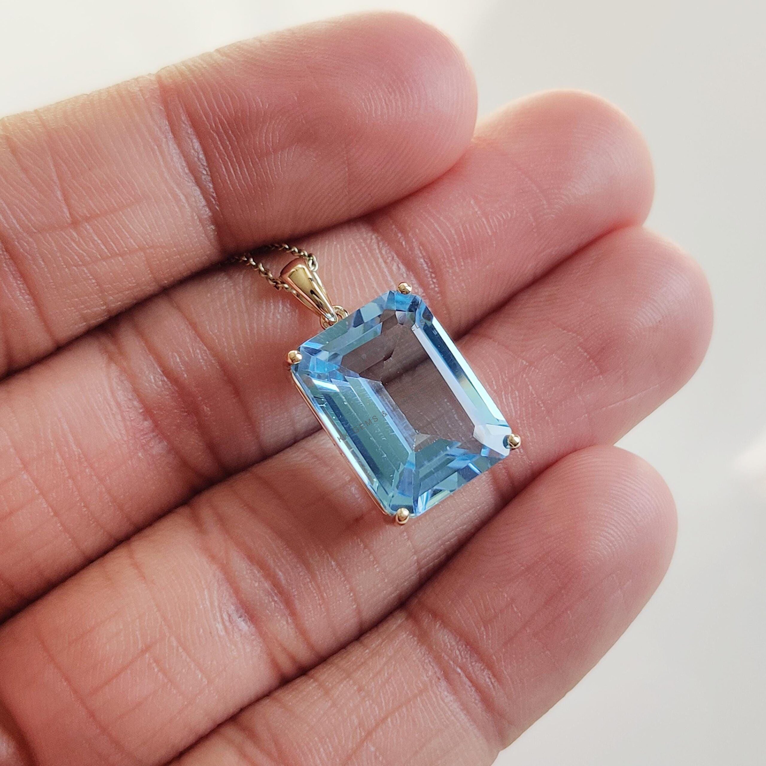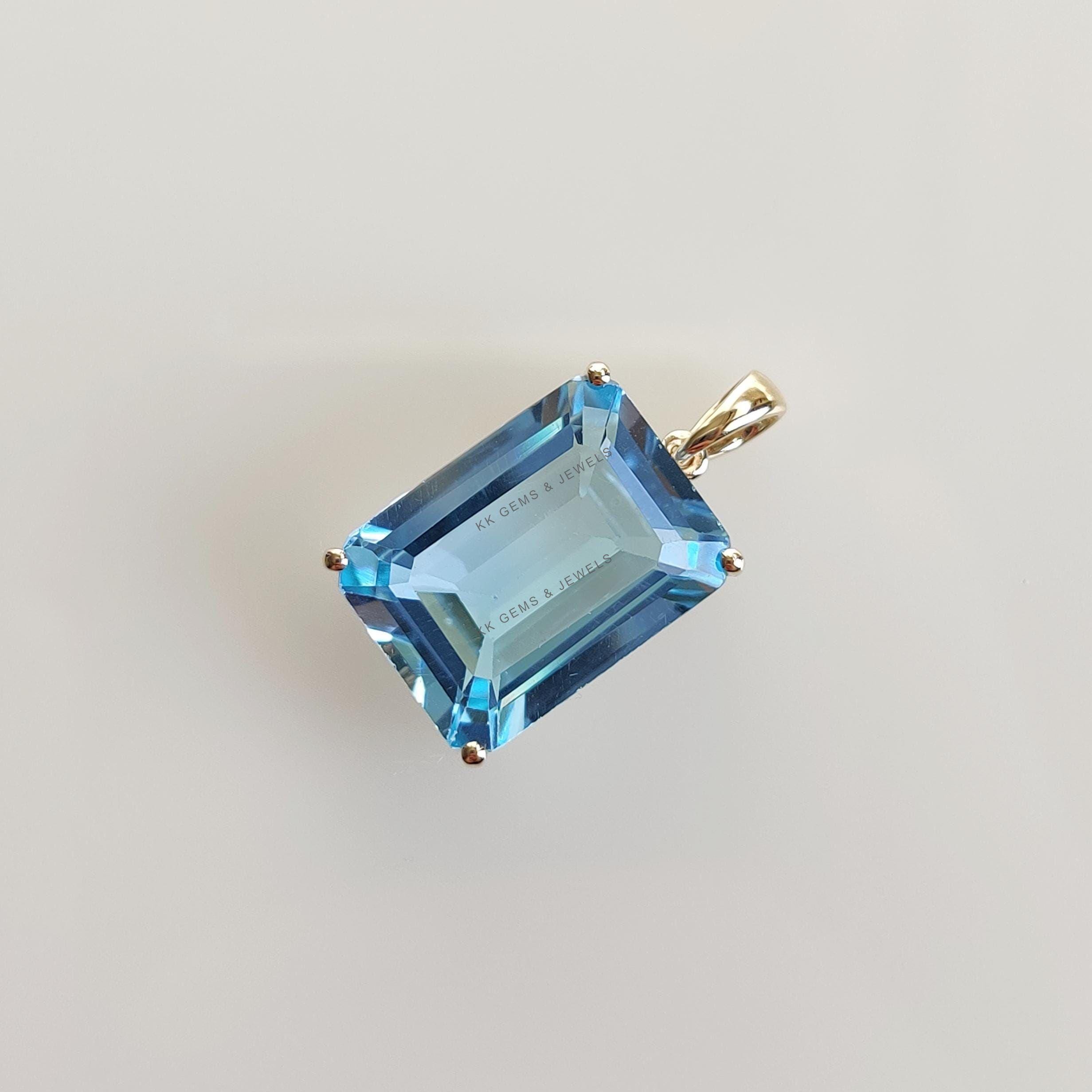 Be the first to review “Emerald Cut Natural Sky Blue Topaz Birthstone Pendant, Set in 14K Solid Gold”