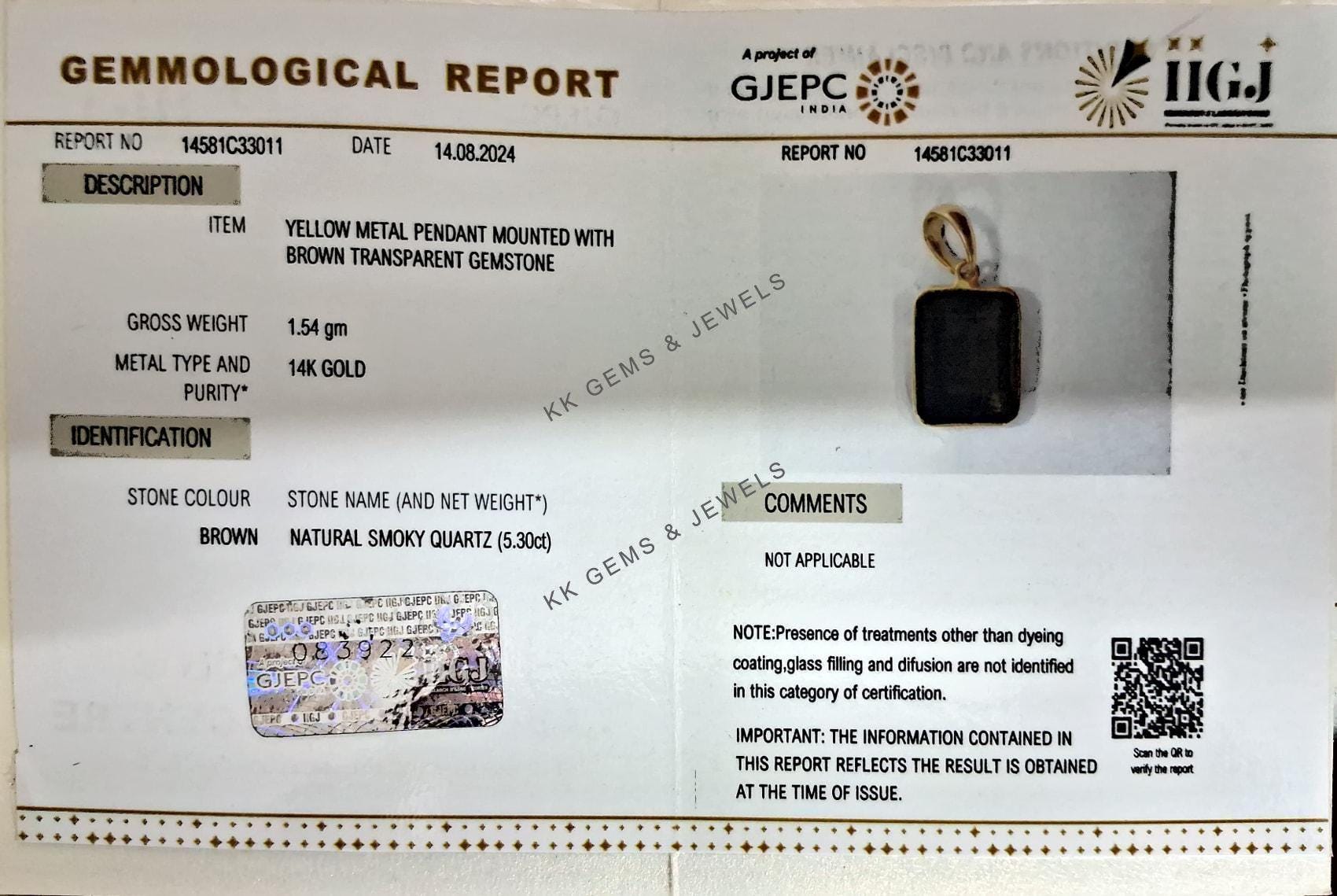 This stunning pendant is set in 14K Solid Yellow Gold with Natural Smoky Quartz with utmost precision. It is an unique gemstone pendant for nearly every occasion and is completely hassle-free jewelry.