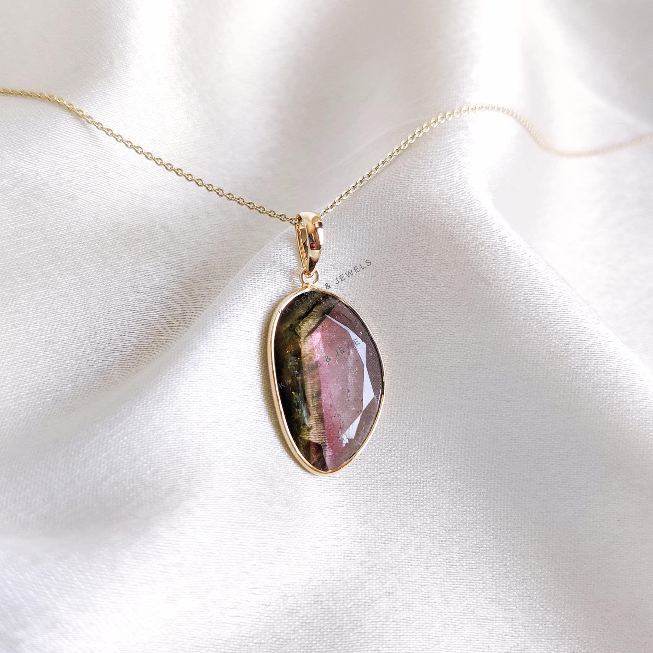 Be the first to review “Fancy Cut Natural Watermelon Tourmaline Birthstone Pendant Set in 14K Solid Gold”