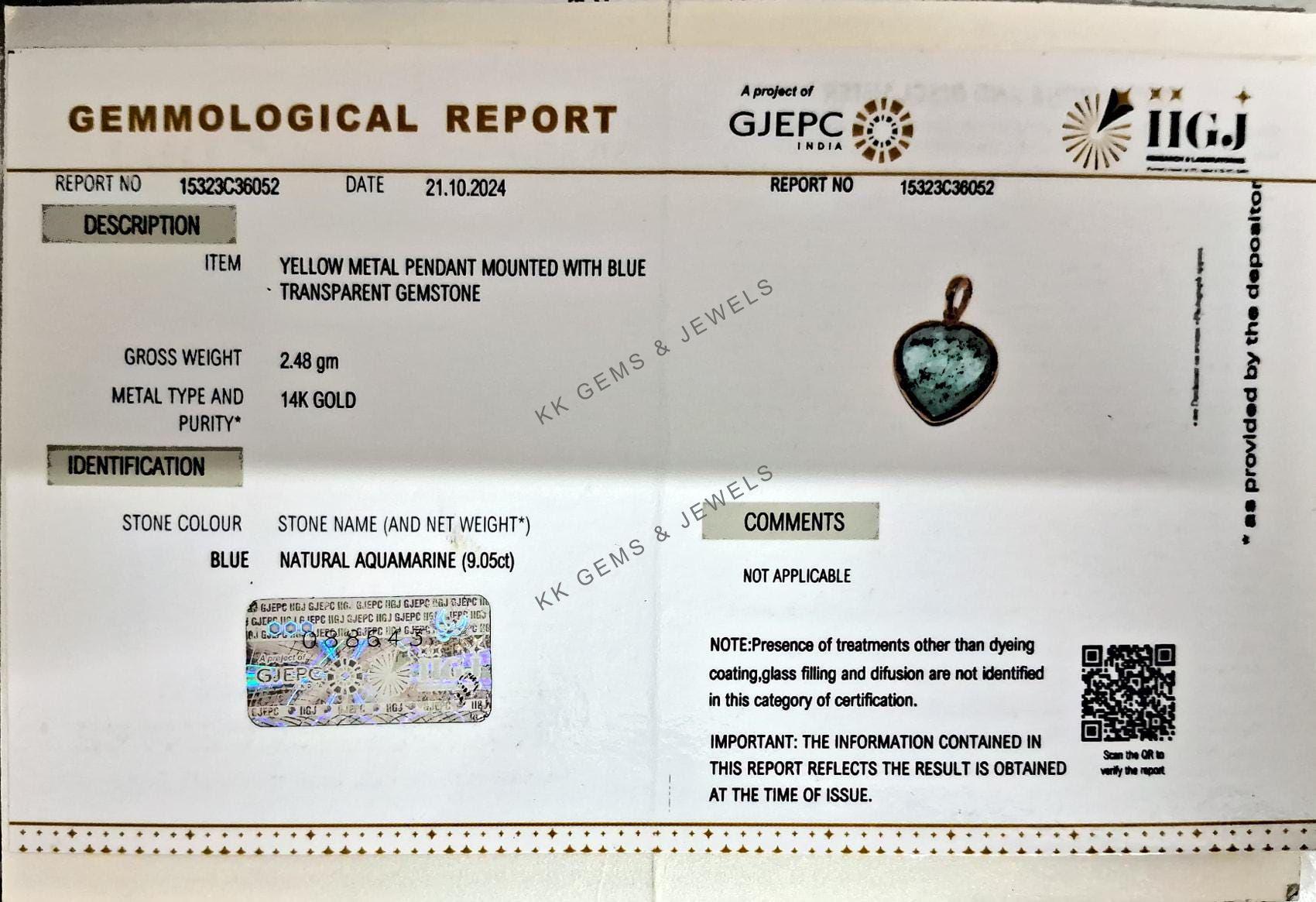 • Total Weight of the Pendant: 2.484 gram