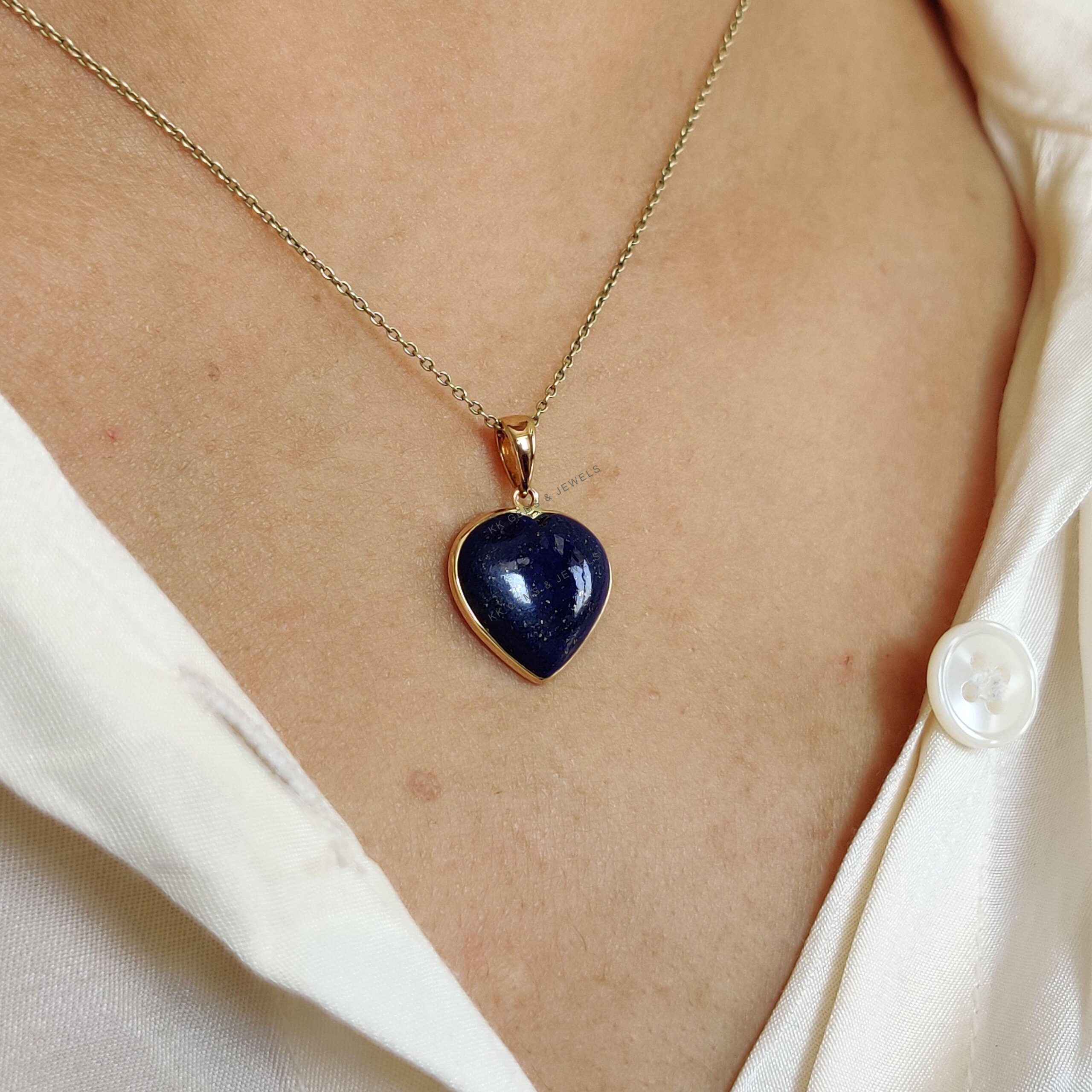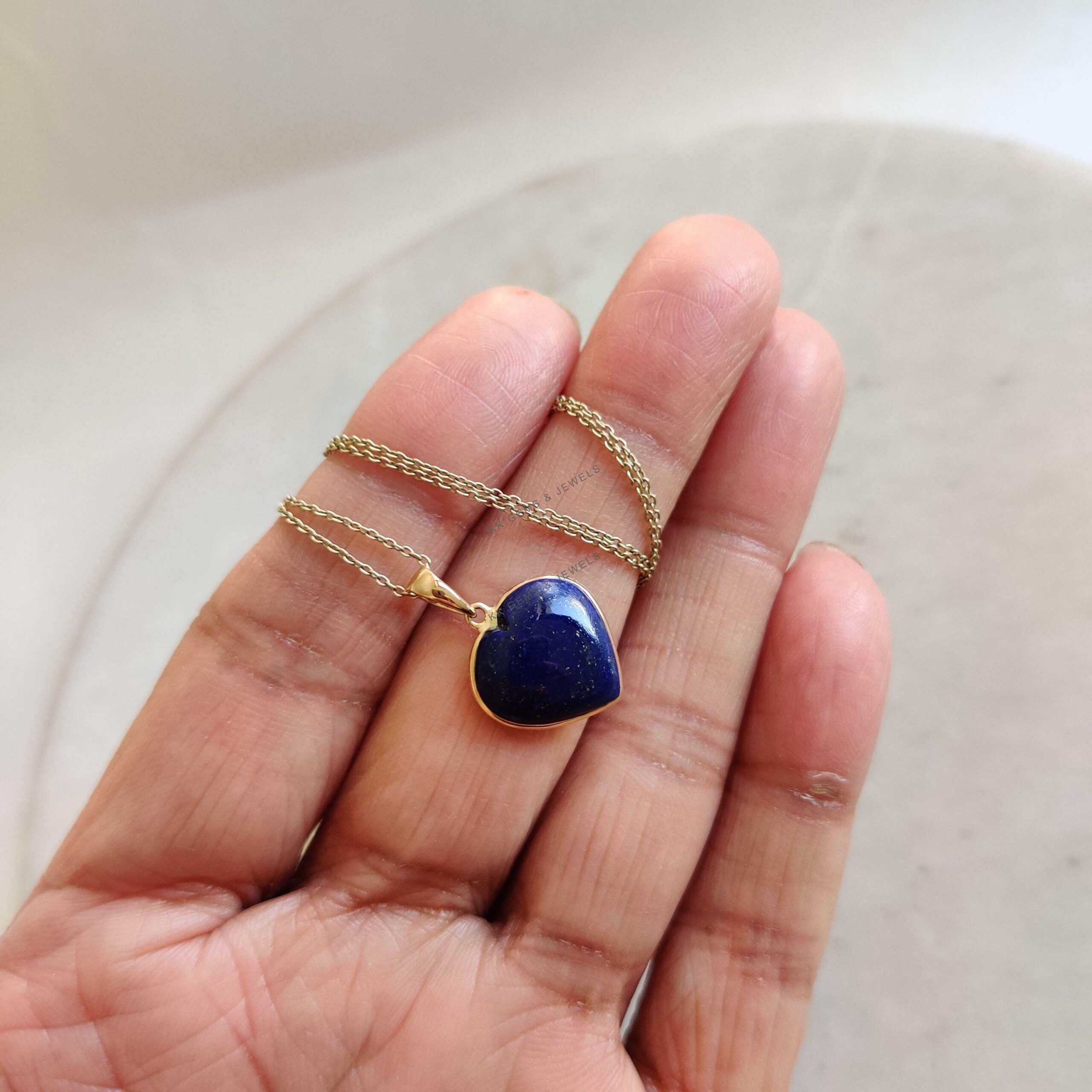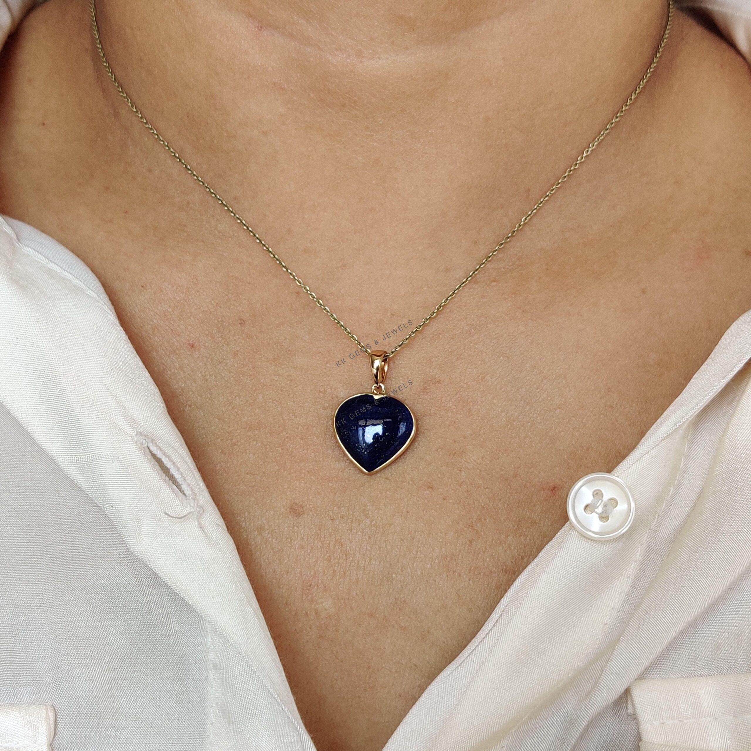 This stunning Heart pendant is set in 14K Solid Yellow Gold with Natural Lapis Lazuli with utmost precision. It is an unique gemstone pendant for nearly every occasion and is completely hassle-free jewelry.