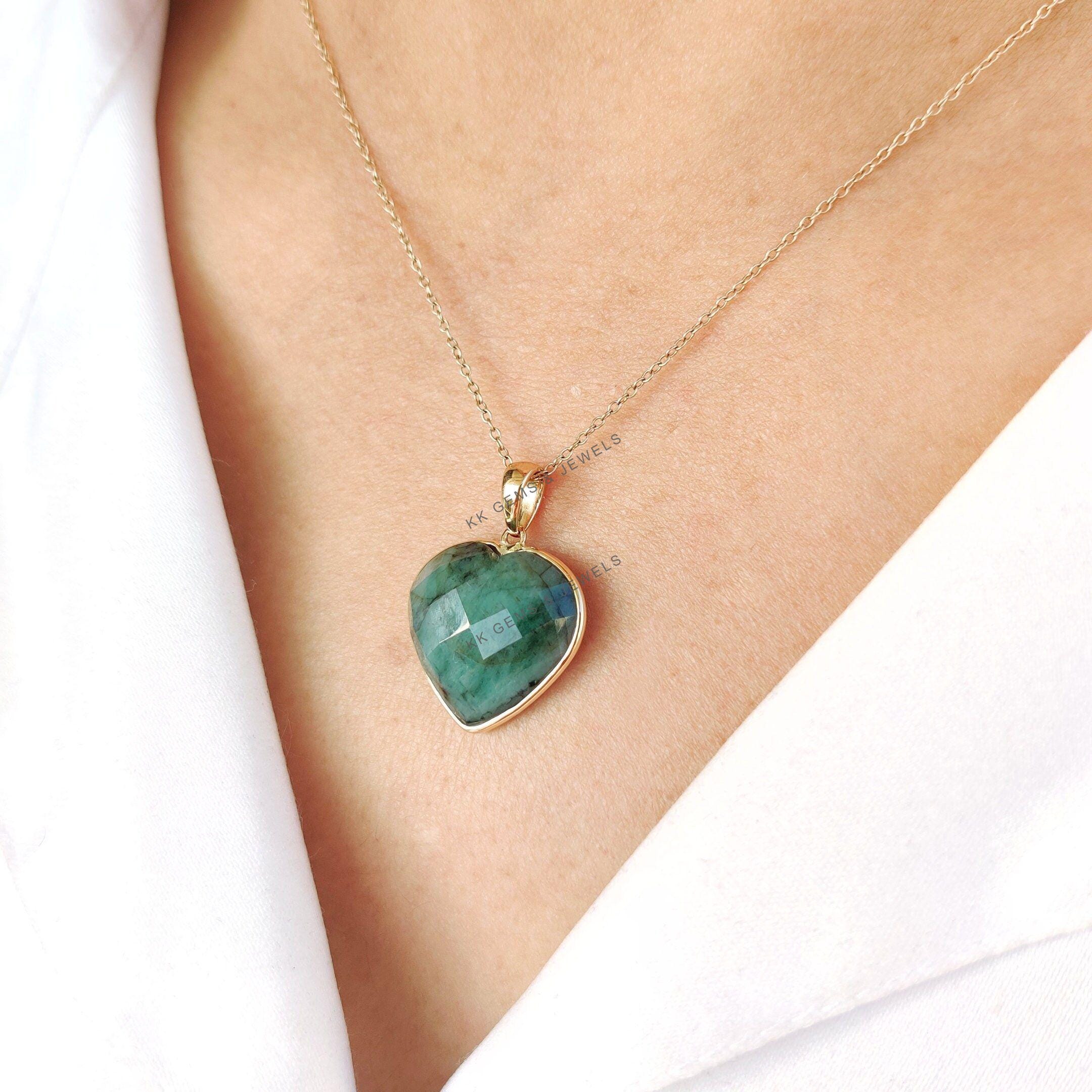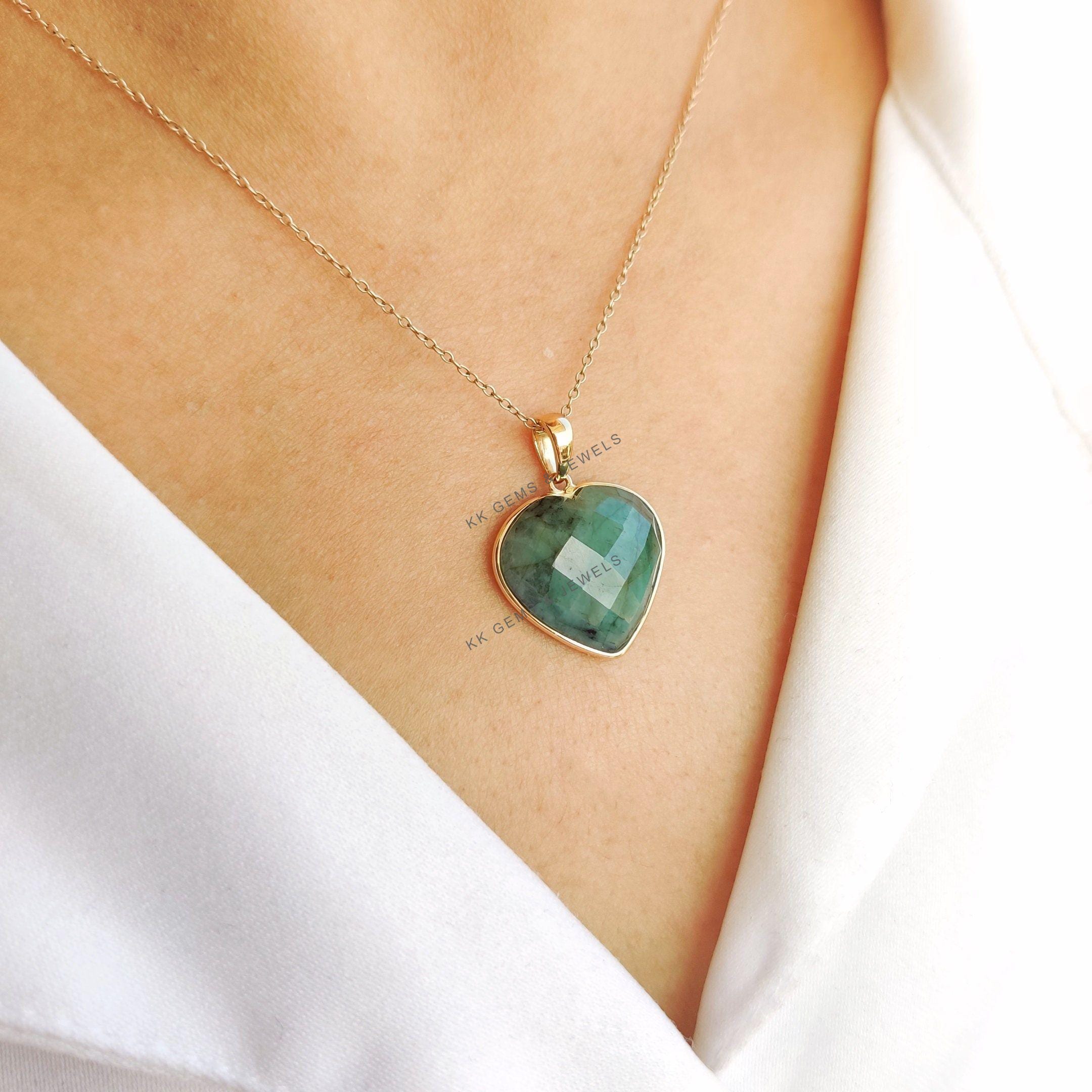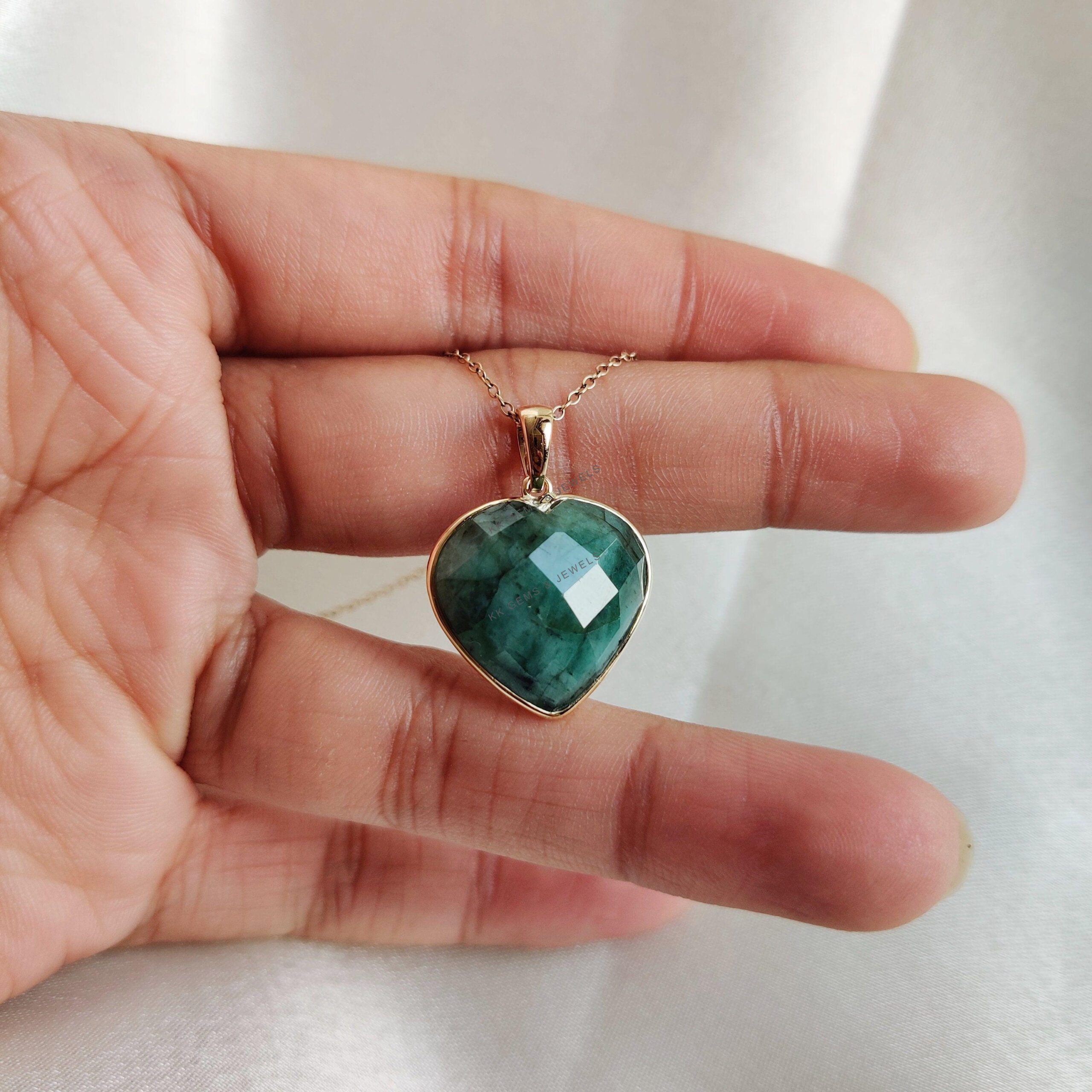 This stunning heart pendant is set in 14k Solid Yellow Gold with Natural Emerald with utmost precision. It is an unique gemstone pendant for nearly every occasion and is completely hassle-free jewelry.
