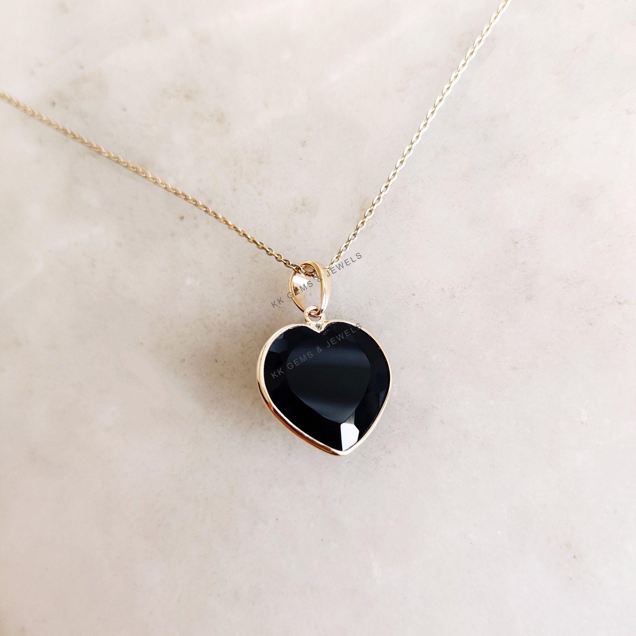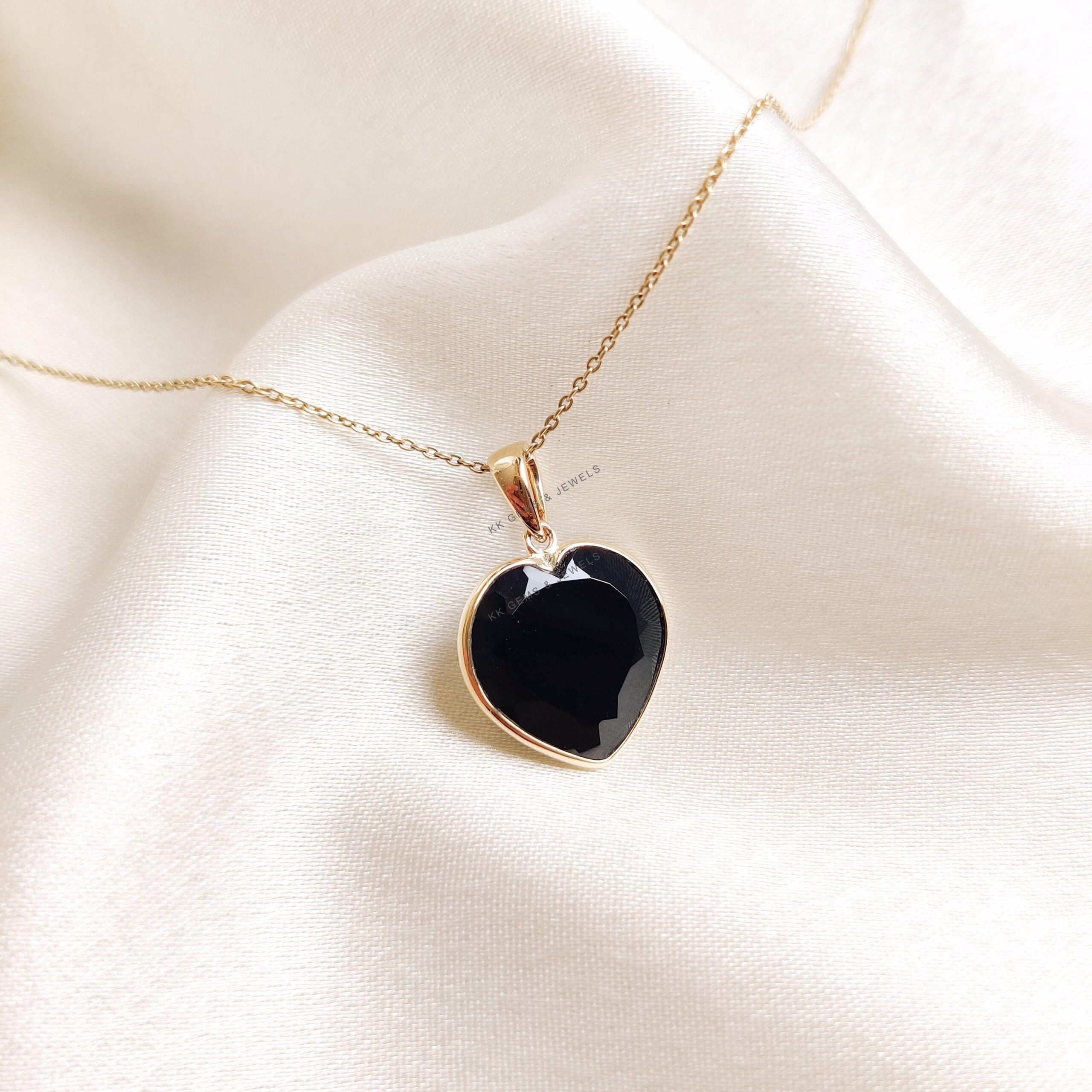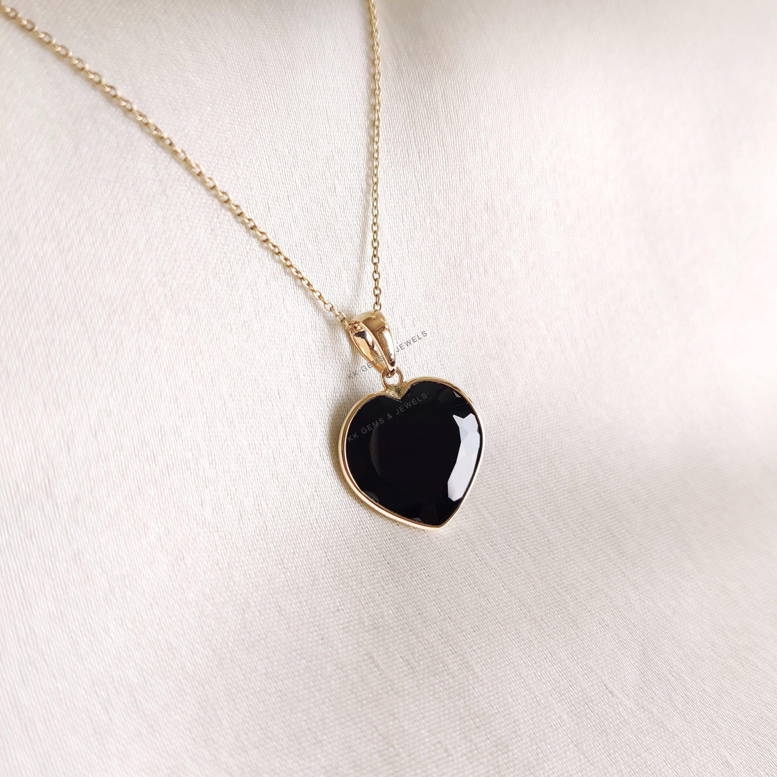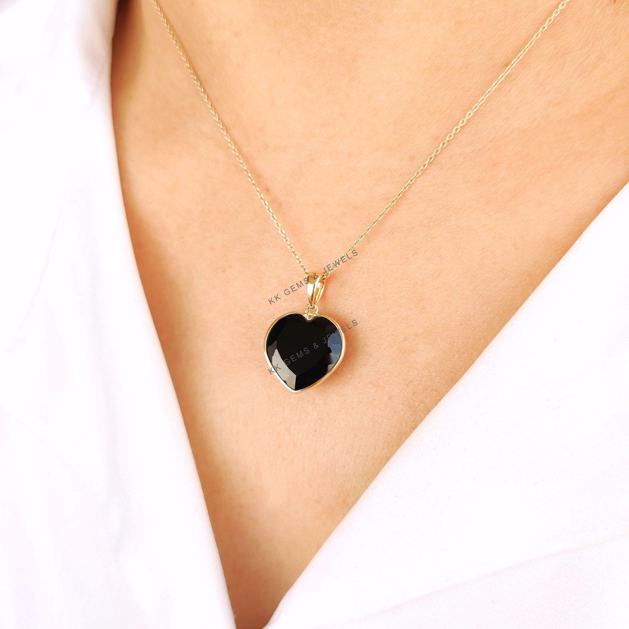This stunning heart pendant is set in 14K Solid Yellow Gold with Natural Black Onyx with utmost precision. It is an unique gemstone pendant for nearly every occasion and is completely hassle-free jewelry.