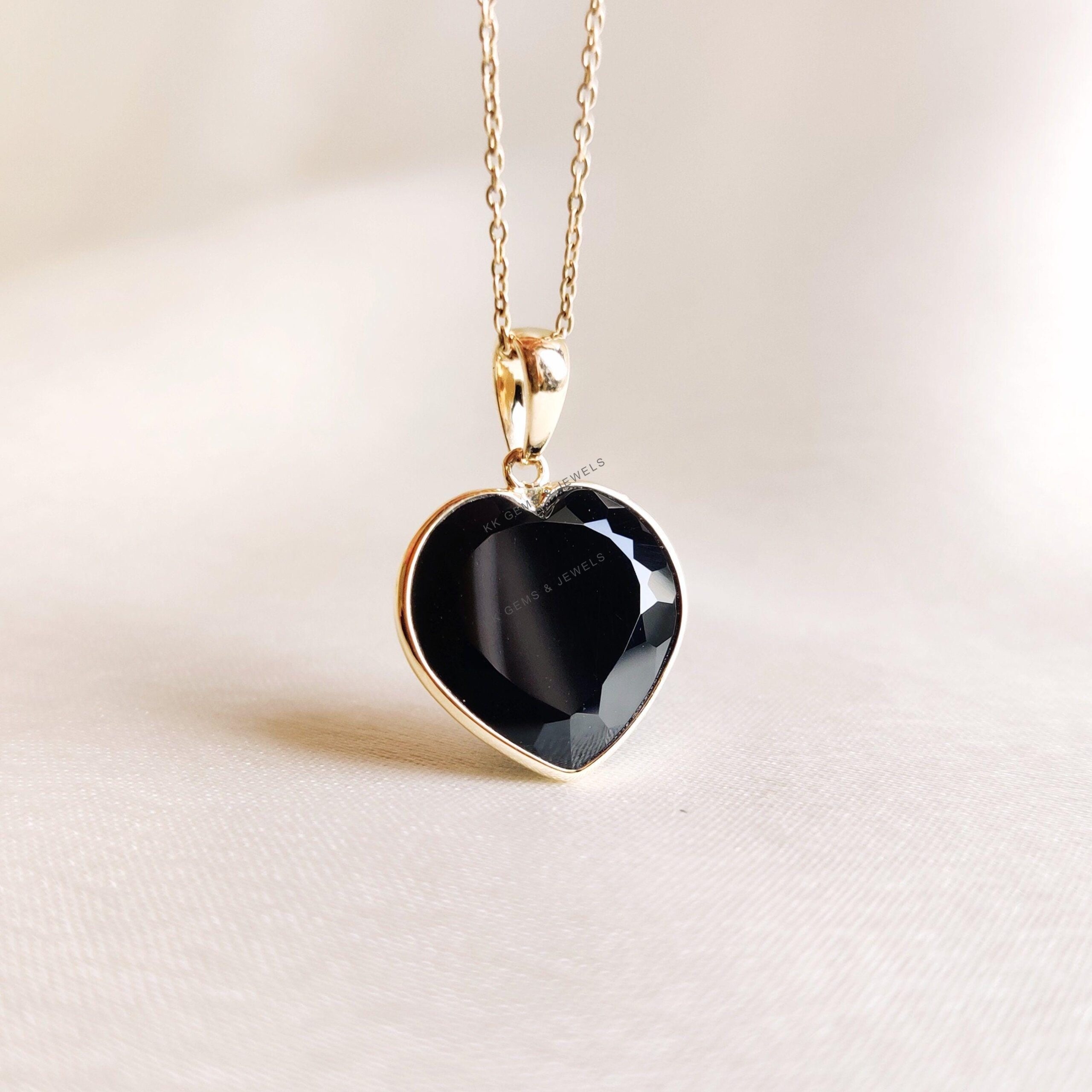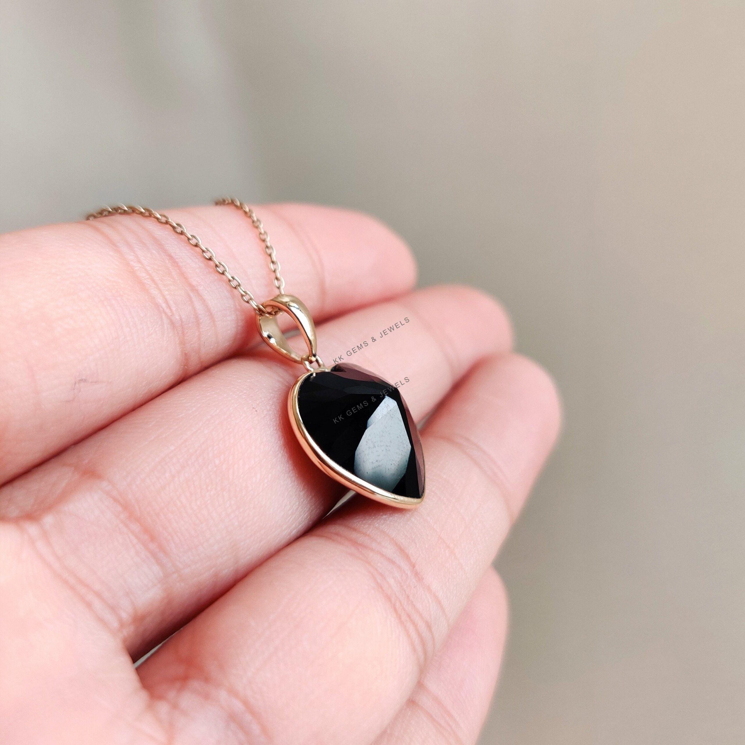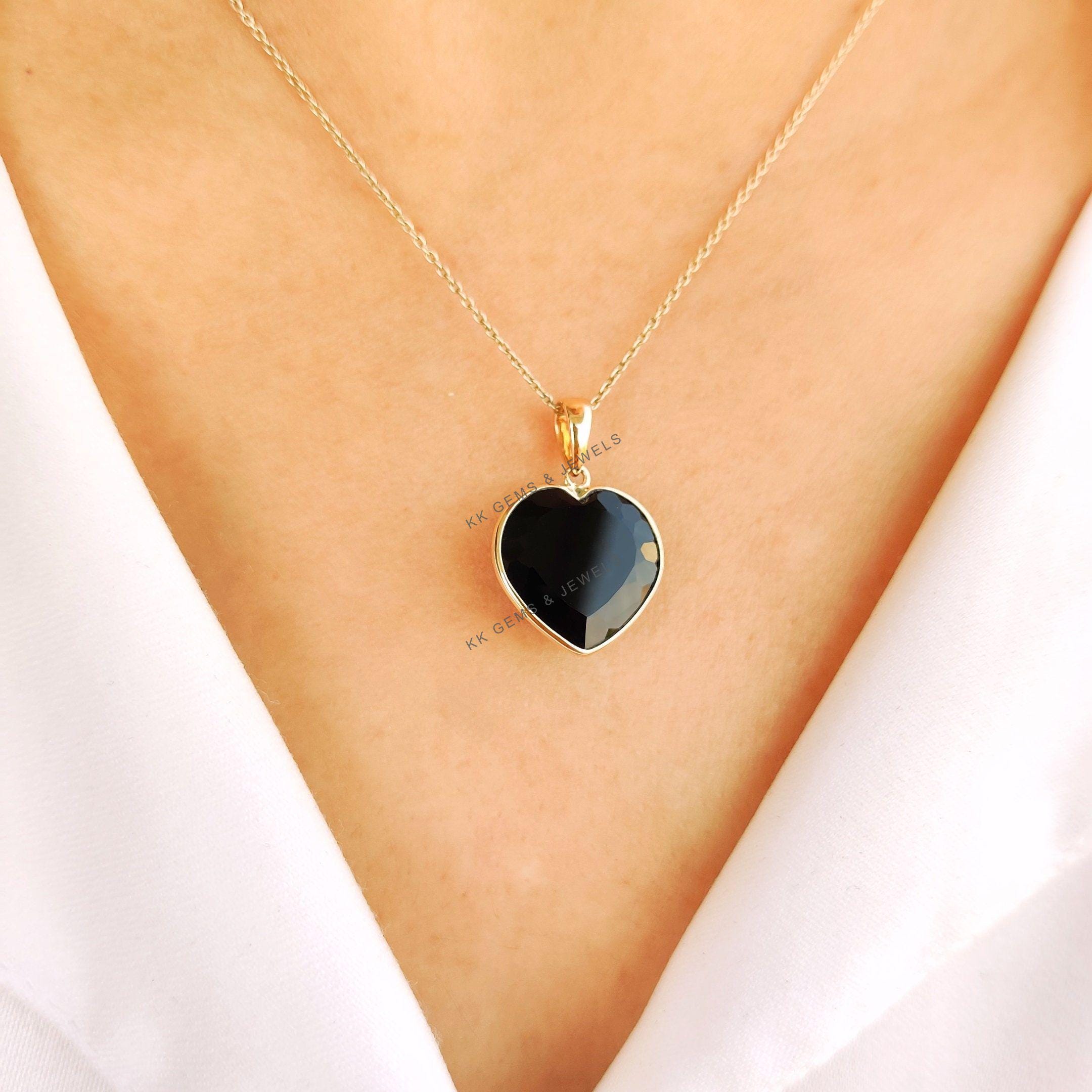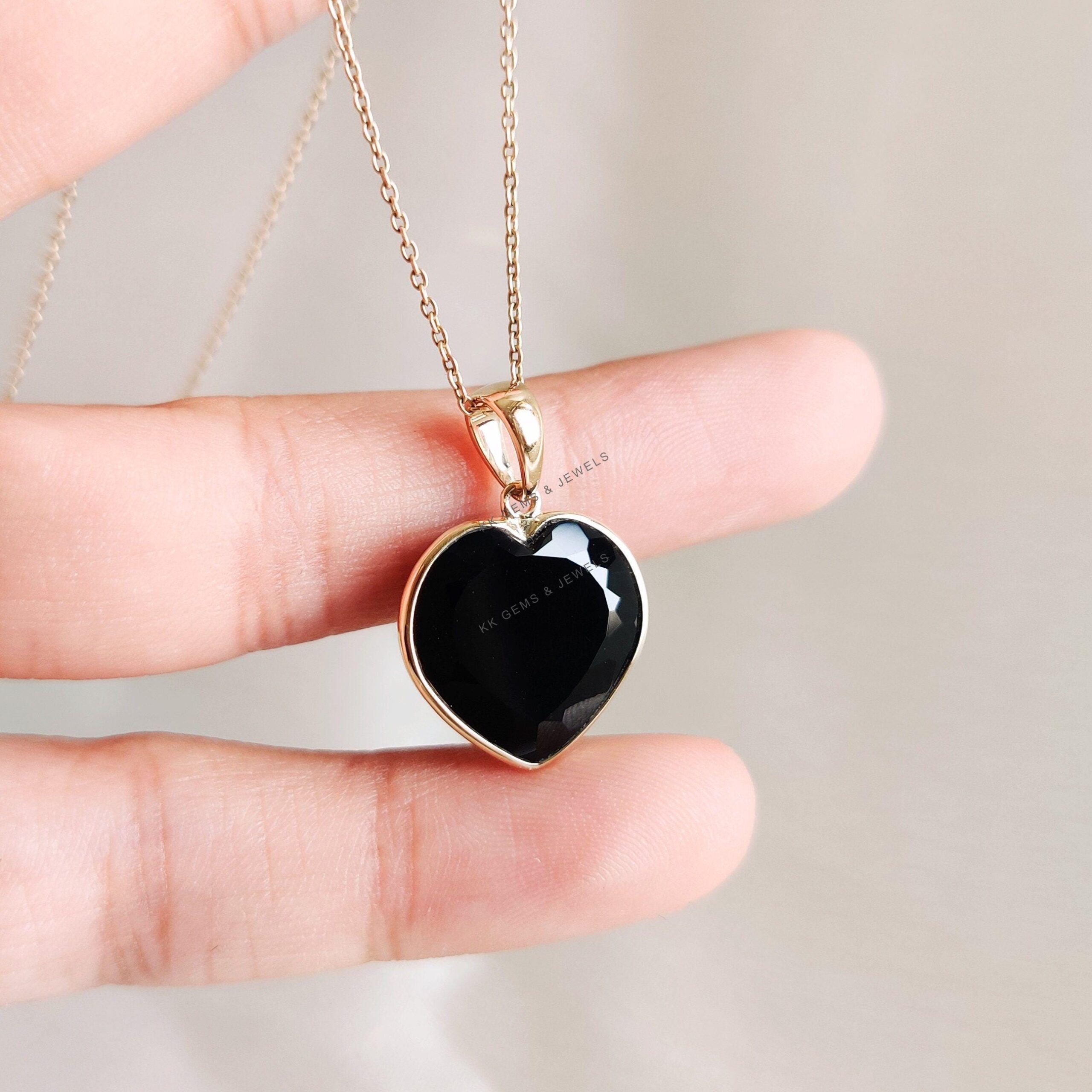 This stunning heart pendant is set in 14K Solid Yellow Gold with Natural Black Onyx with utmost precision. It is an unique gemstone pendant for nearly every occasion and is completely hassle-free jewelry.