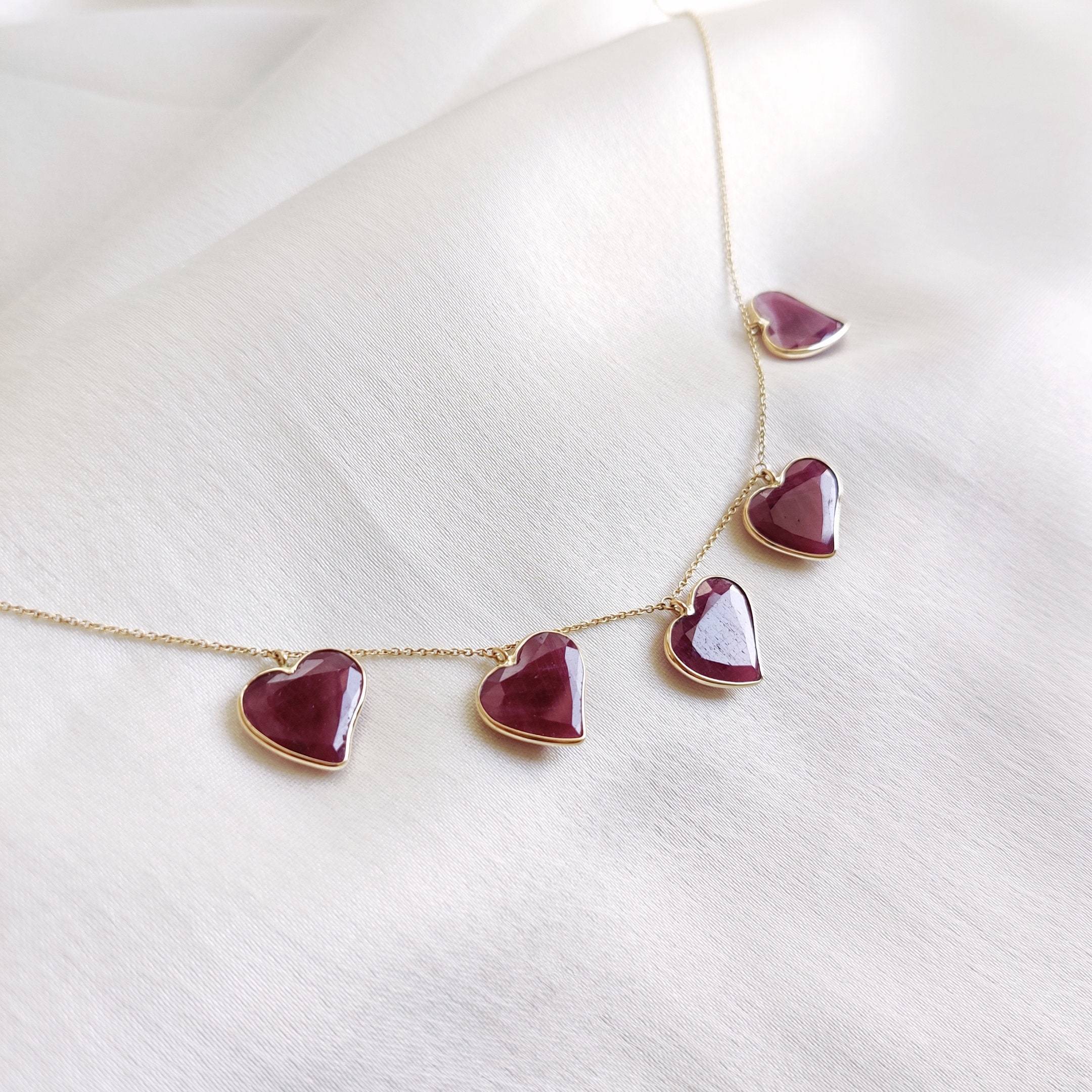 Heart Cut Natural Ruby Chain Necklace, Set in 14K Solid Gold, July Birthstone Pendant