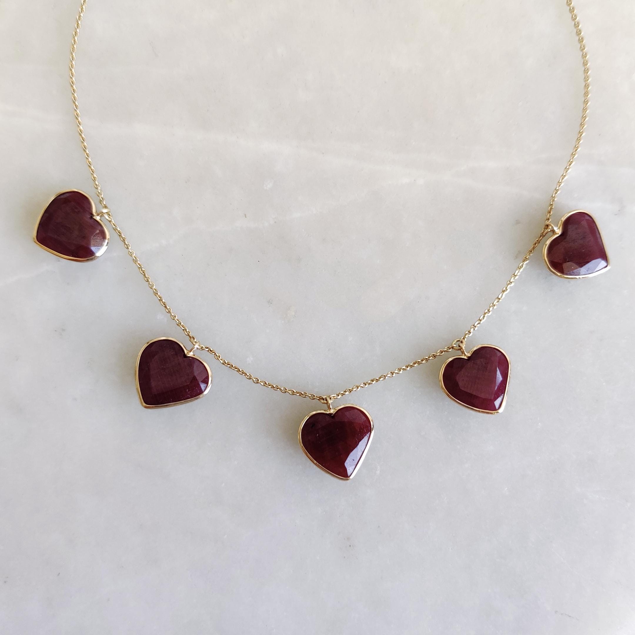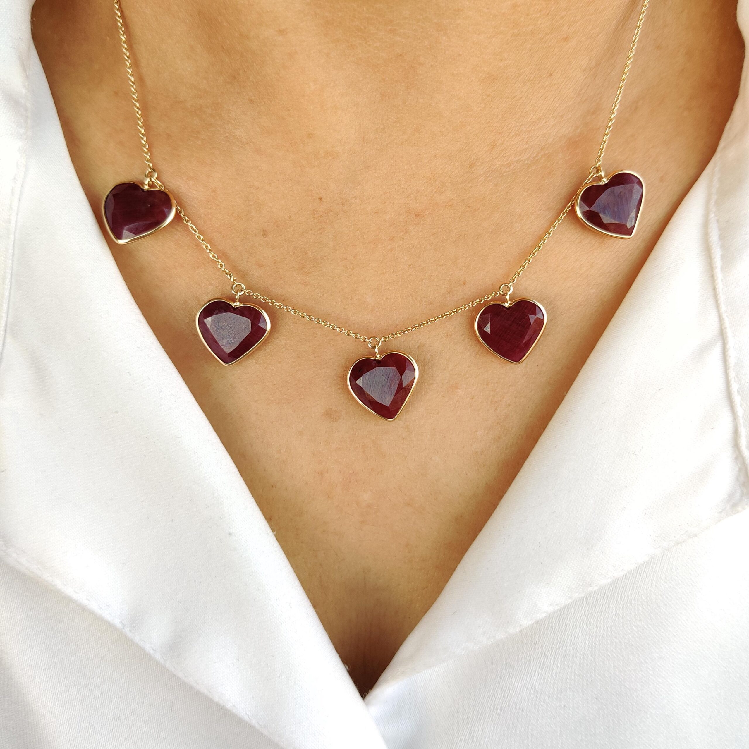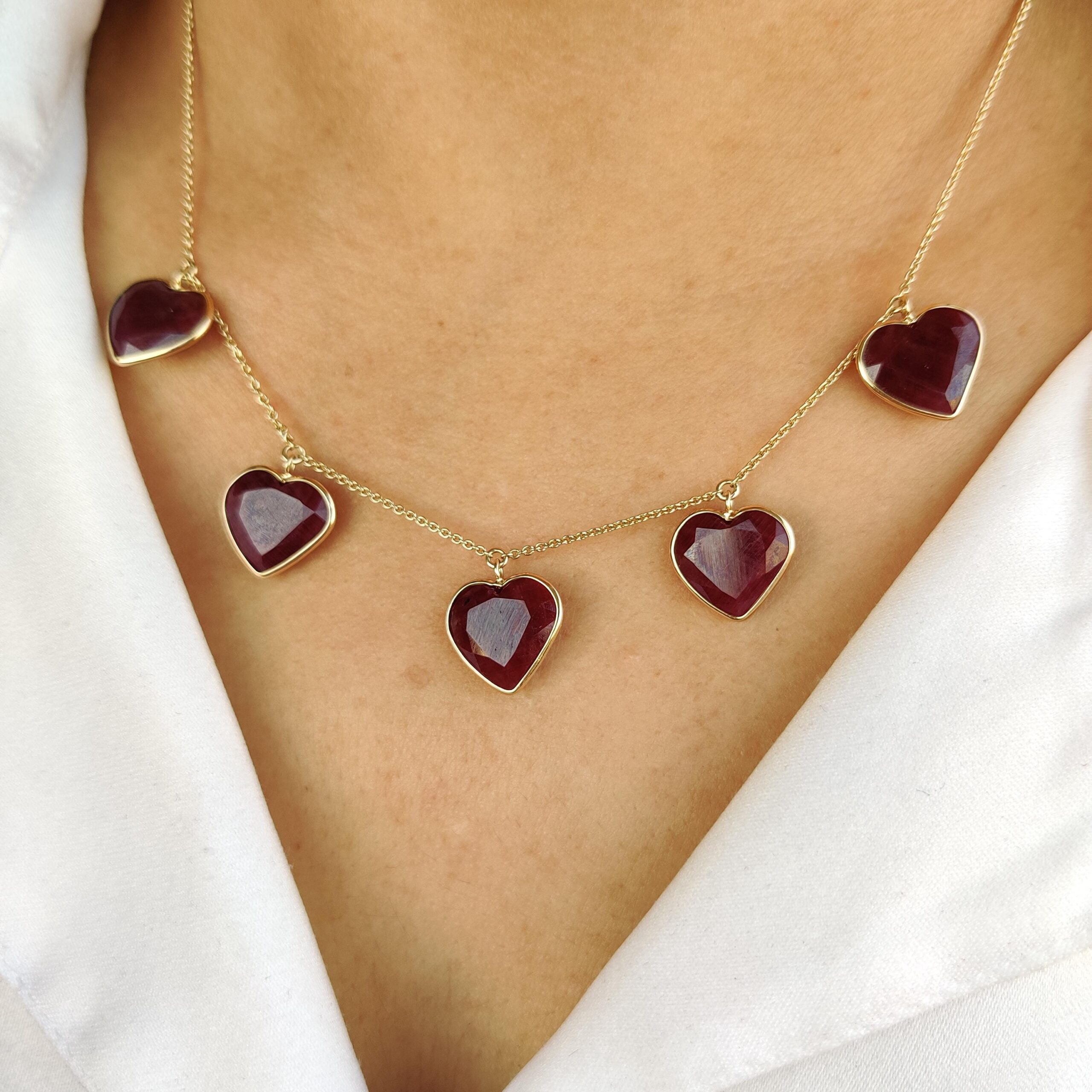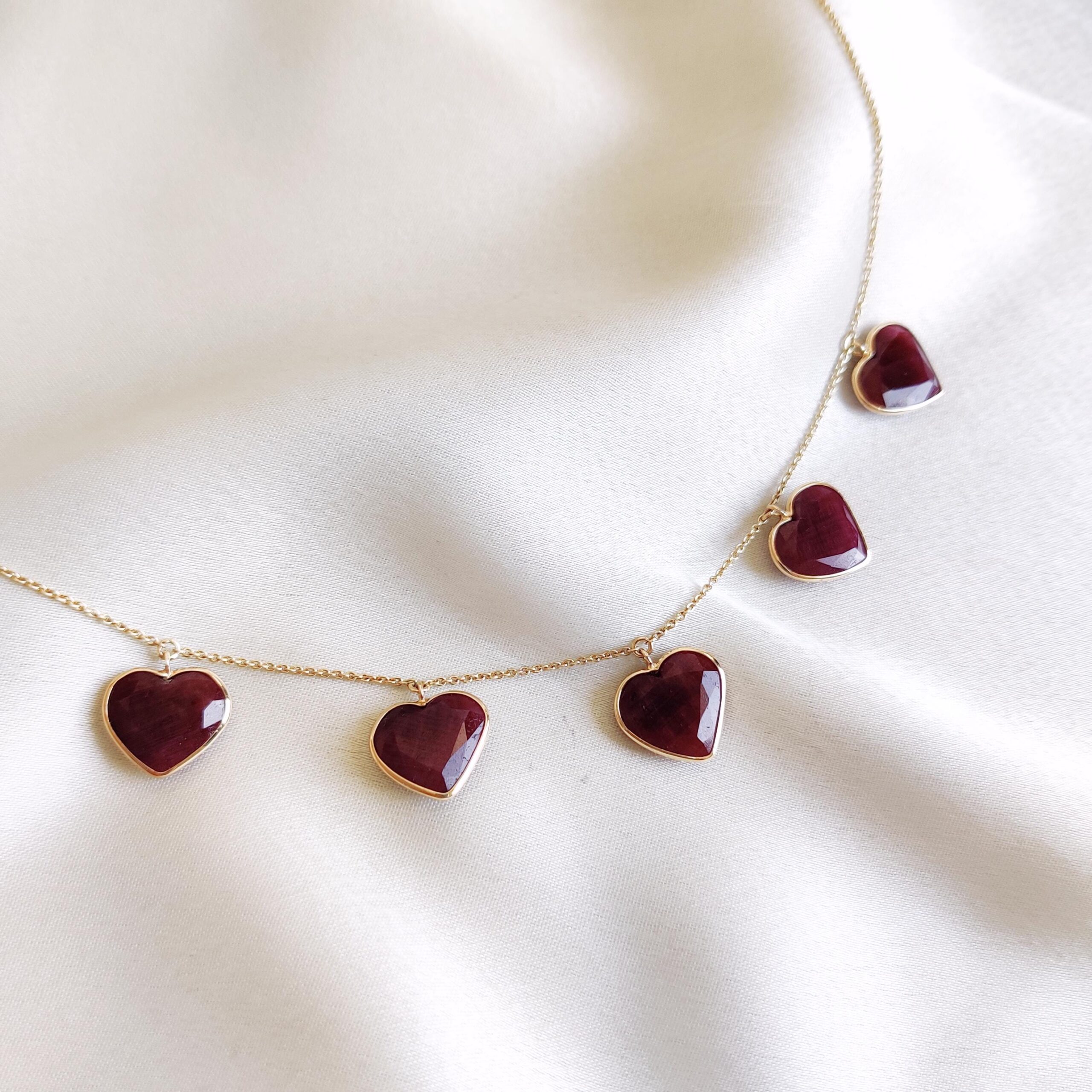 1 review for Heart Cut Natural Ruby Chain Necklace, Set in 14K Solid Gold, July Birthstone Pendant