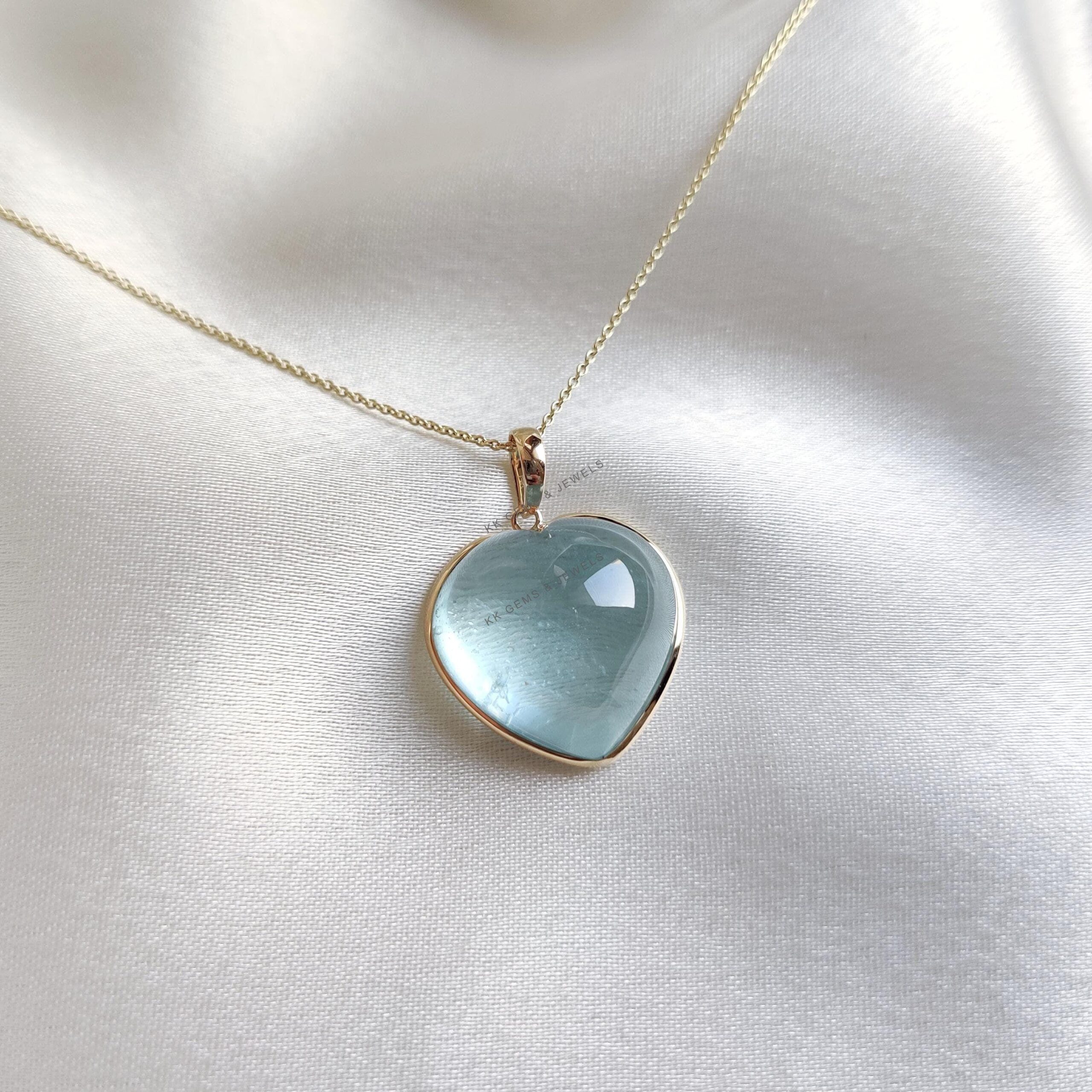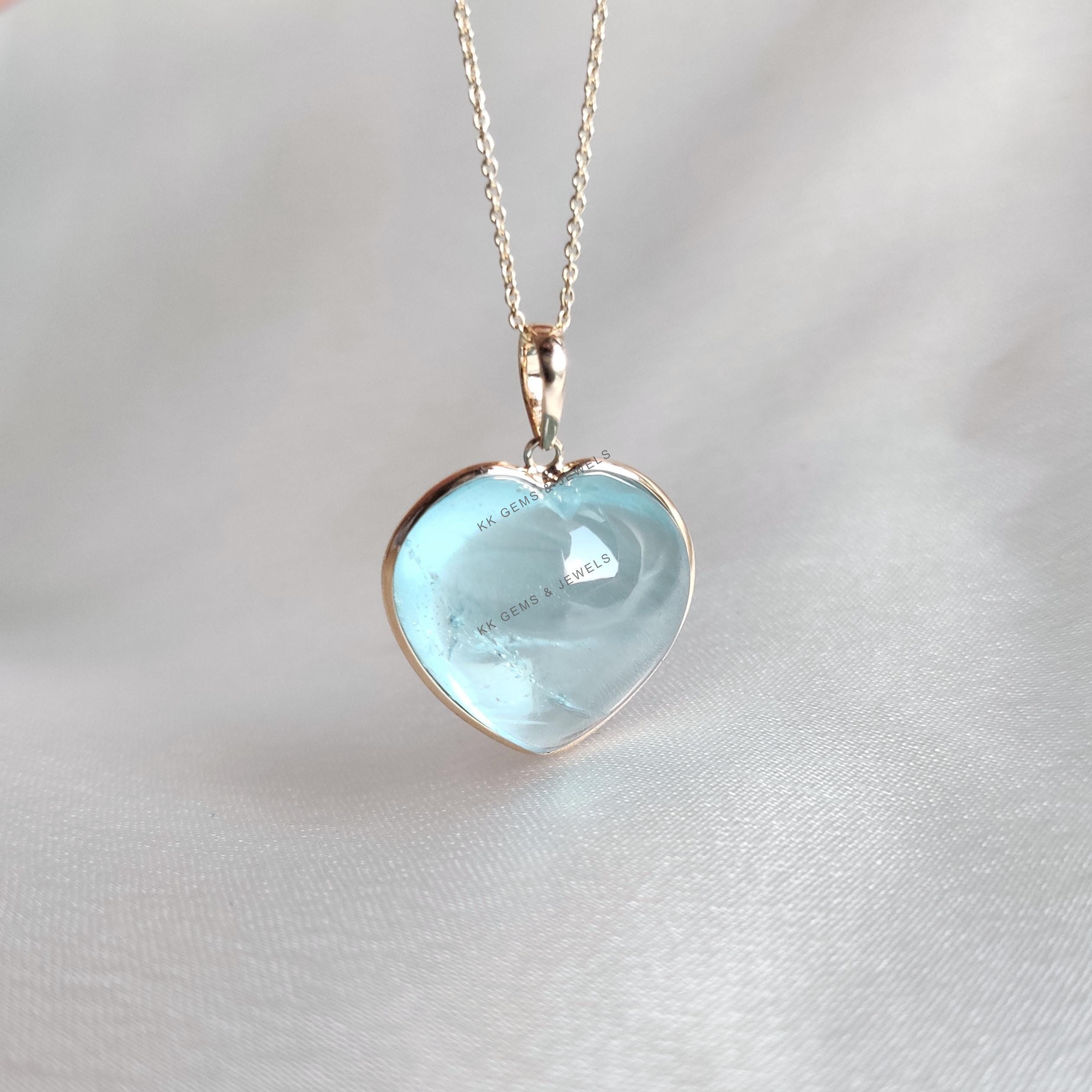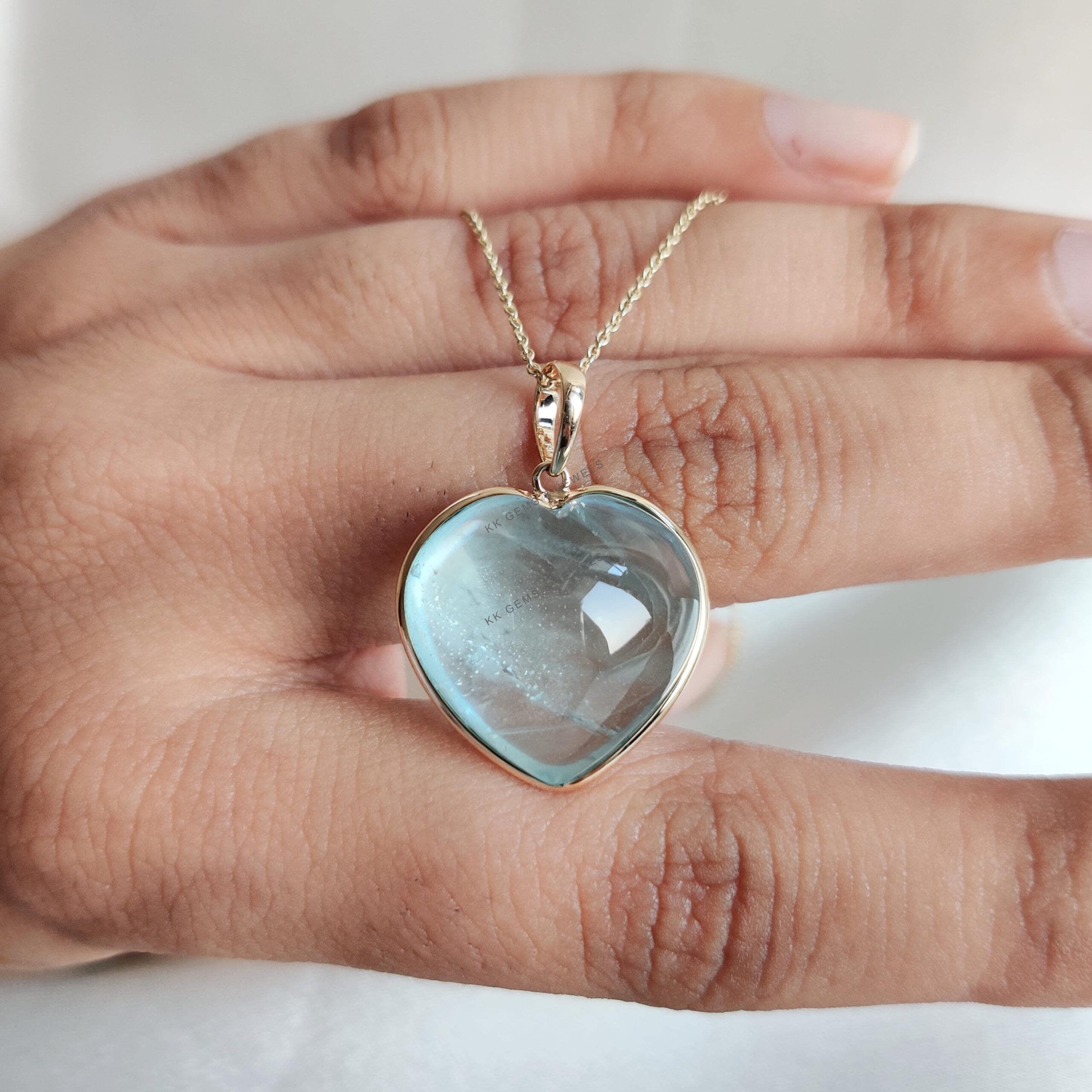 Heart Shape Natural Aquamarine Pendant, Set in 14K Solid Gold, March Birthstone