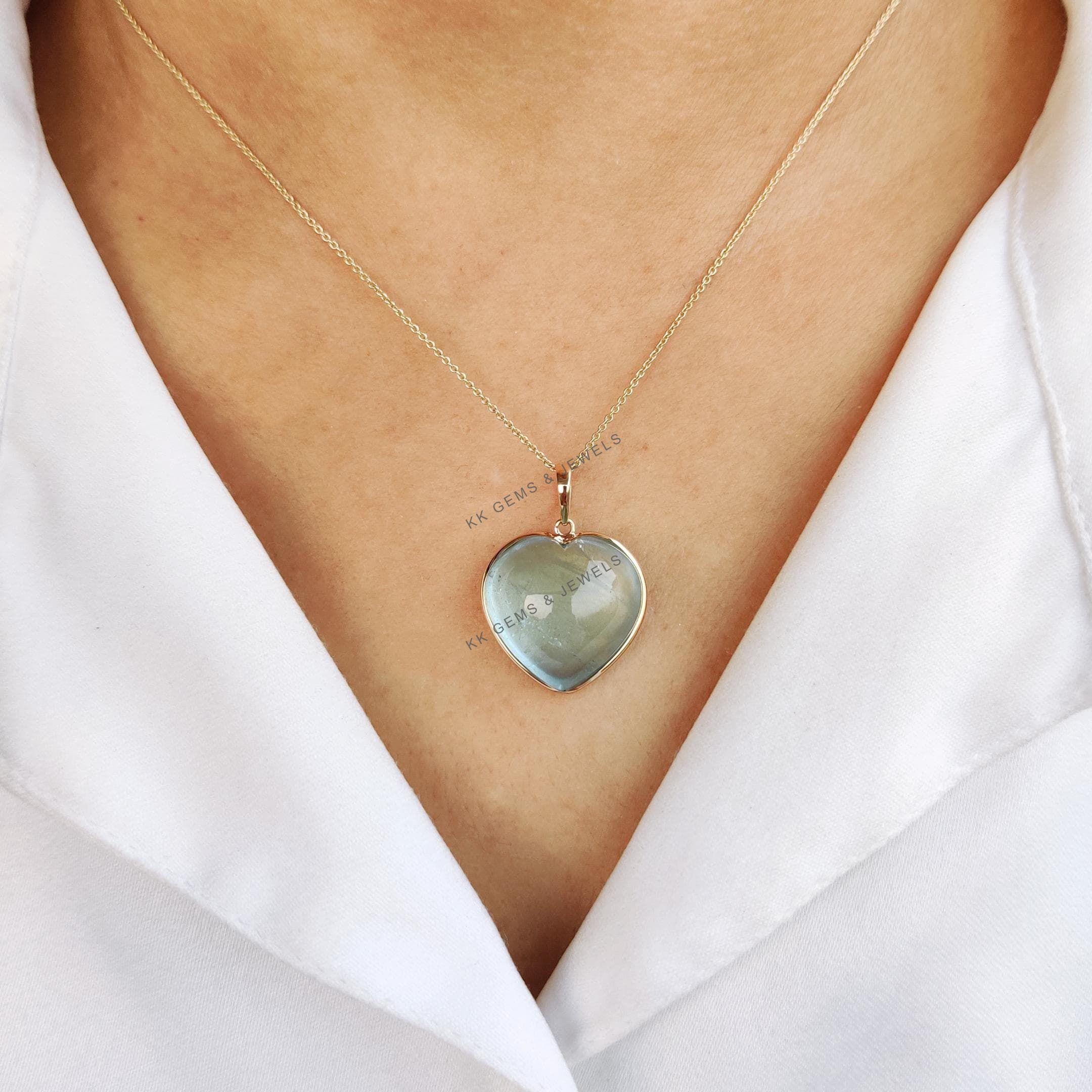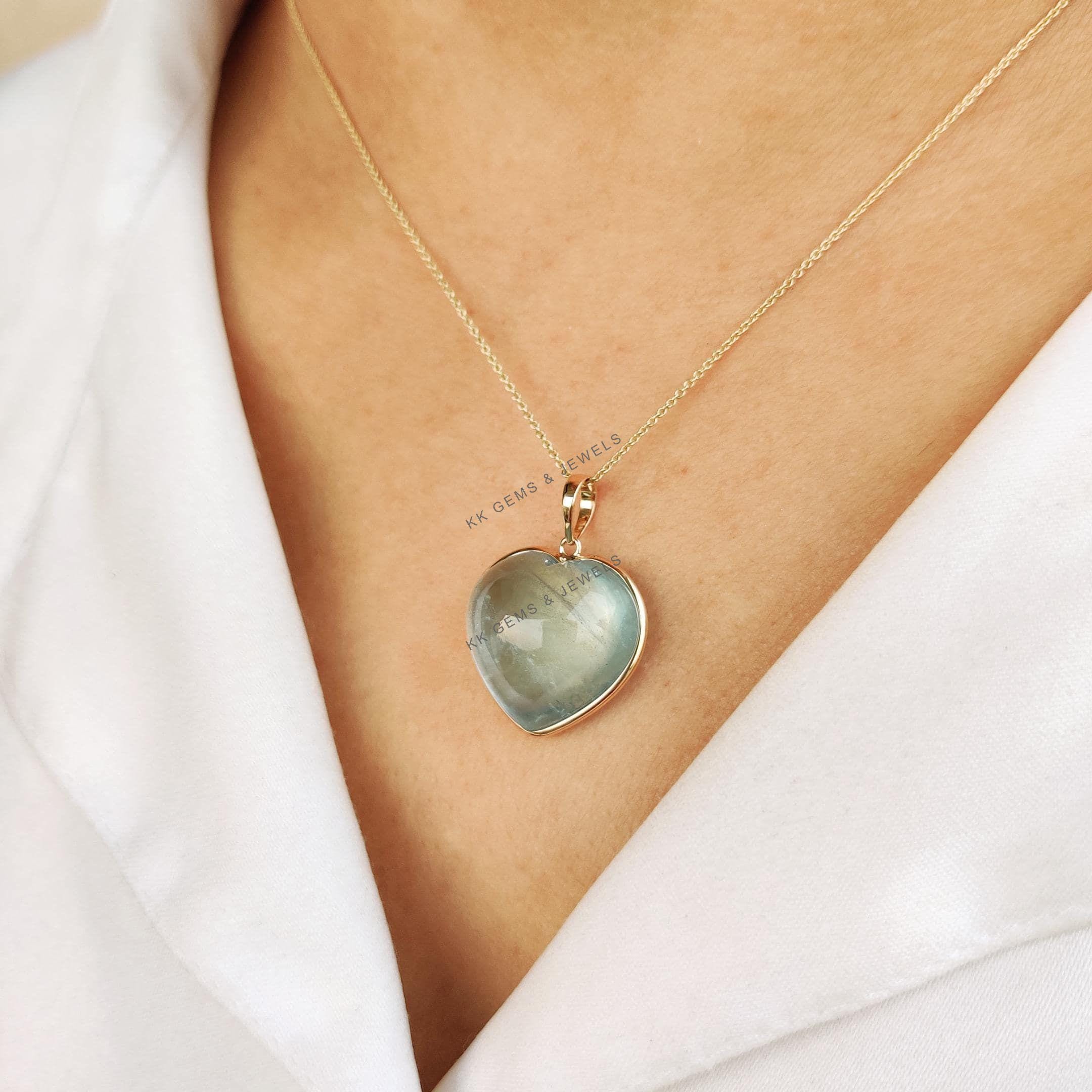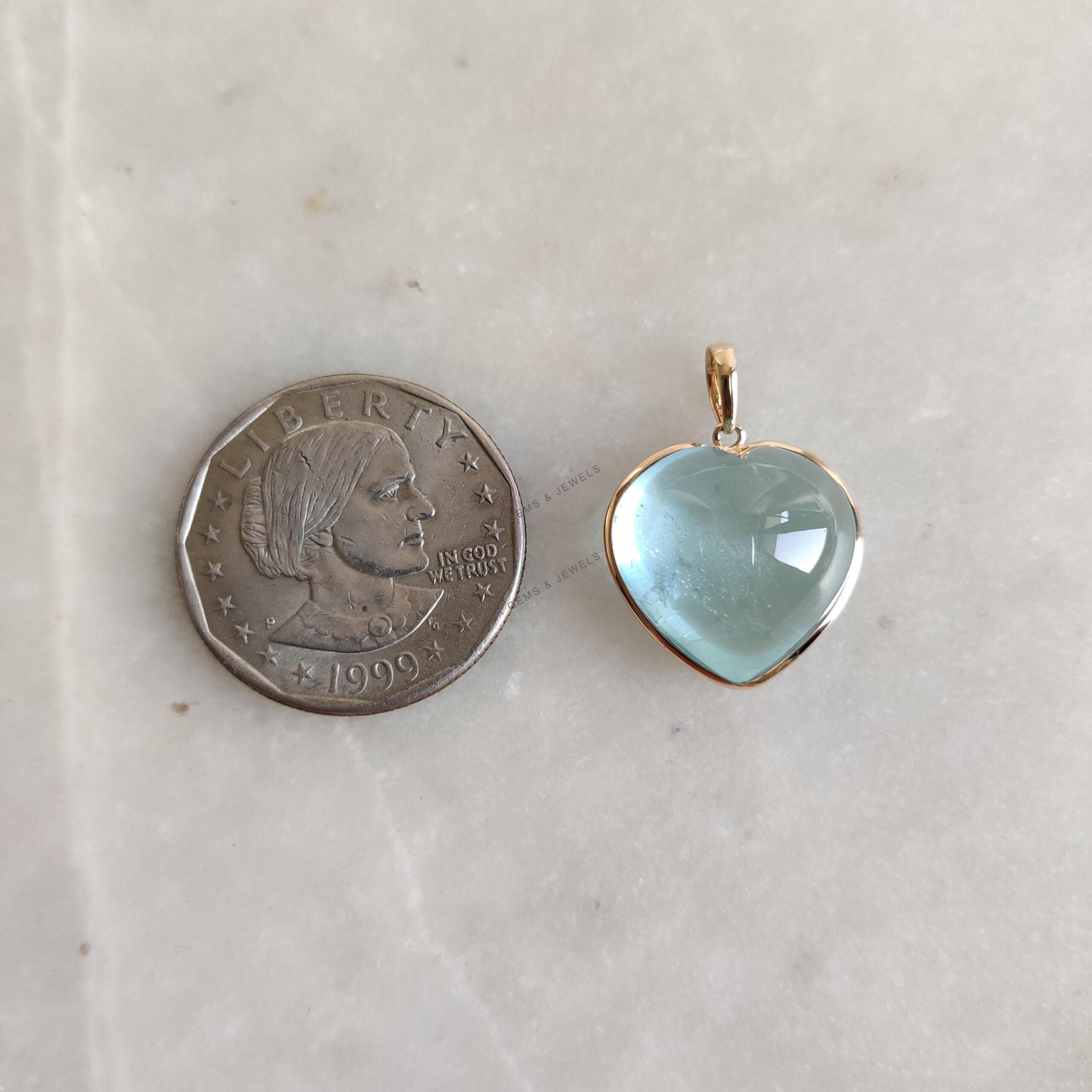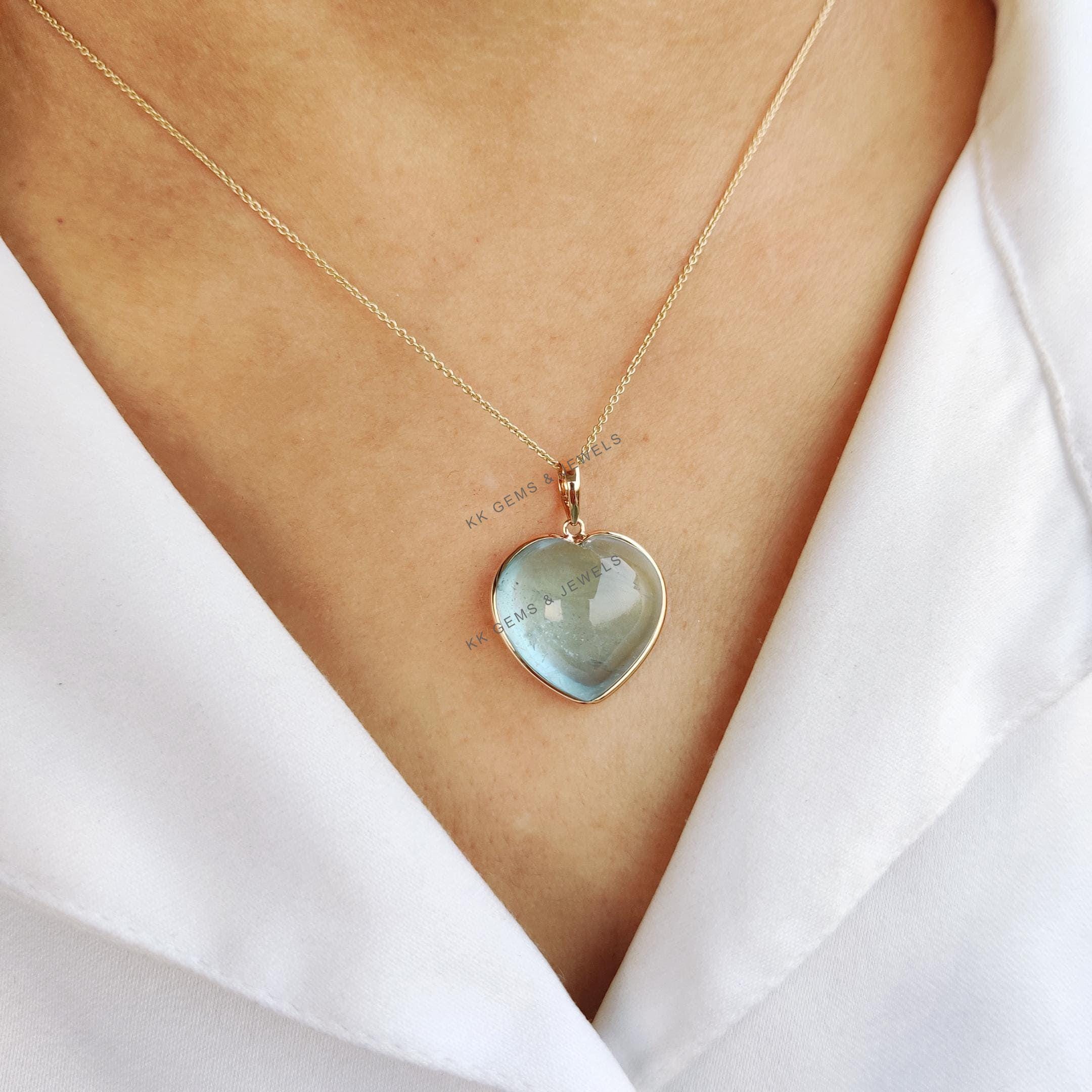 Heart Shape Natural Aquamarine Pendant, Set in 14K Solid Gold, March Birthstone