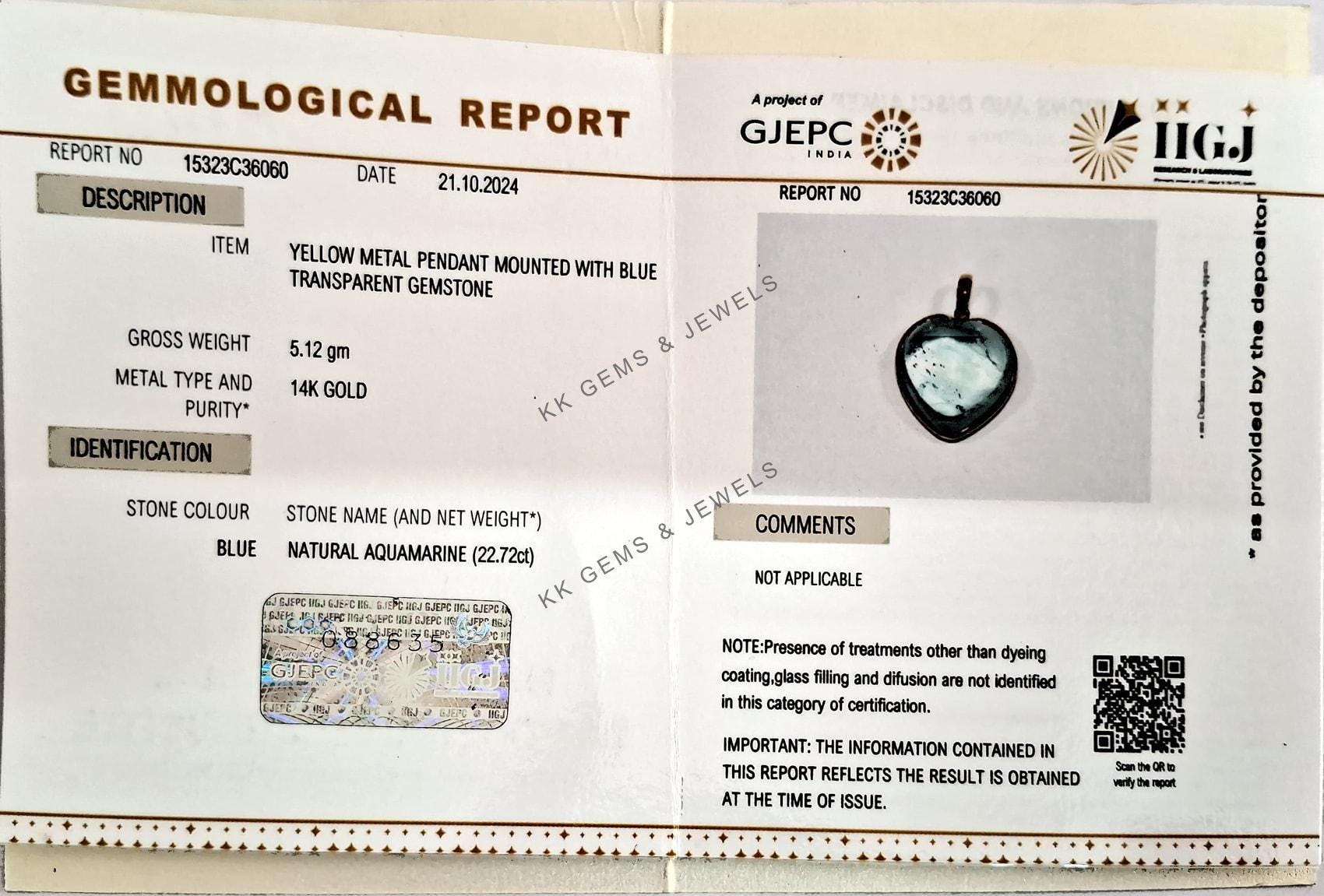 This stunning heart pendant is set in 14K Solid Yellow Gold with Natural Aquamarine with utmost precision. It is an unique gemstone pendant for nearly every occasion and is completely hassle-free jewelry. ✓ ABOUT GEMSTONE: Aquamarine is often considered a…