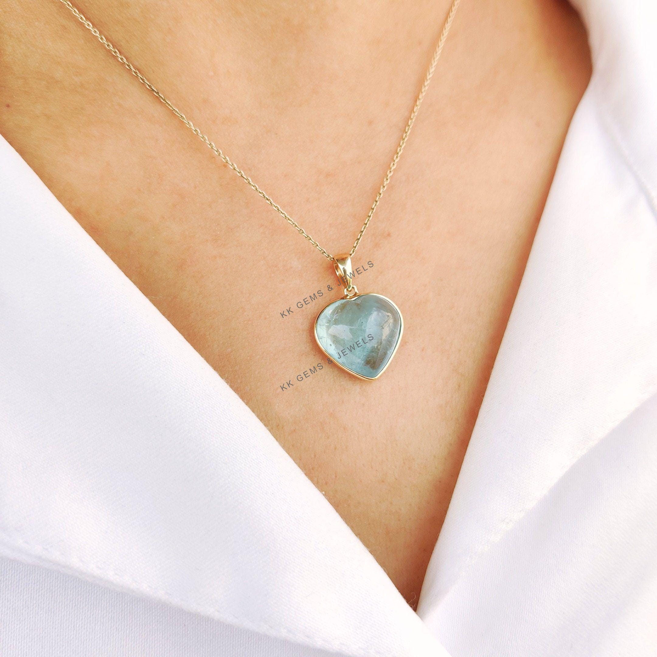 This stunning heart pendant is set in 14K Solid Yellow Gold with Natural Aquamarine with utmost precision. It is an unique gemstone pendant for nearly every occasion and is completely hassle-free jewelry. ✓ ABOUT GEMSTONE: Aquamarine is often considered a…