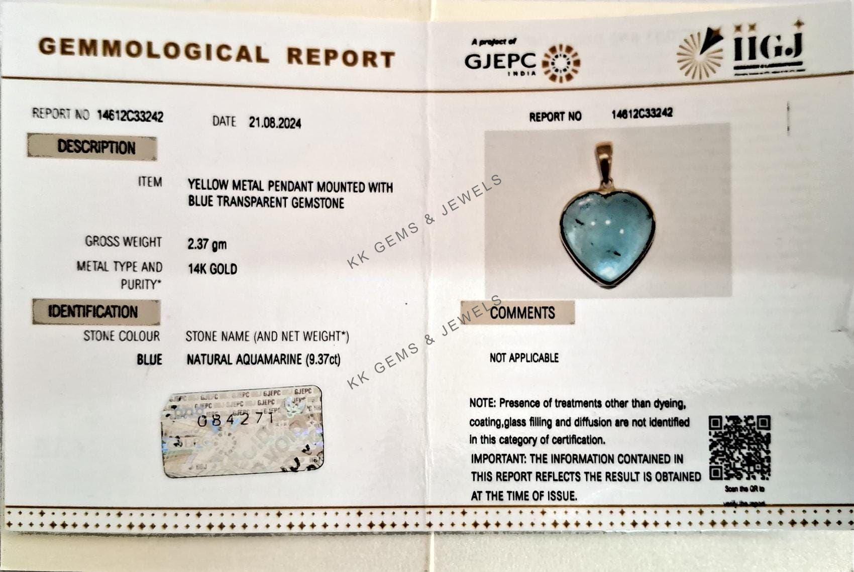 This stunning heart pendant is set in 14K Solid Yellow Gold with Natural Aquamarine with utmost precision. It is an unique gemstone pendant for nearly every occasion and is completely hassle-free jewelry.