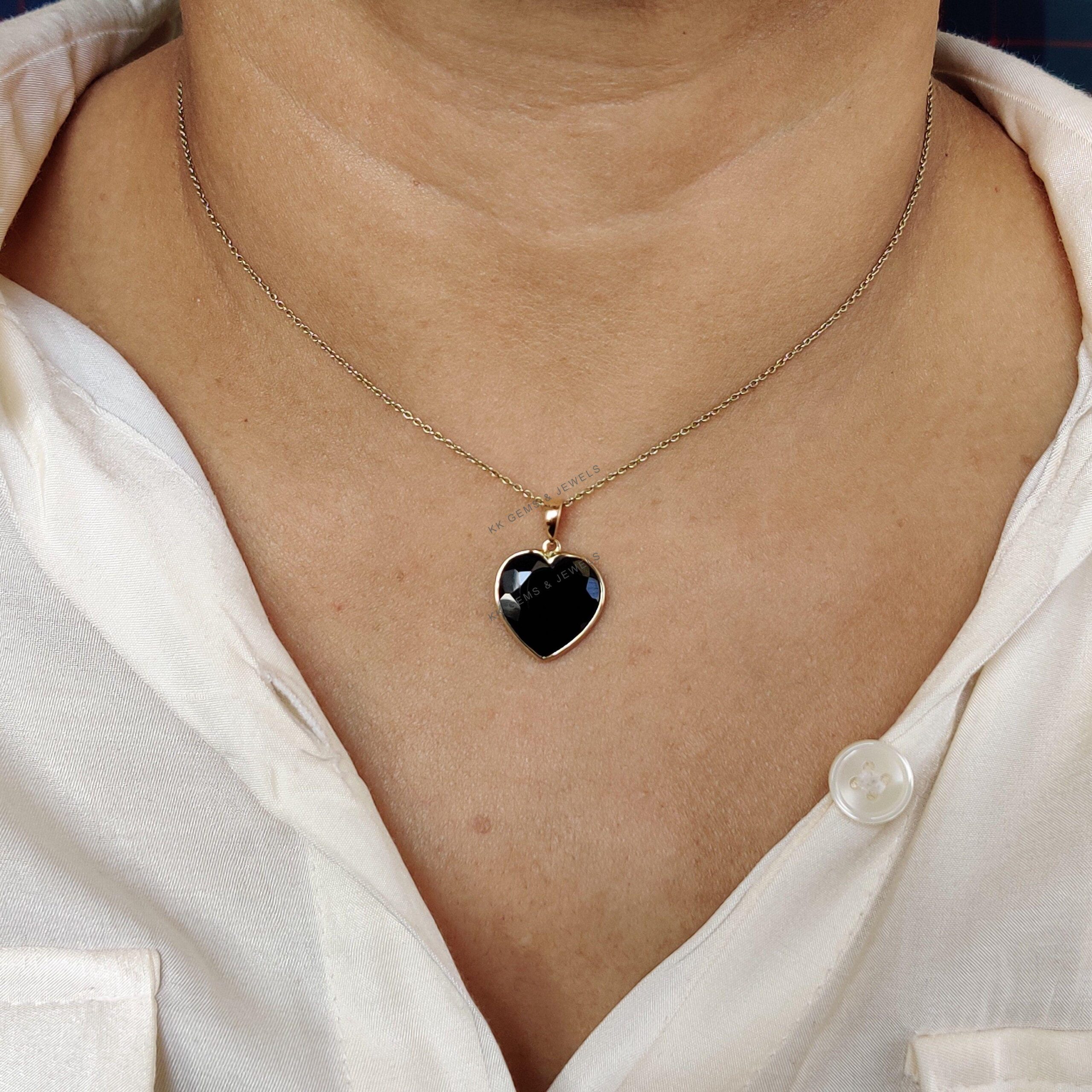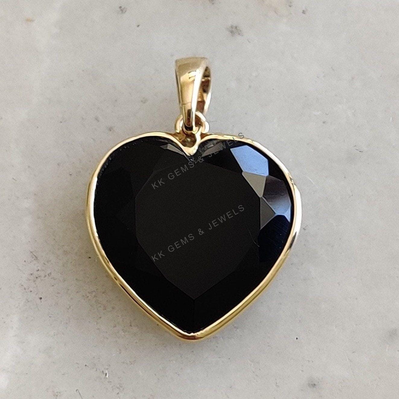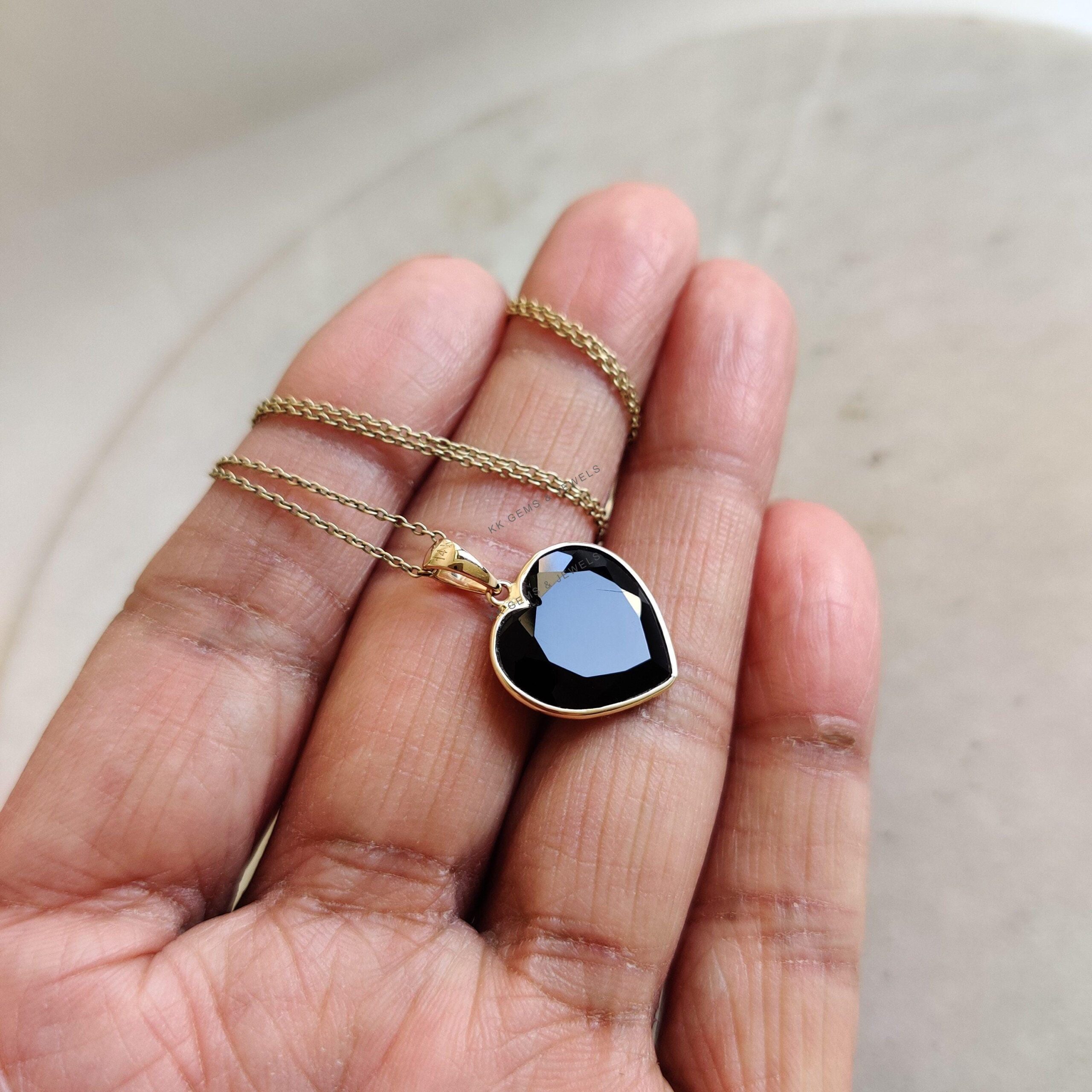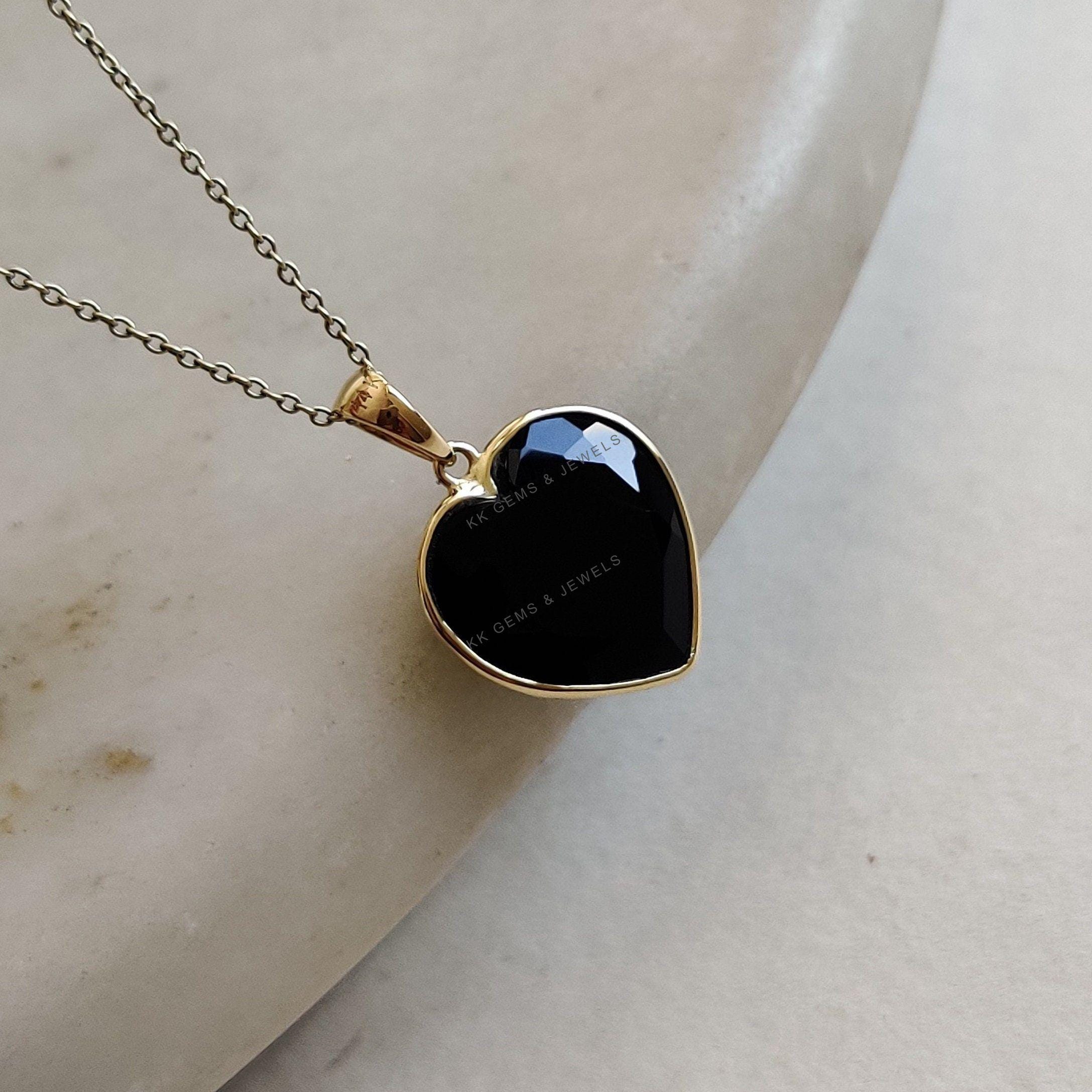 2 reviews for Heart Shape Natural Black Onyx Pendant, Set in 14K Solid Gold, December Birthstone Jewelry
