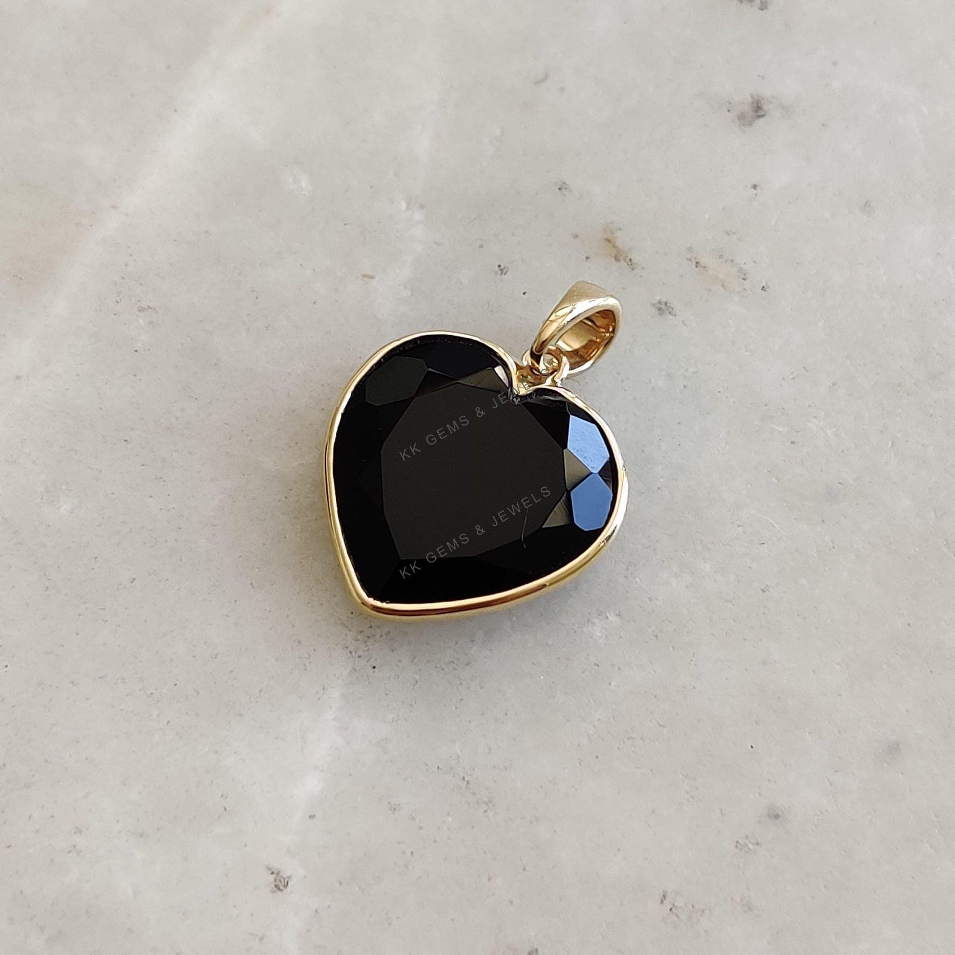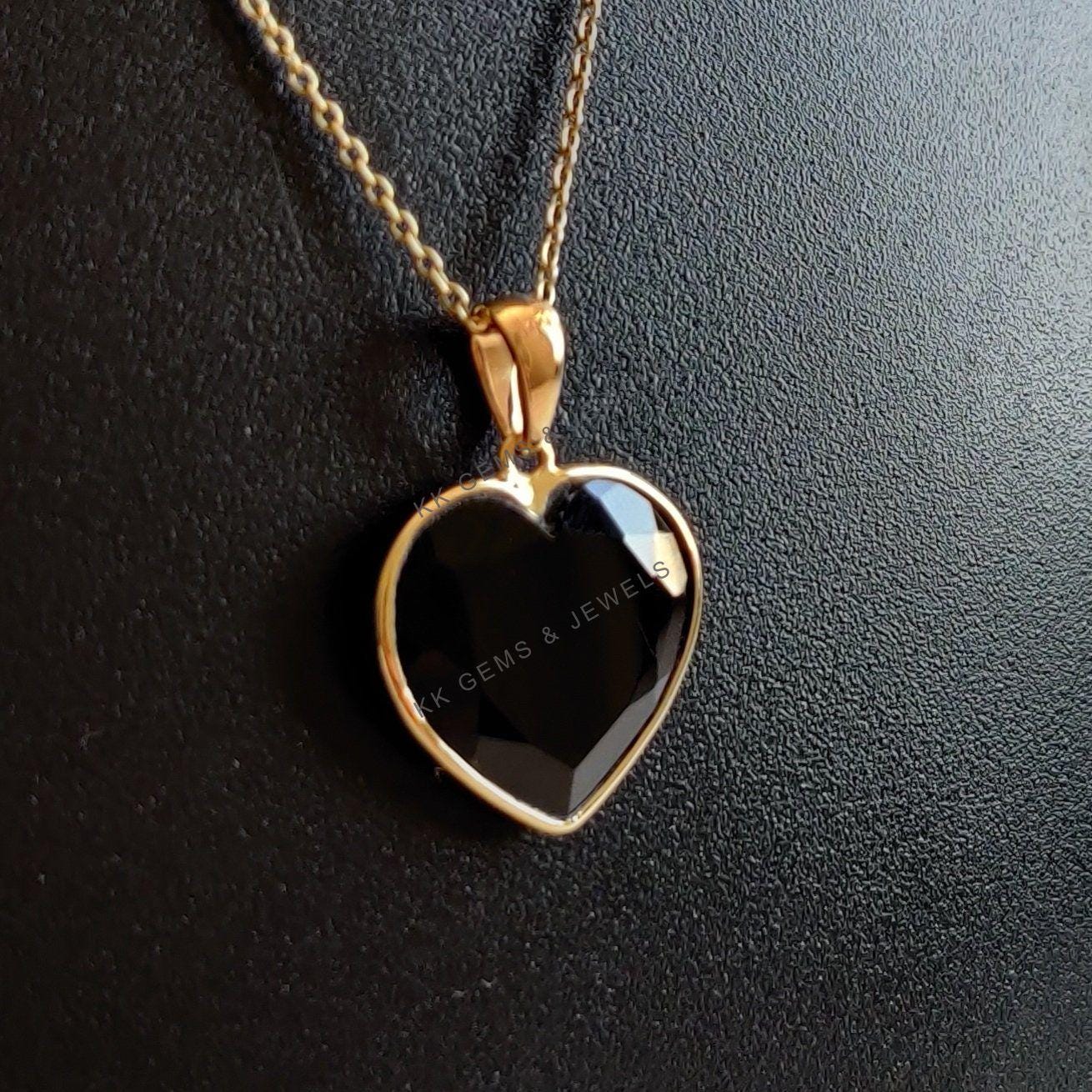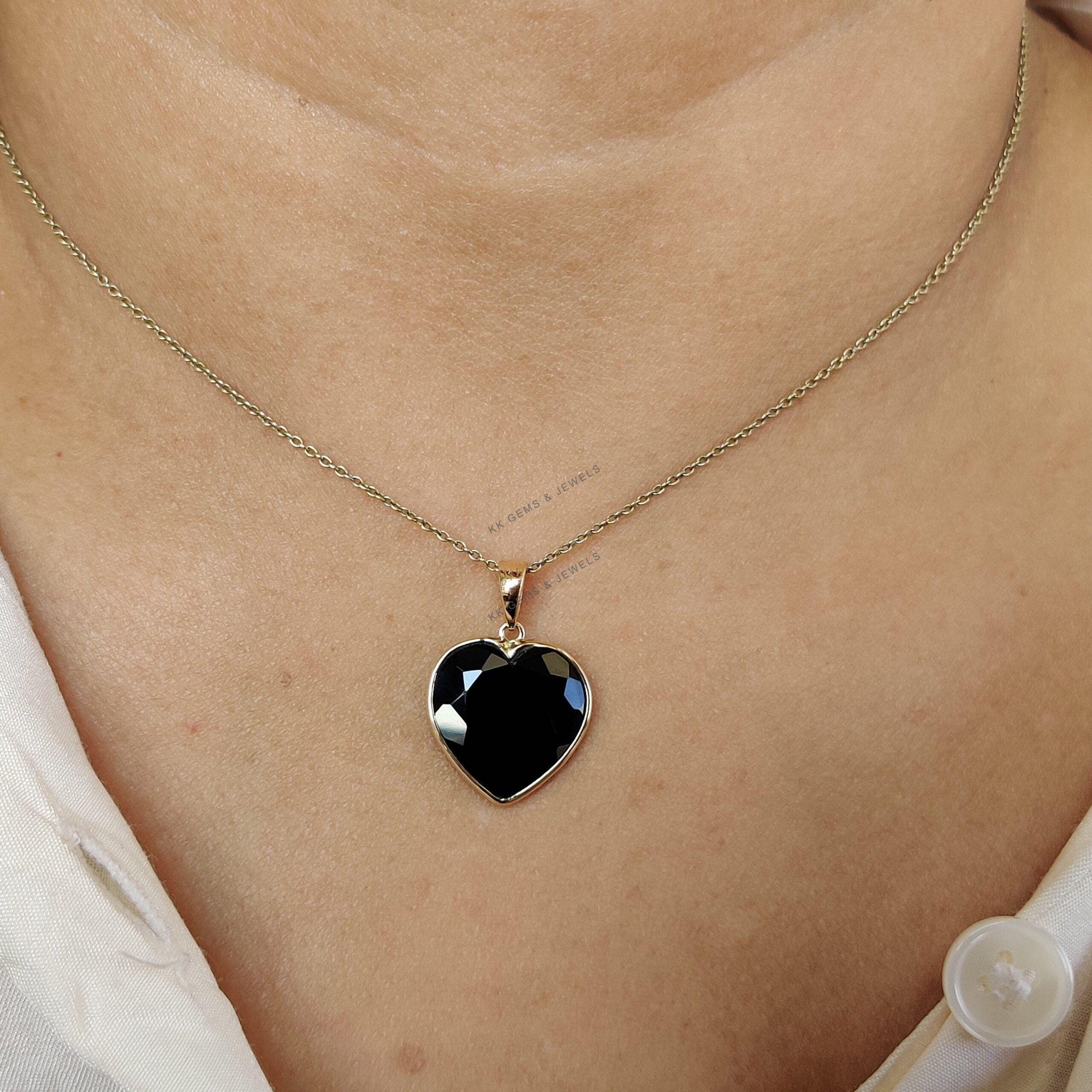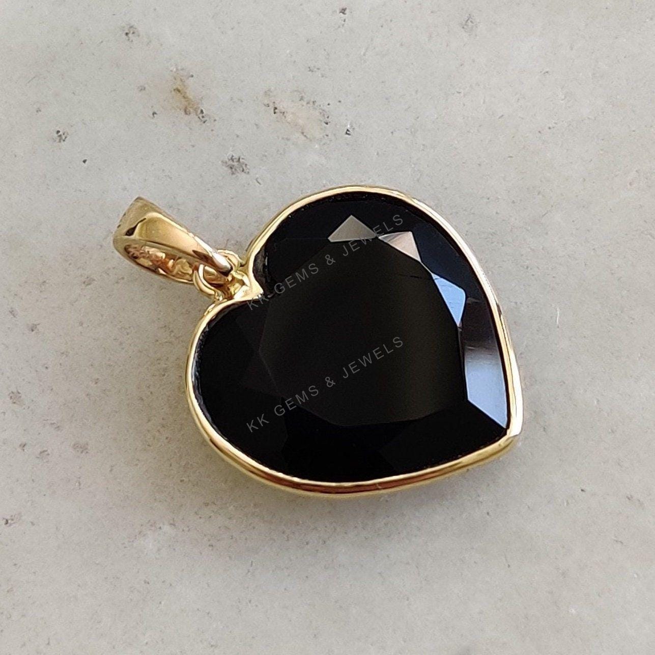 2 reviews for Heart Shape Natural Black Onyx Pendant, Set in 14K Solid Gold, December Birthstone Jewelry