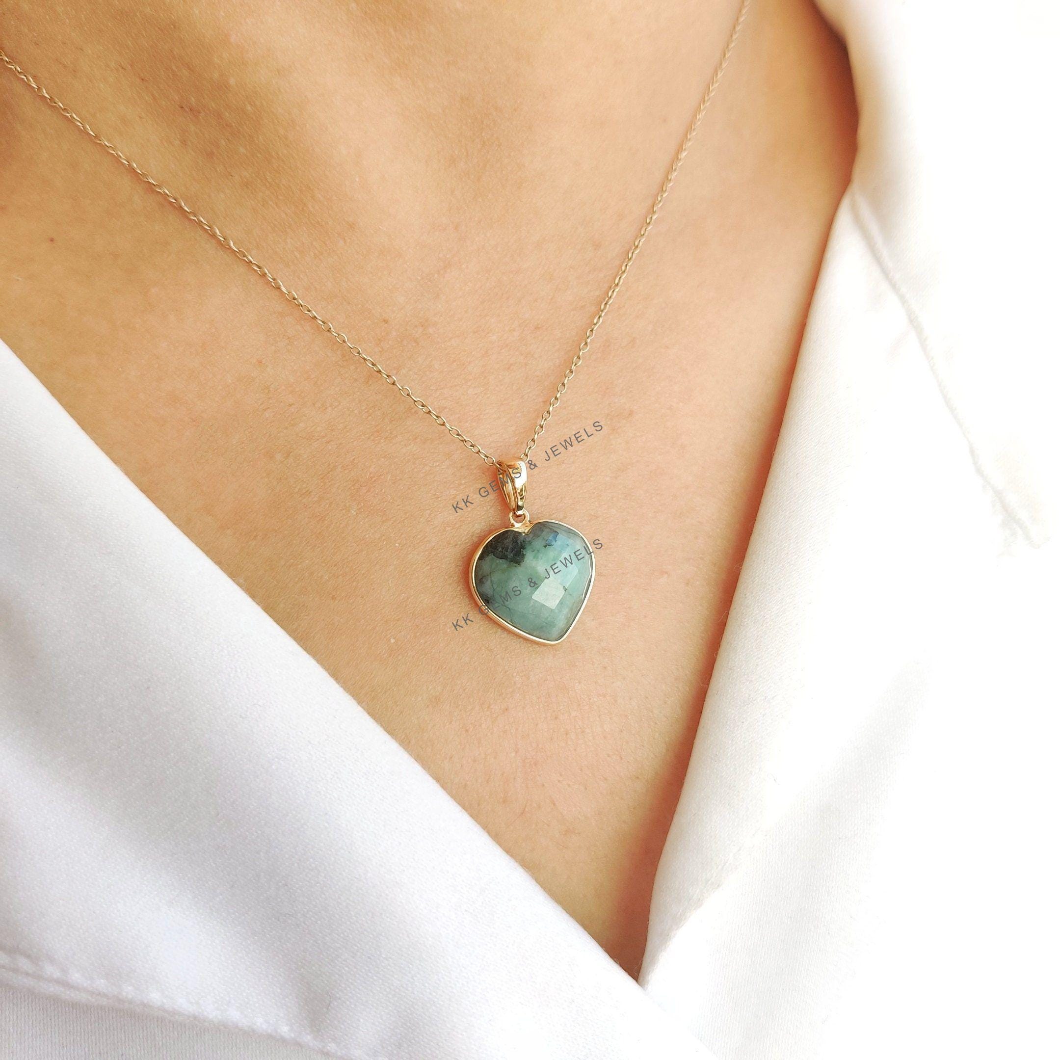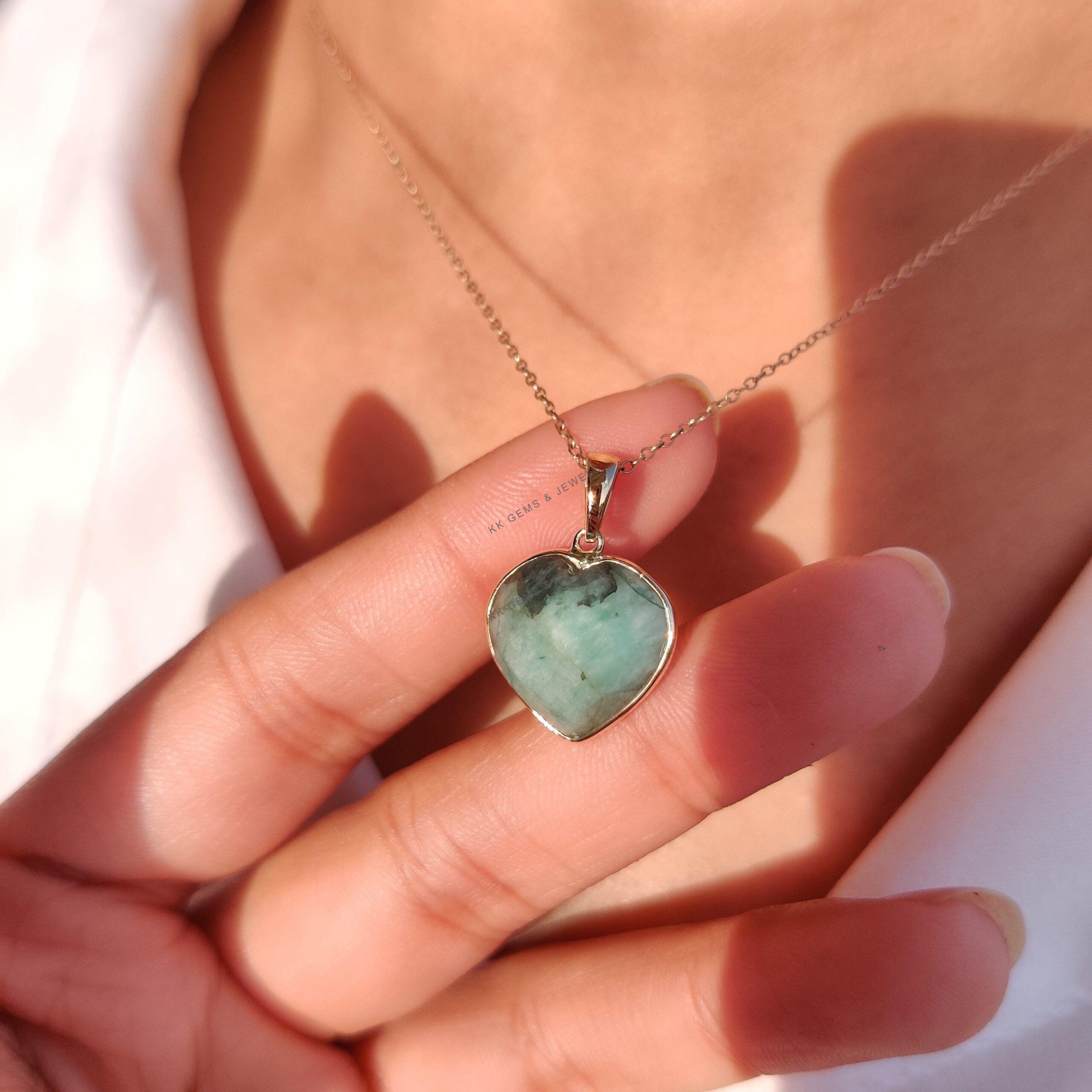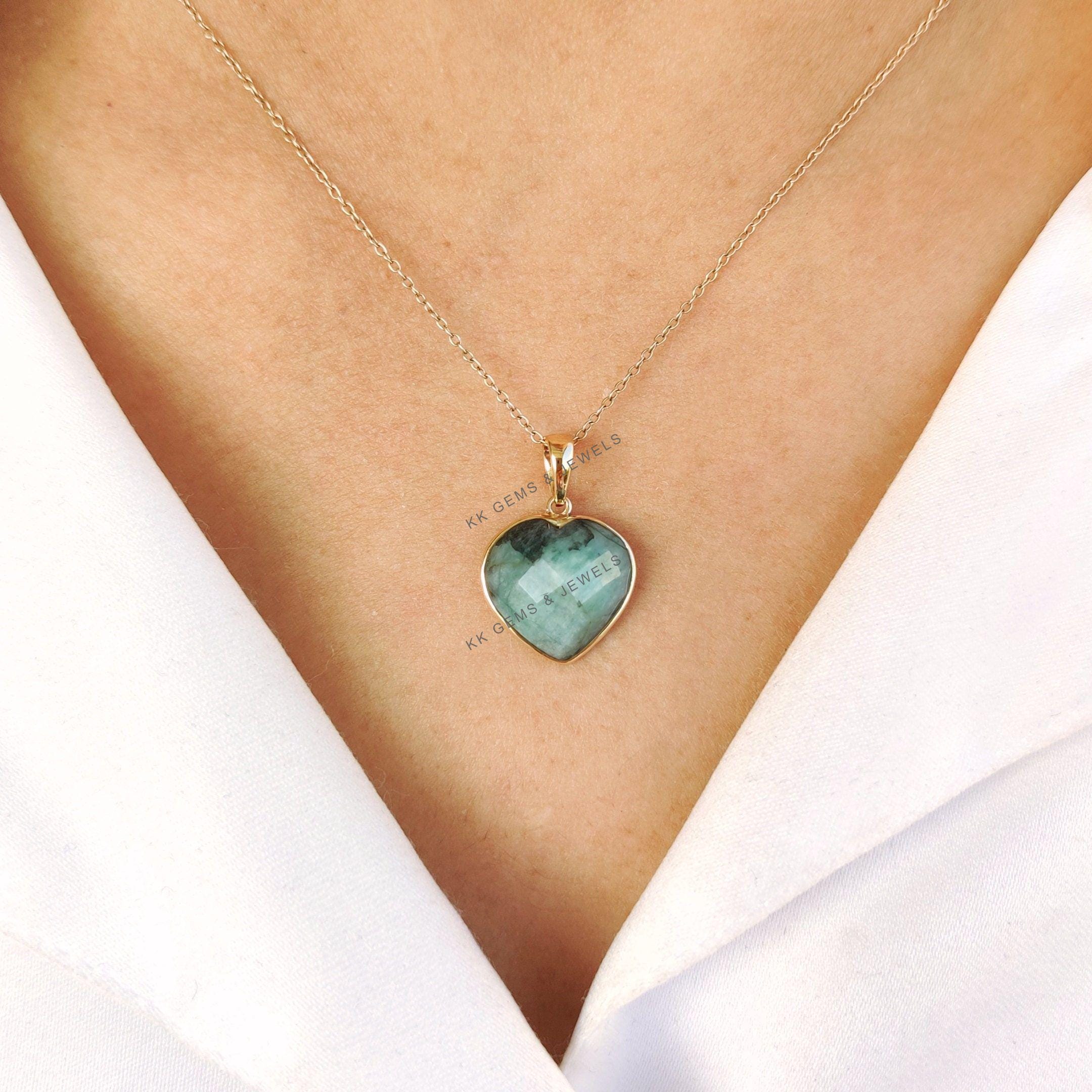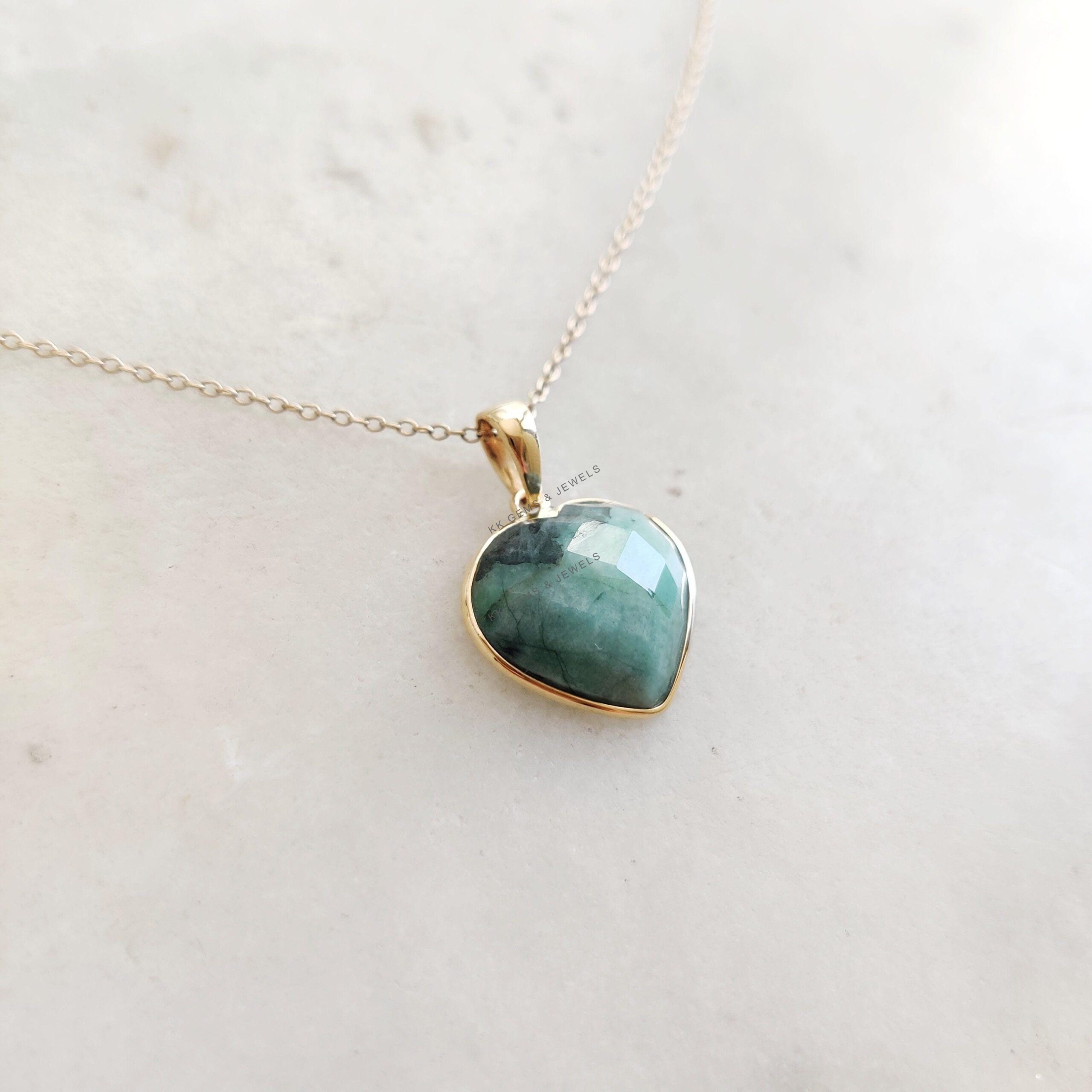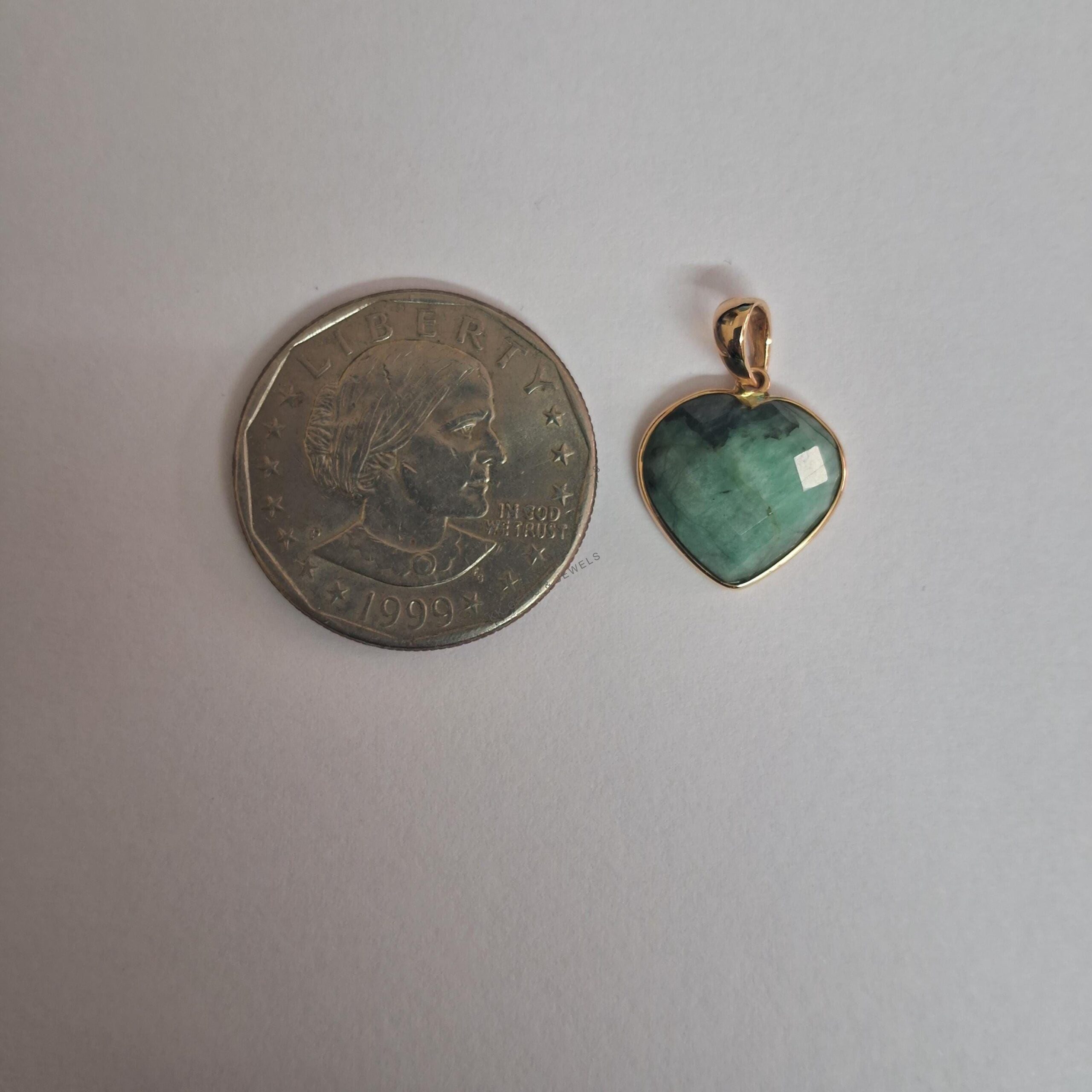 Heart Shape Natural Emerald Pendant set in 14K Solid Gold, May Birthstone Bezel