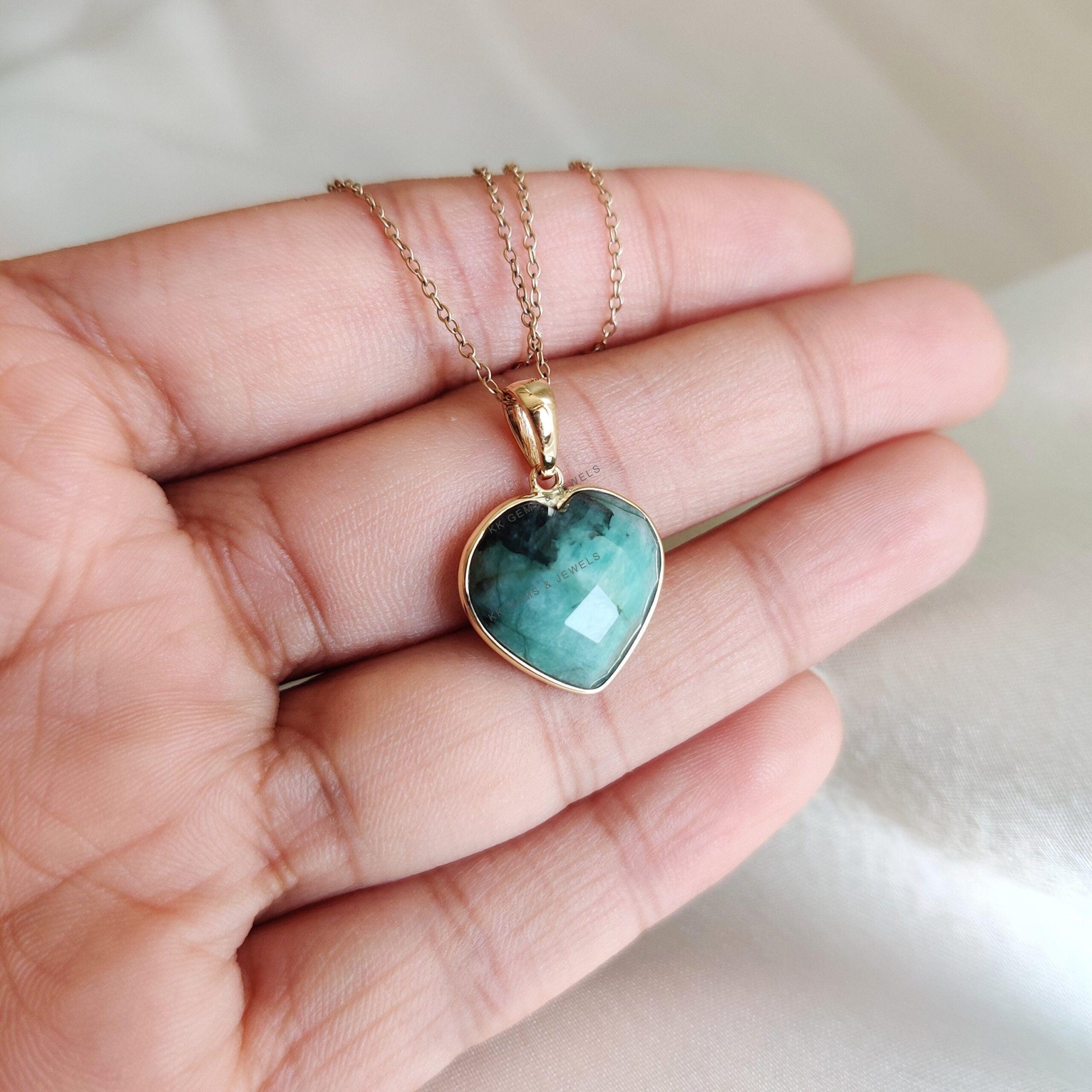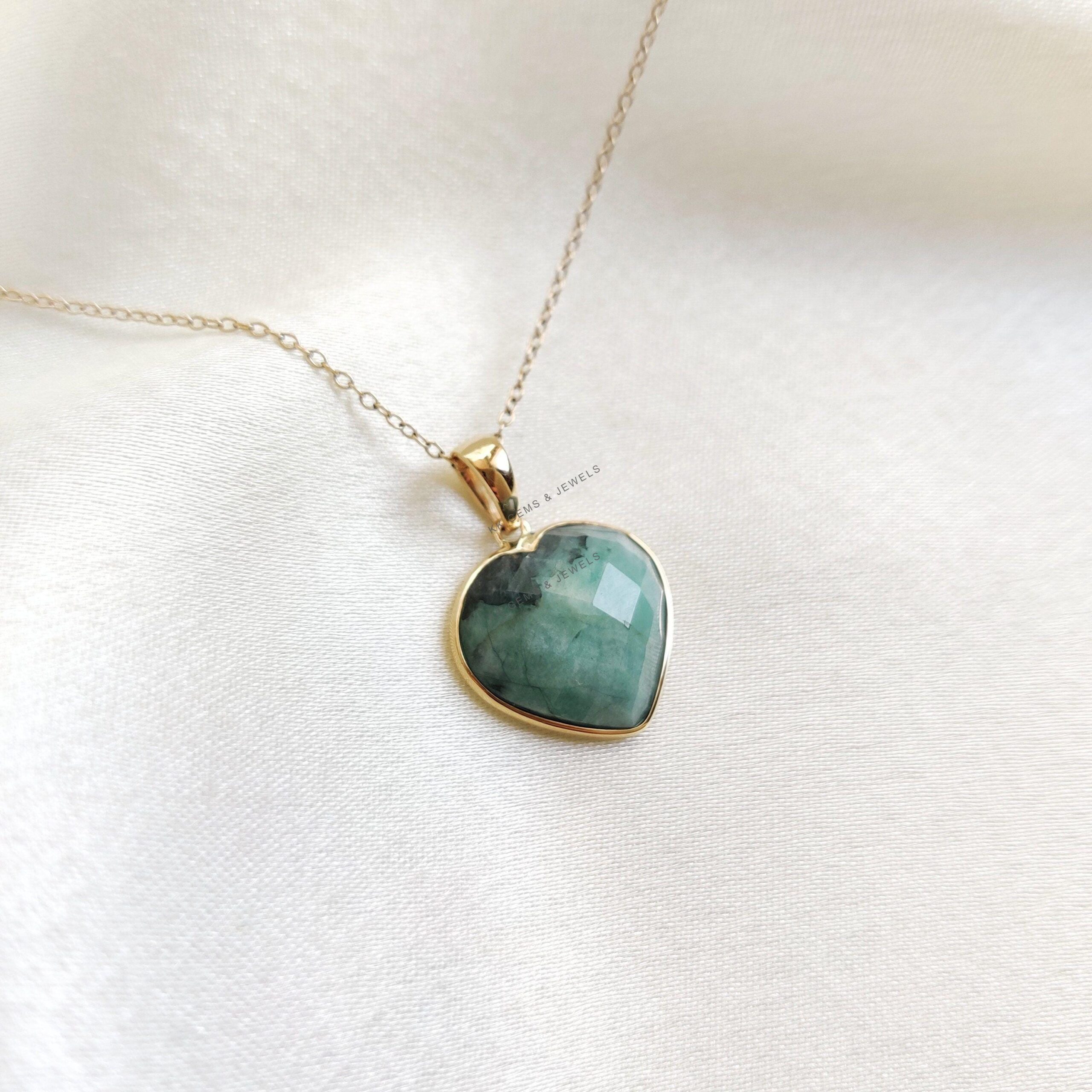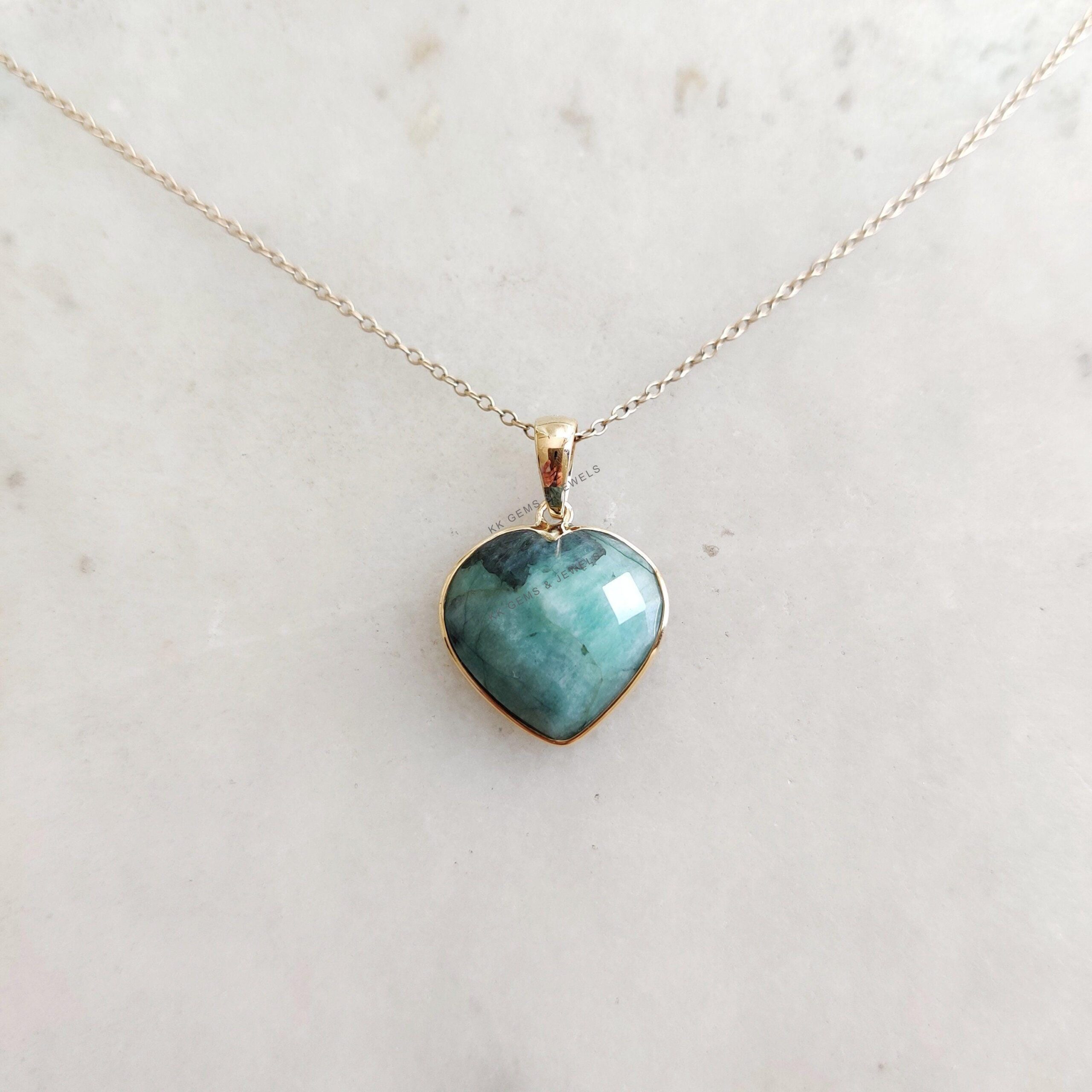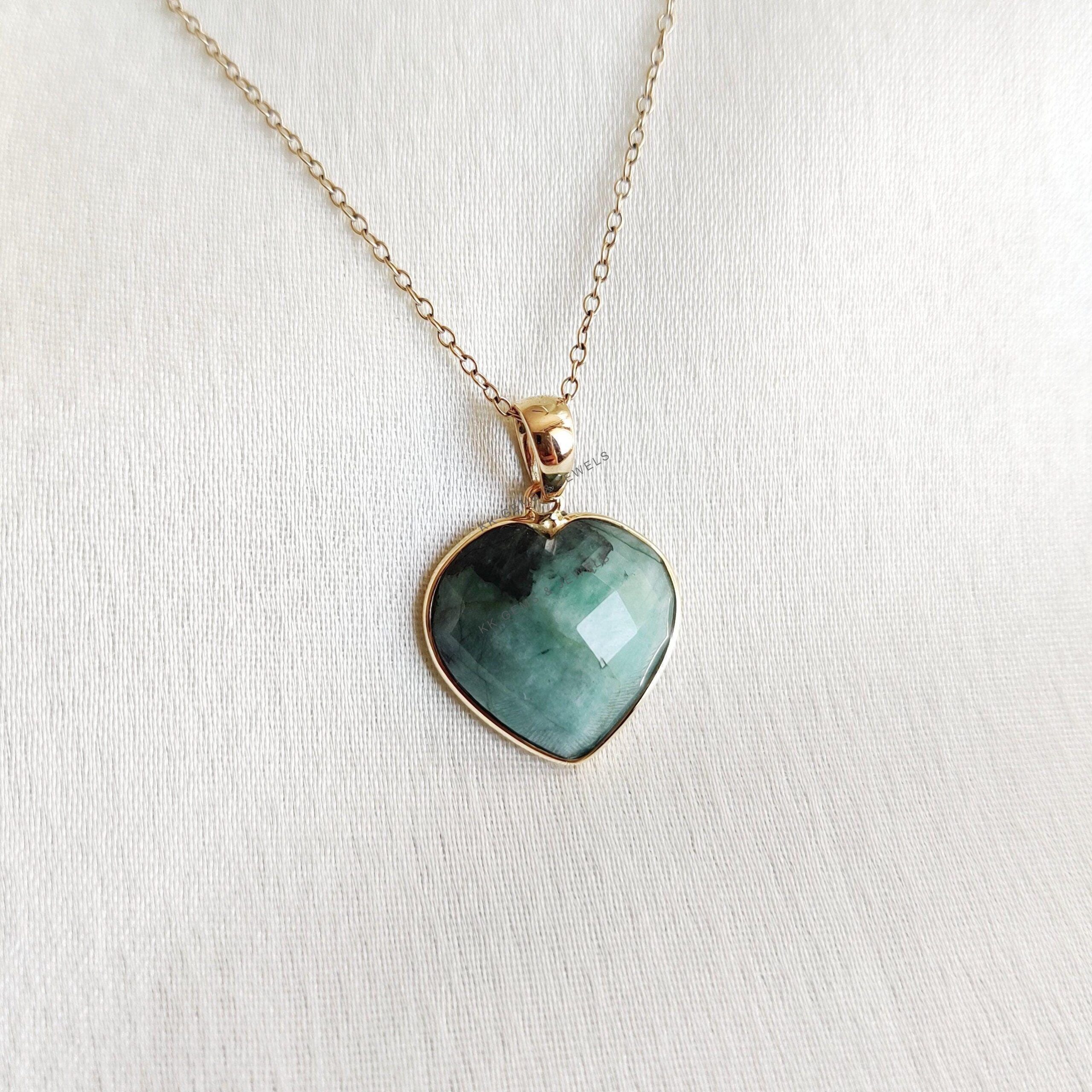 Be the first to review “Heart Shape Natural Emerald Pendant set in 14K Solid Gold, May Birthstone Bezel”