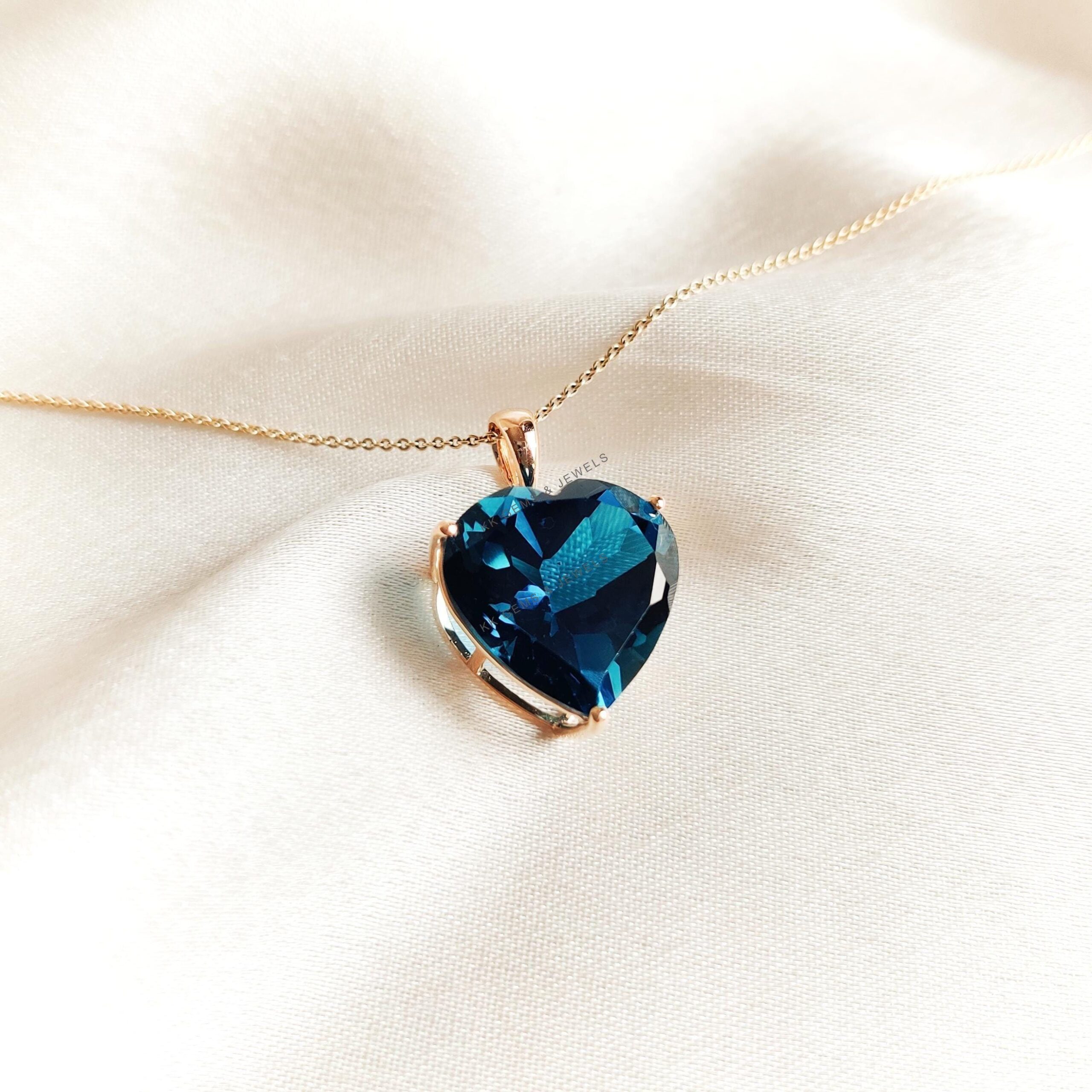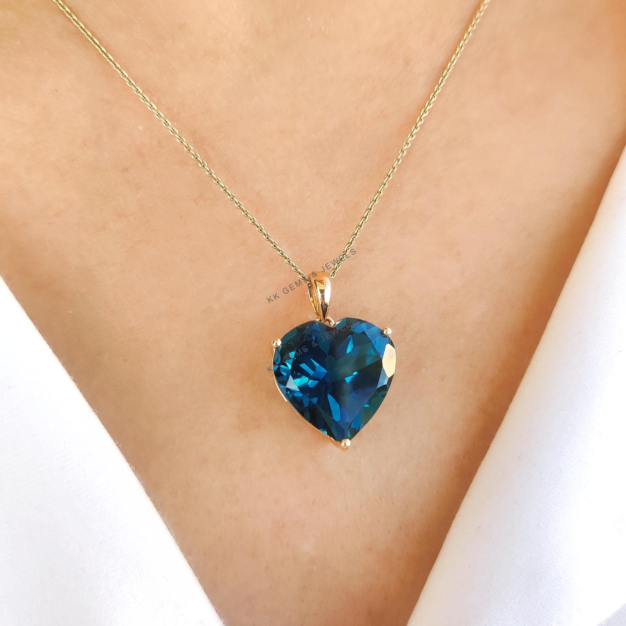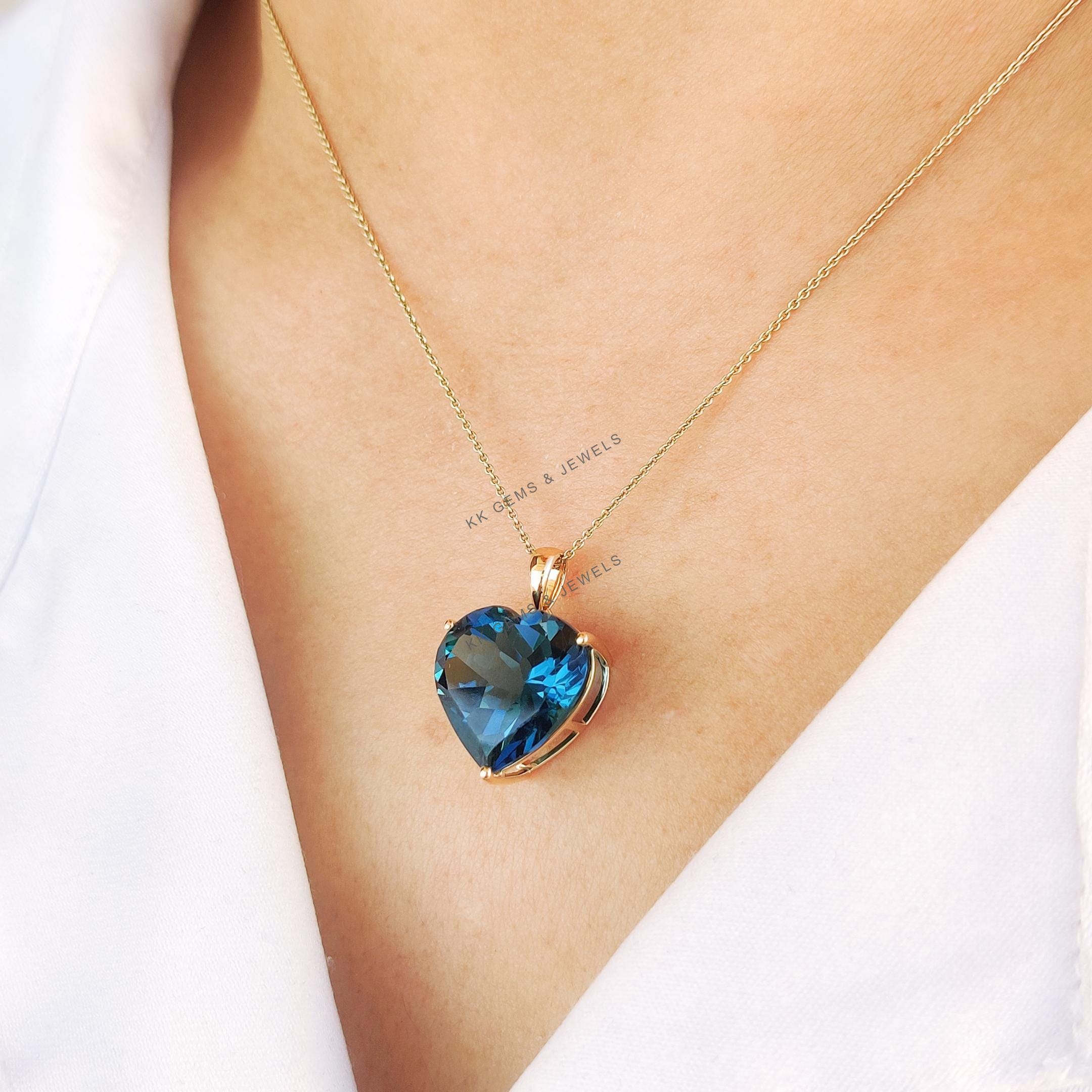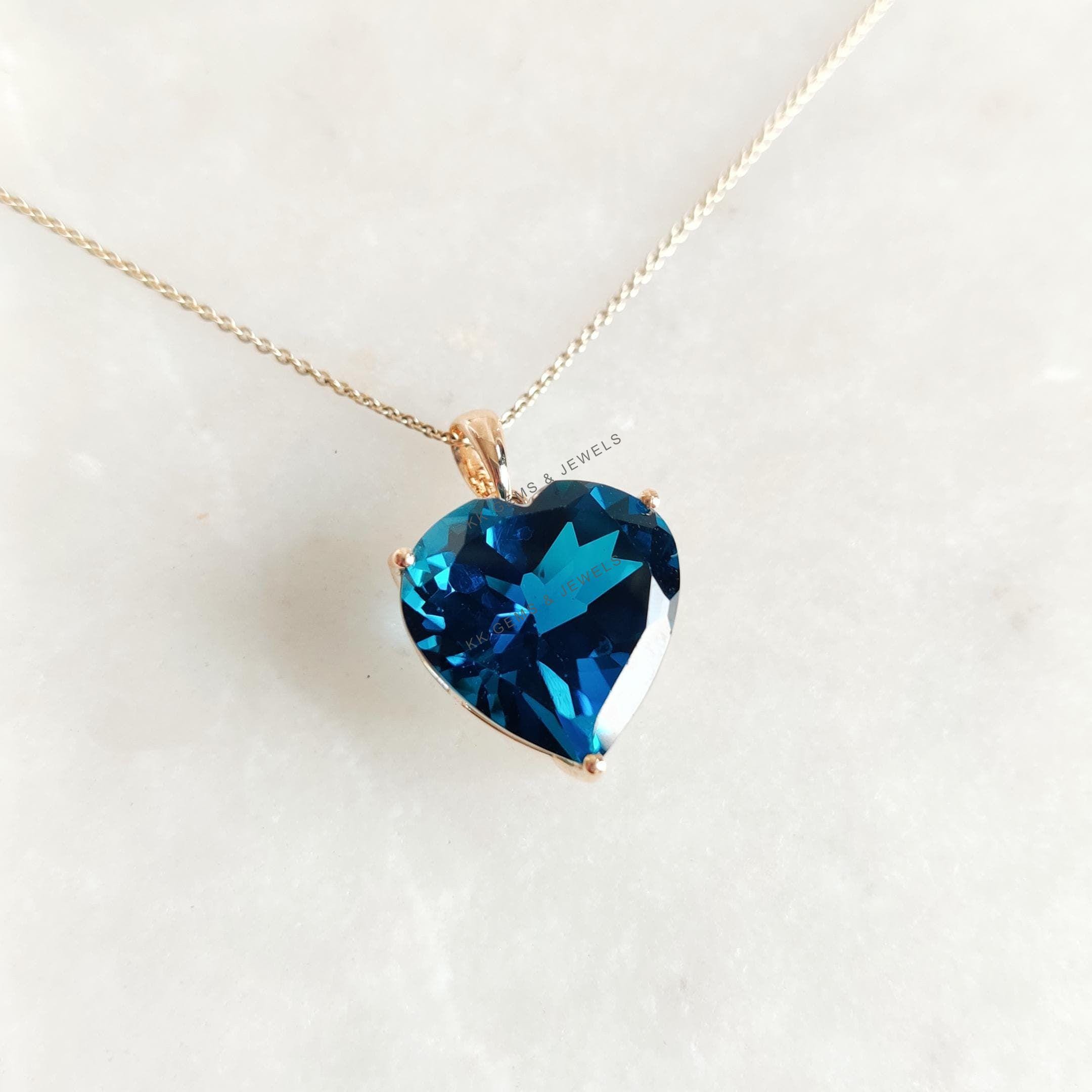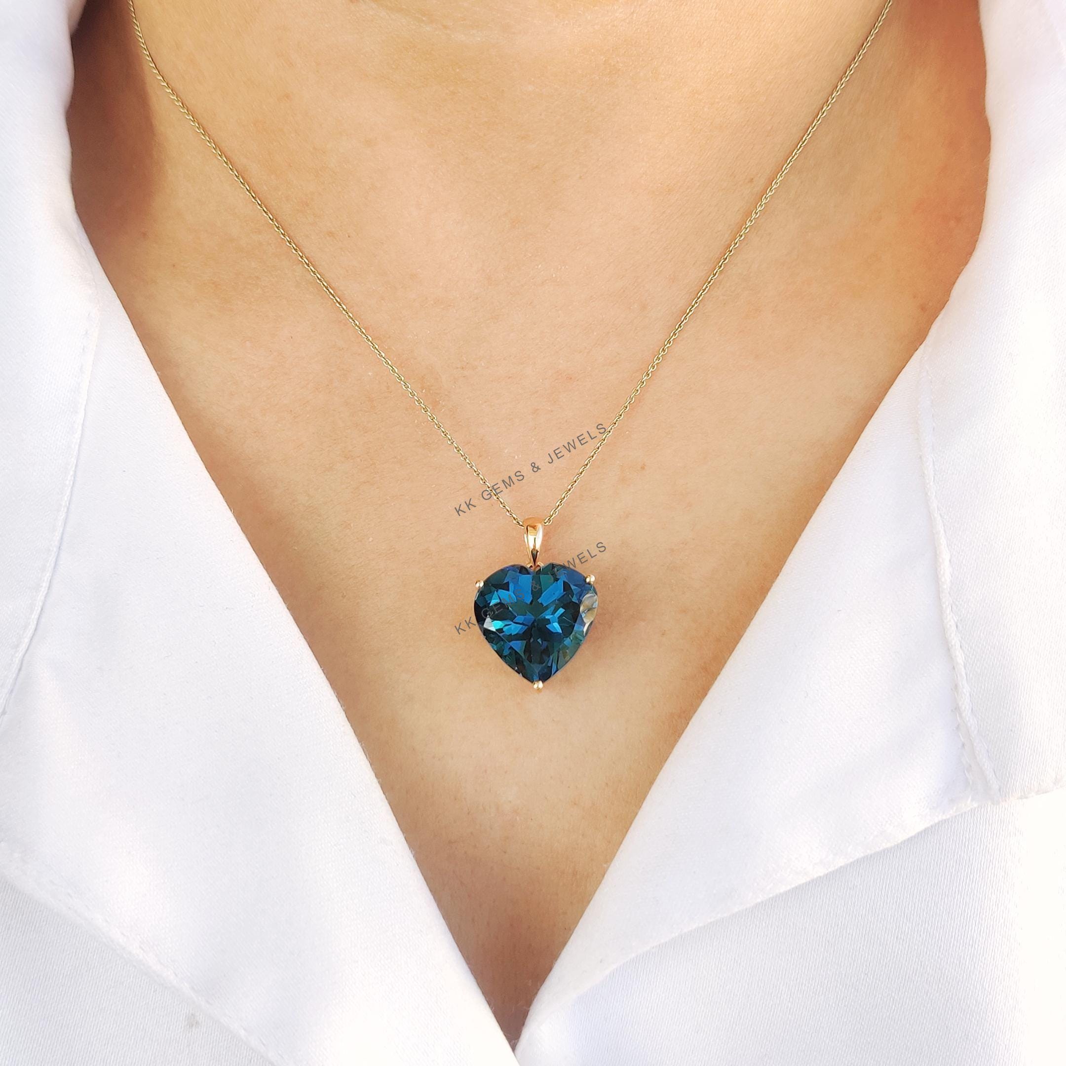 Be the first to review “Heart Shape Natural London Blue Topaz Pendant, Set in 14K Solid Yellow Gold”