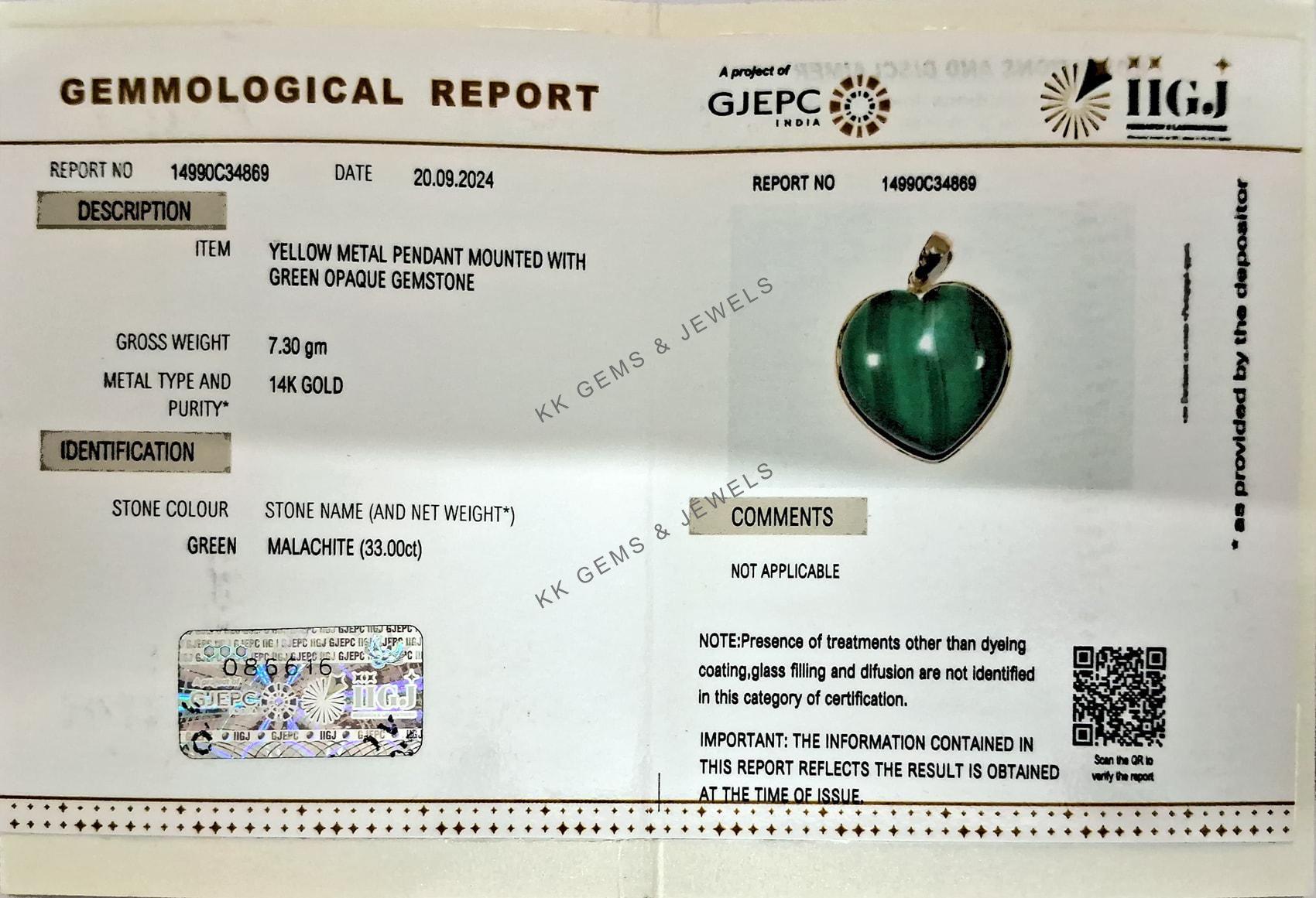 This stunning pendant is set in 14k Solid Yellow Gold with Natural Malachite with utmost precision. It is an unique gemstone pendant for nearly every occasion and is completely hassle-free jewelry.