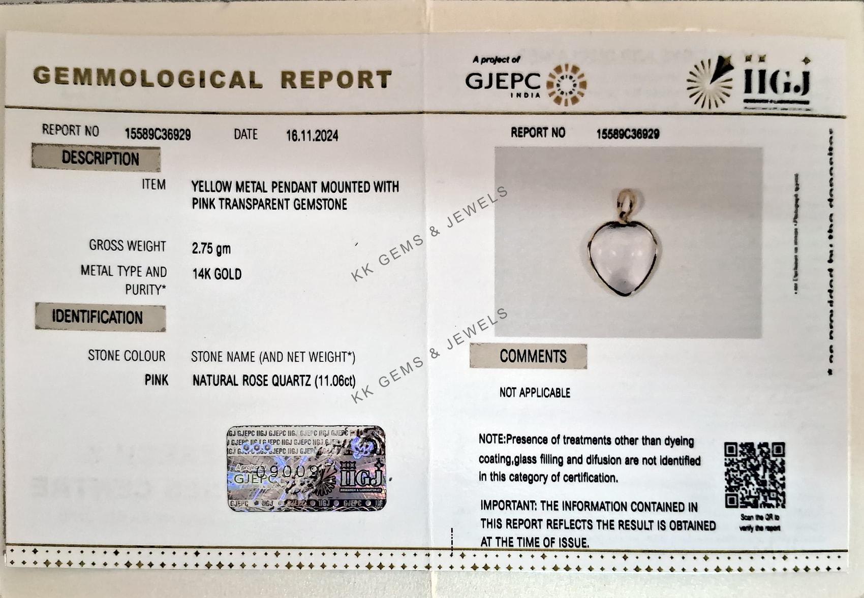 This stunning Heart pendant is set in 14K Solid Yellow Gold with Natural Rose Quartz with utmost precision. It is an unique gemstone pendant for nearly every occasion and is completely hassle-free jewelry.