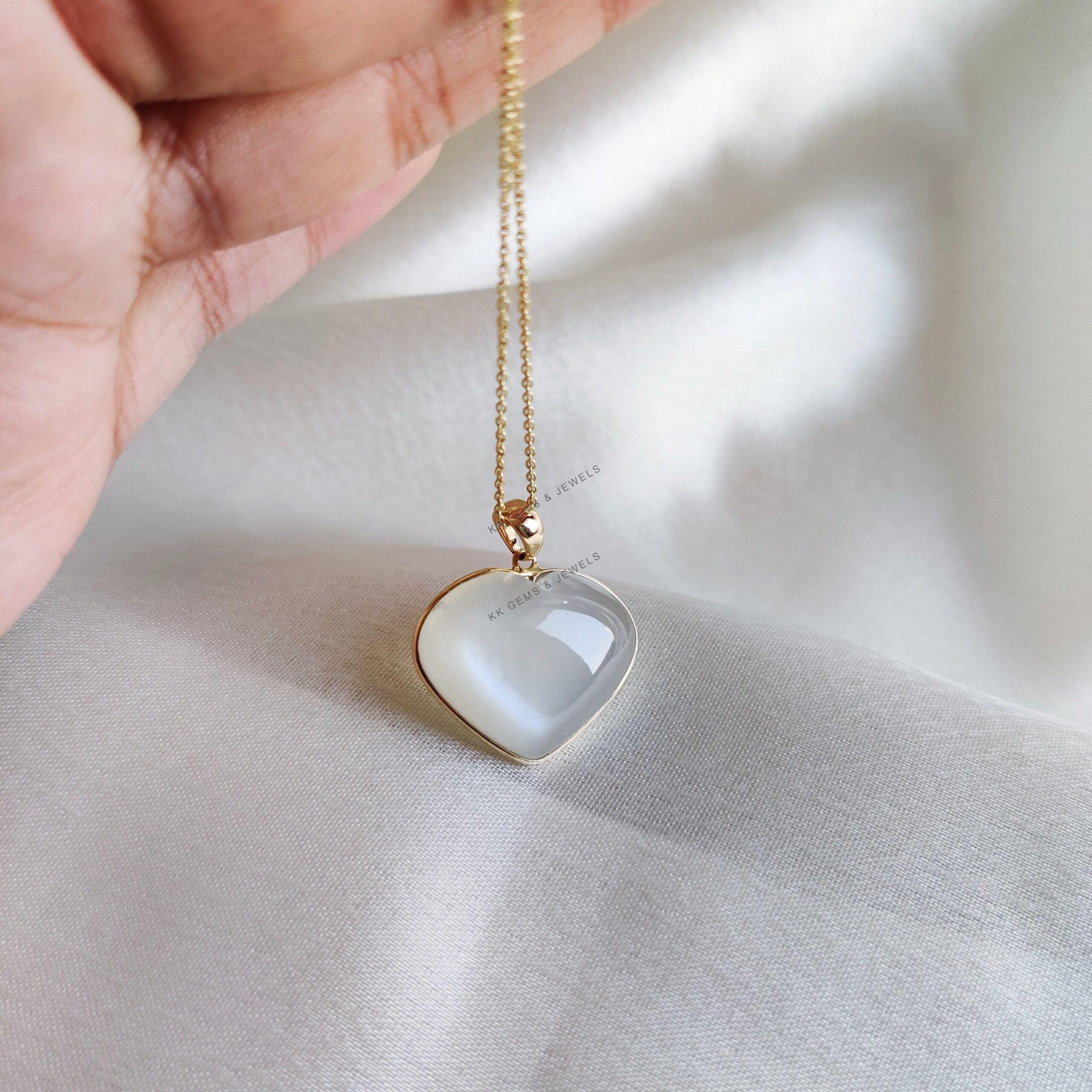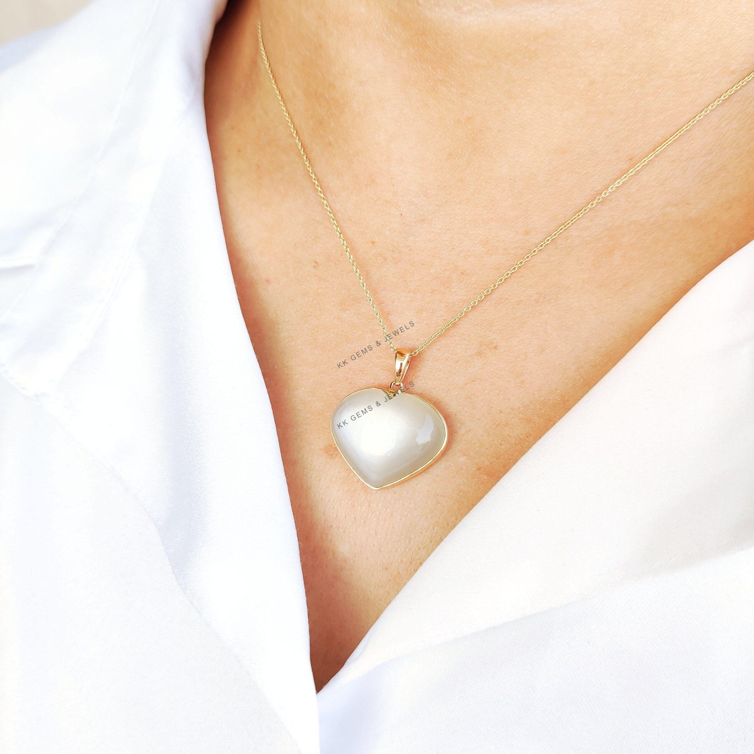This stunning pendant is set in 14K Solid Yellow Gold with Natural White Moonstone with utmost precision. It is an unique gemstone pendant for nearly every occasion and is completely hassle-free jewelry. ✓ ABOUT GEMSTONE: White moonstone, with its milky…