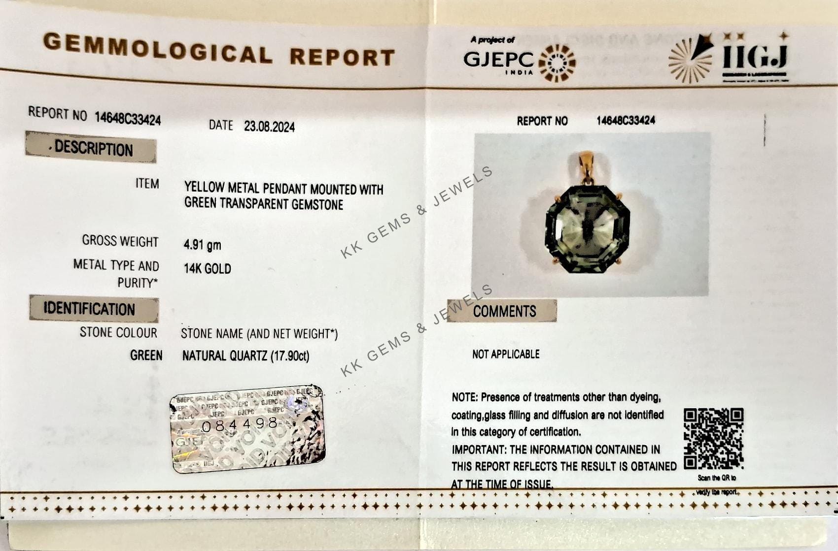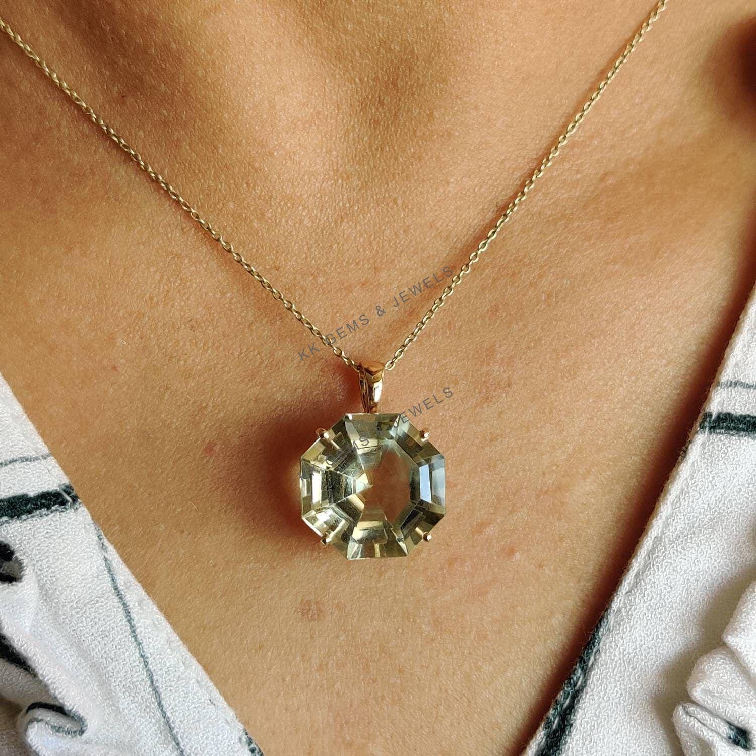 This stunning pendant is set in 14K Solid Yellow Gold with Natural Green Amethyst with utmost precision. It is an unique gemstone pendant for nearly every occasion and is completely hassle-free jewelry.