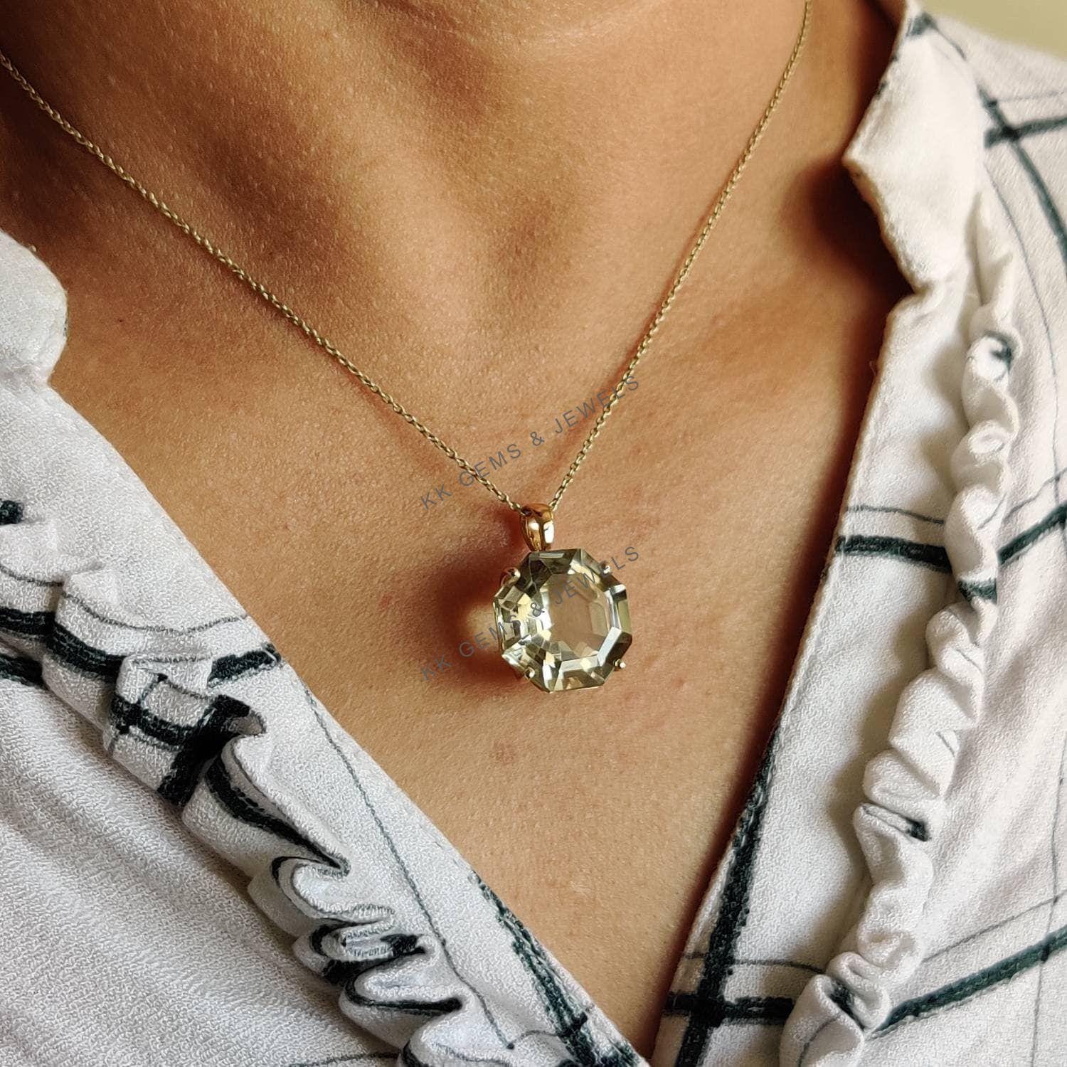 1 review for Hexagon Natural Green Amethyst Pendant Set in 14K Solid Gold, February Birthstone