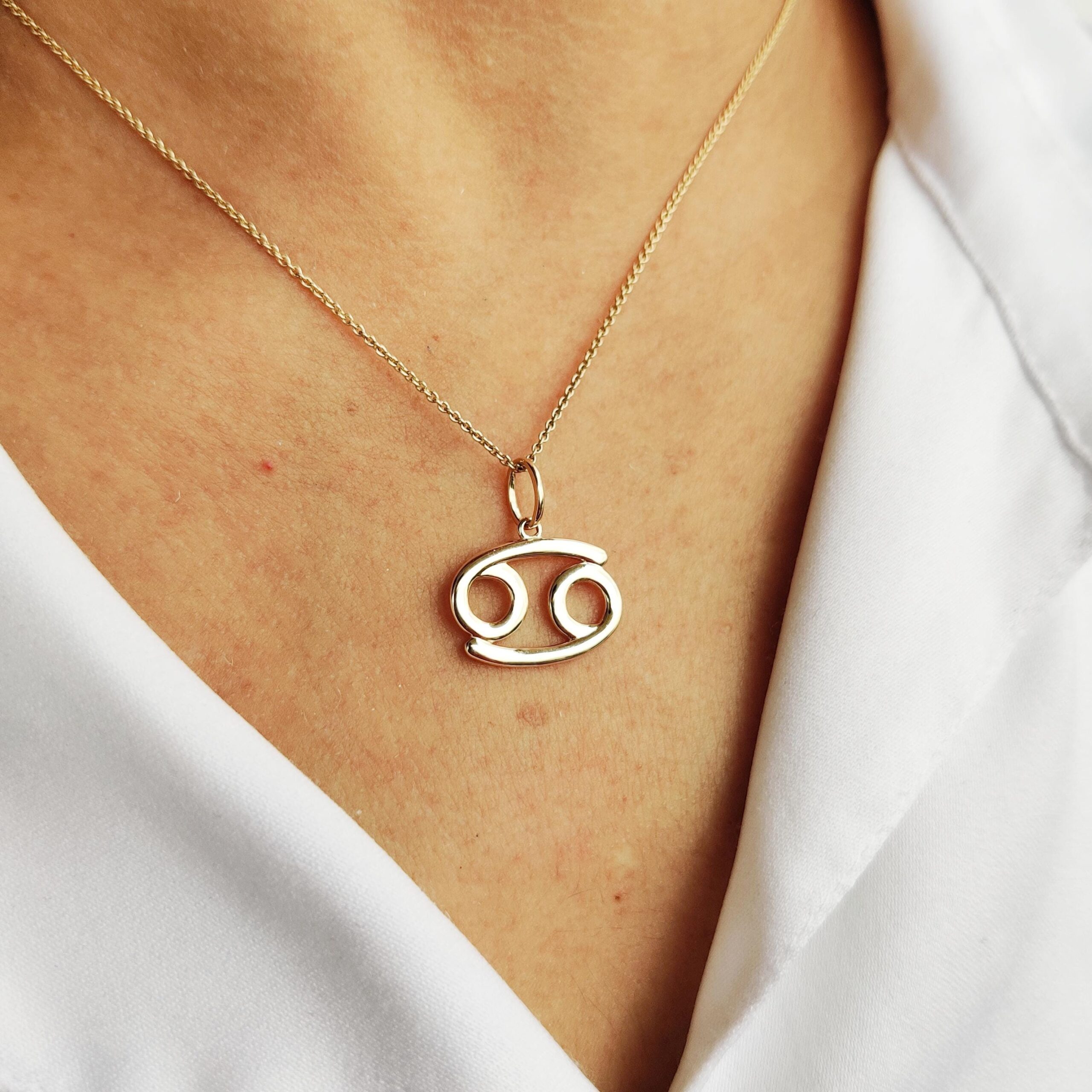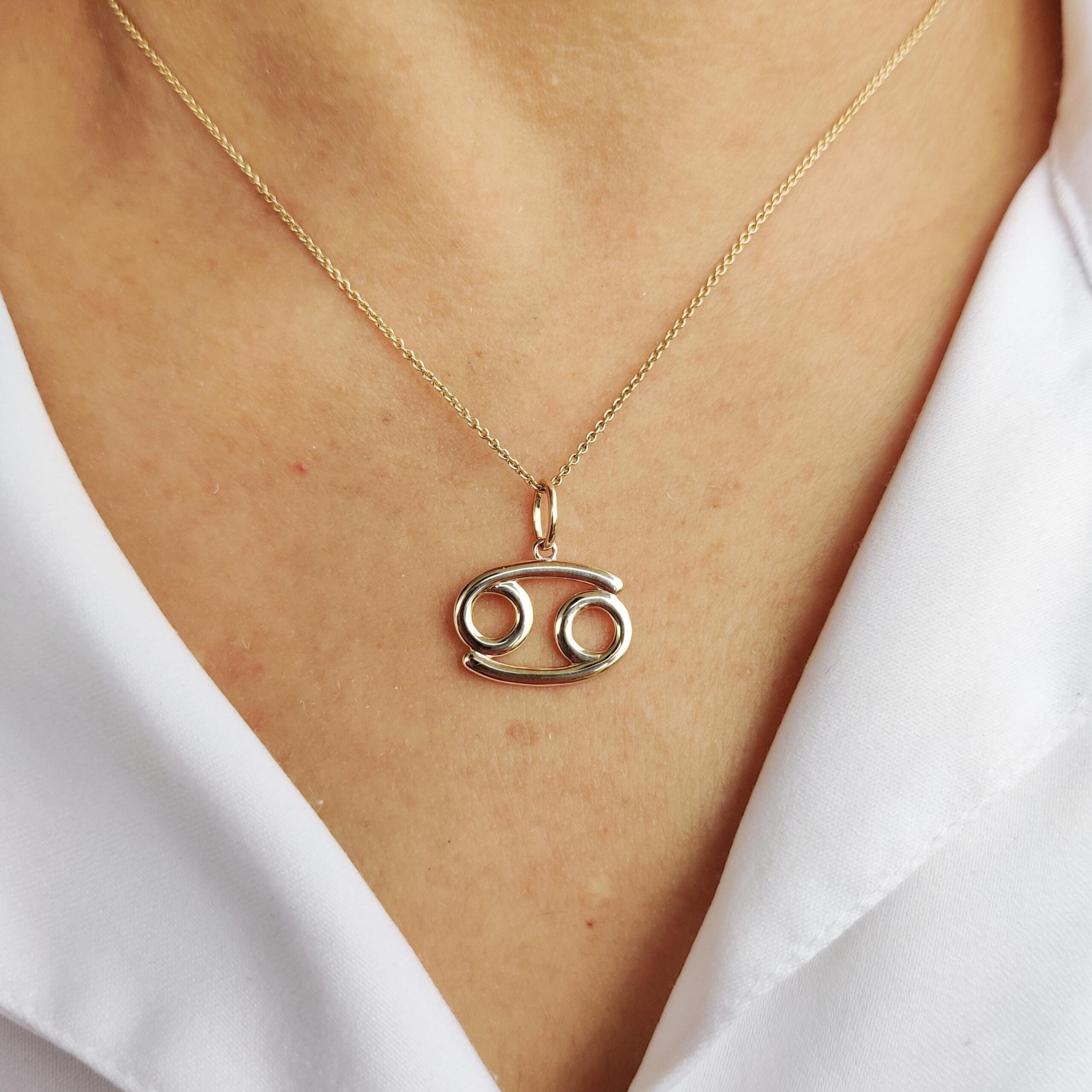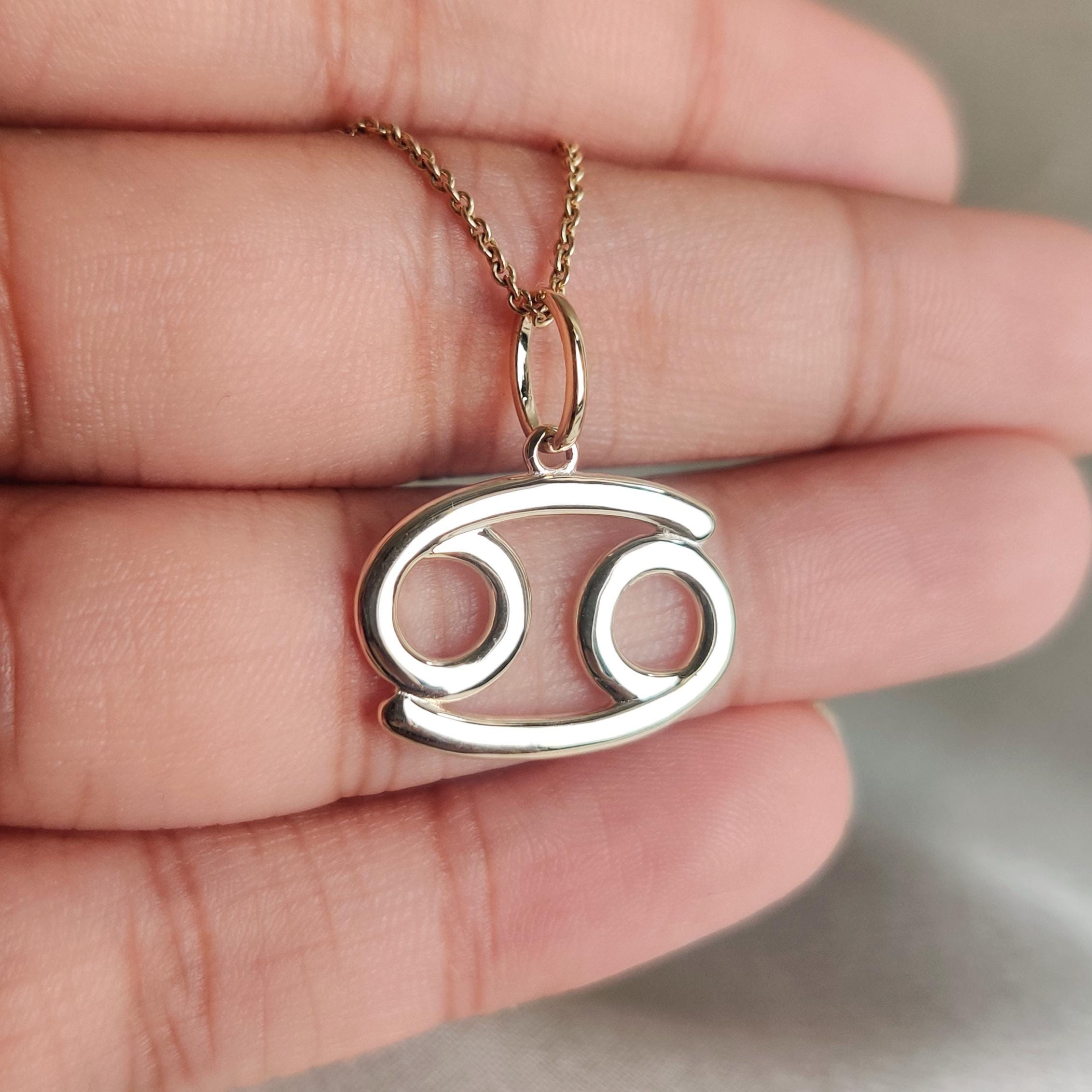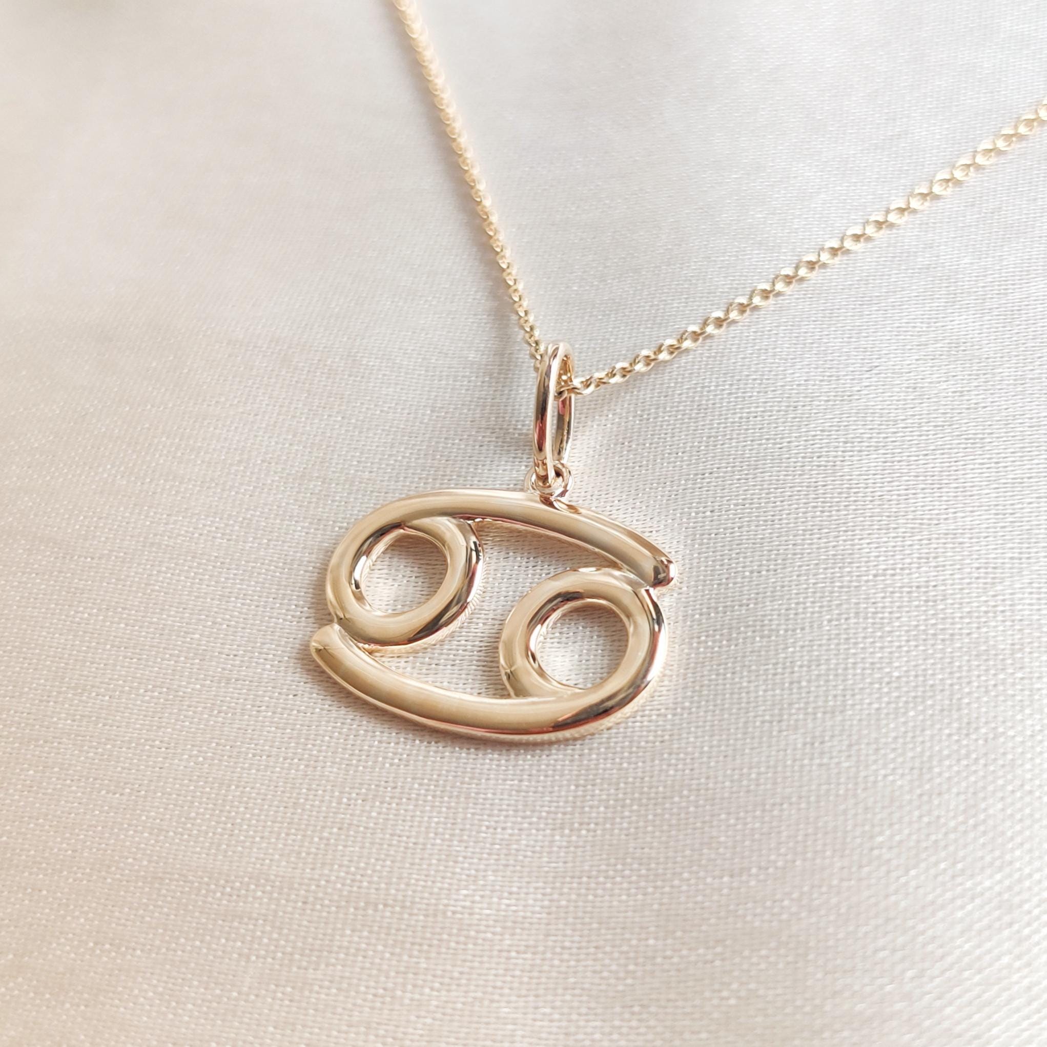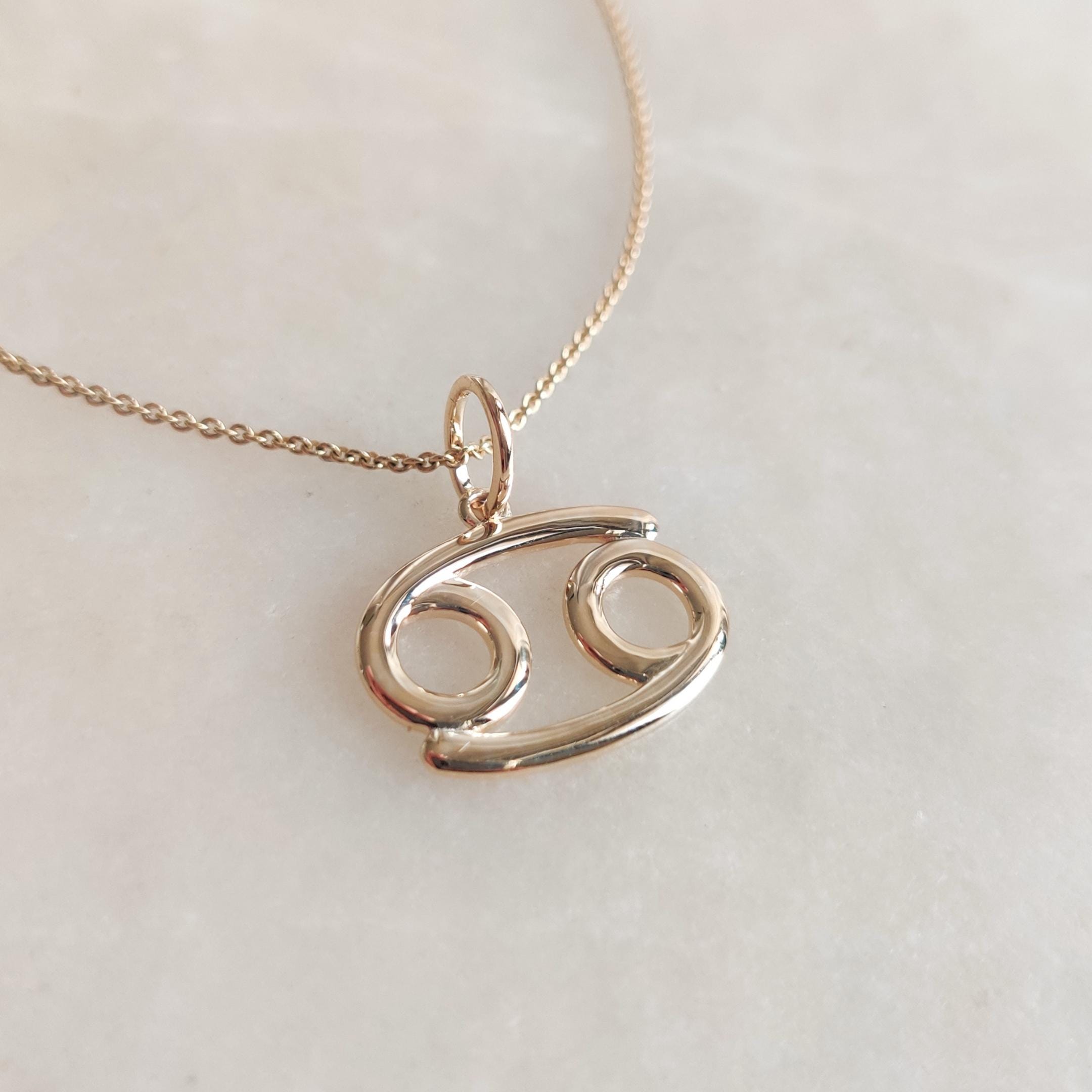 Cancer Zodiac Pendant Set in 14K Gold, Zodiac Symbol Charm Pendant in 14K Gold